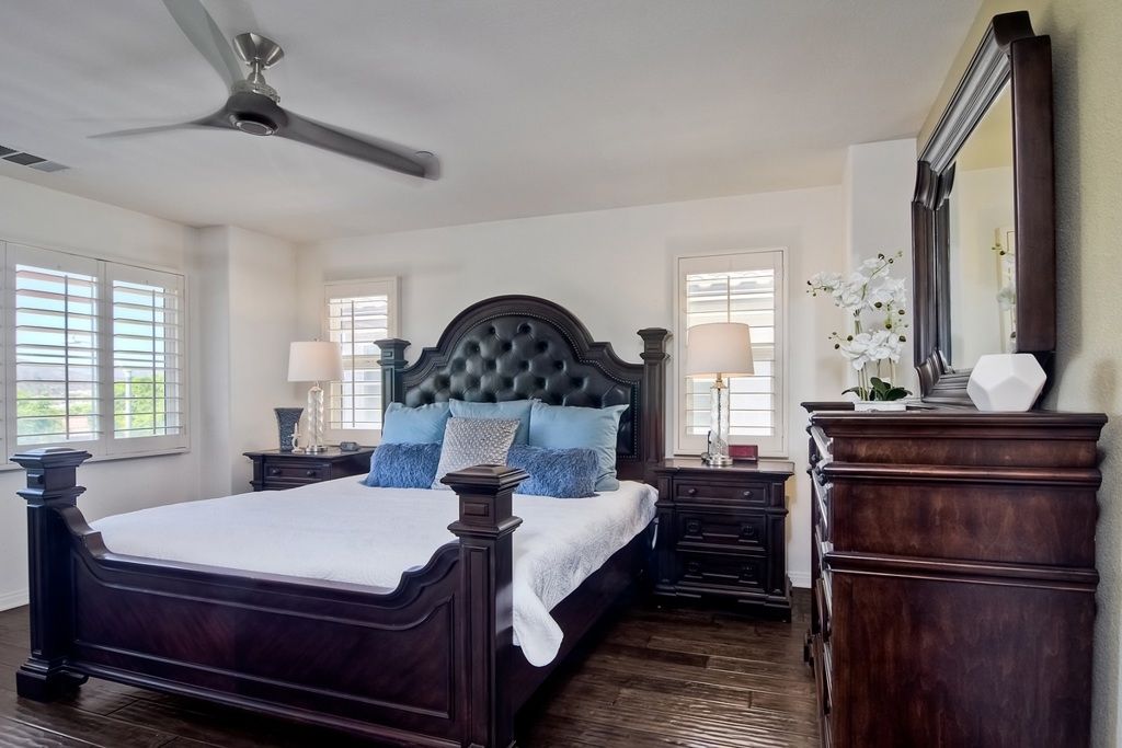 From the moment you walk through the front door, you will want to call this meticulously maintained property "home!" The gourmet kitchen features SS appl, custom tile back splash, & granite counters. Custom hardwood flooring & open floor plan. Westerly mountain views can be seen from the private backyard & Master BD. An interior wall has been removed to convert this 4 bedroom home into 2 bedrooms with a large office. The wall can be easily re-installed to re-create the ample bedroom space you desire. Pride of ownership is apparent throughout this home! Located on a quiet cul-de-sac on one of the largest lots in Amante, this home offers space in spades! You will fall in love with all the high end touches this home has to offer such as the custom tiling in kitchen & baths, the upgraded fireplace mantel with custom 11 x 11 tile surround, and the Trex weatherproof decking complete with nice breezes!! Don't forget the highly upgraded hardwood flooring throughout, a lovely wrought iron banister leading you to the second level, as well as the custom lighting! A full laundry room is conveniently located on the 2nd floor close to bedrooms. This property comes with leased solar for $98/mo and is equipped with fire sprinklers. Located only a short walk from Monterey Ridge Elementary School, shopping, & restaurants as well as easy access to I-15 Hwy.. Neighborhoods: 4S RAnch Complex Features: ,,, Equipment: Fire Sprinklers Other Fees: 0 Sewer: Sewer Available, Sewer Connected Topography: LL