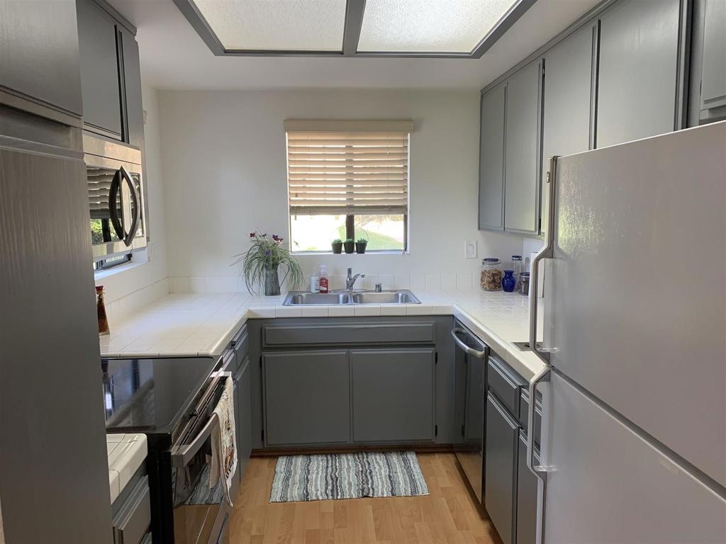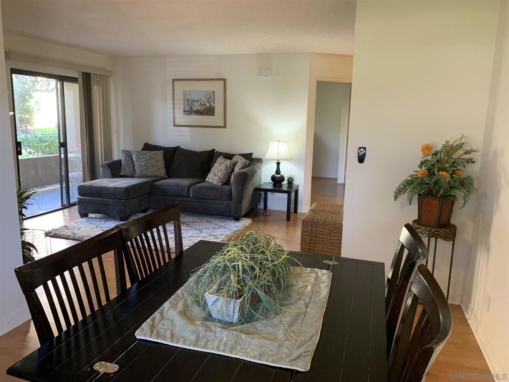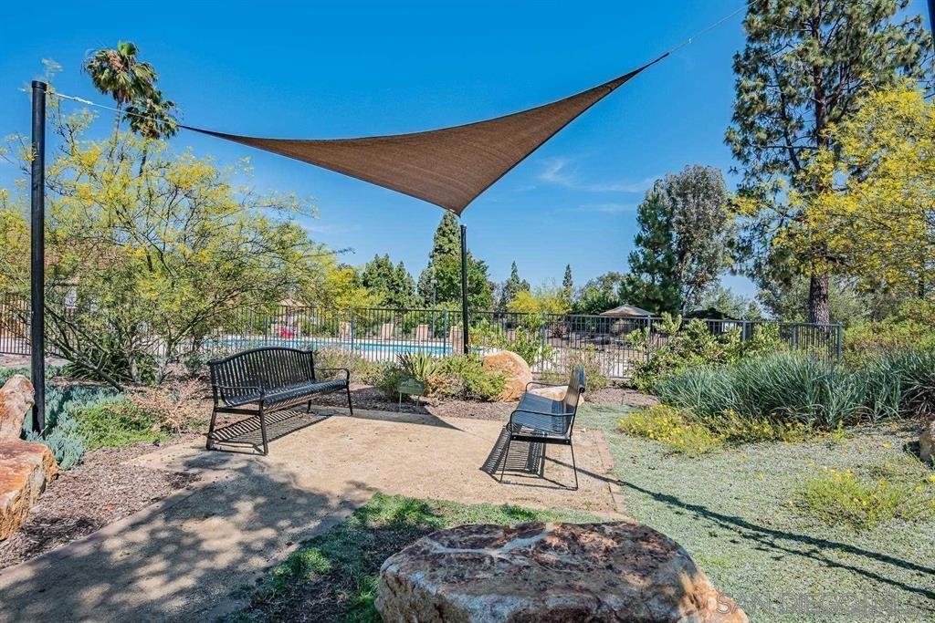 Excellent ground level END UNIT. Easy access, no stairs. Extra windows make this unit light and bright. New paint, including kitchen cabinets. Nice greenbelt view from patio. Laminate floors throughout- no carpet! Single occupant has kept this home nice and clean, spacious master bedroom with double doors, walk in closet, and second closet too. Inside laundry with full size washer/dryer. Private one car garage (#101) not too far from unit. Lots of open guest parking. Well kept complex. HOA fee includes clubhouse, 3 pools, gym, tennis courts and spa. Walking distance to Poway award winning schools. Located close to freeway access and Carmel Mountain shopping. Sewer: Sewer Connected Topography: LL