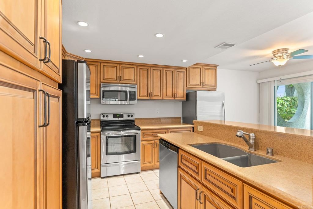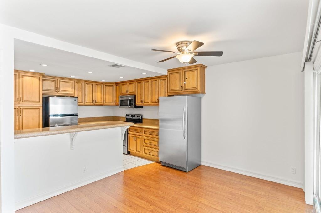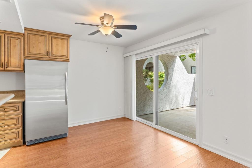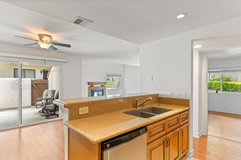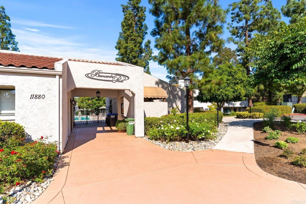 Charming & sunlit home located in the beautiful Bernardo Pines community within Rancho Bernardo. This beautifully remodeled home has been freshly painted and is move in ready. There is an abundance of natural light, vaulted ceilings in the living room with a gas fireplace. The kitchen has new cabinets with pull out drawers, new countertops and backsplash, stainless steel appliances and an additional built in freezer. This condo offers three spacious bedrooms and two full baths. The primary suite has a large walk-in closet. Throughout the entire home, you'll find elegant wood laminate flooring, upgraded cabinets to match kitchen cabinetry, large in door laundry closet w/ front load washer and dryer plus central AC and heating. Private and oversized patio with a spacious storage closet to neatly organize all your outdoor essentials. This condo has 2 assigned parking spaces, one covered and another conveniently located near the unit. As a resident of Bernardo Pines, you'll have access to a wide range of community amenities, including a clubhouse, pool(s), hot tub, playground, tennis court and much more. Located in the renowned Poway Unified School District.