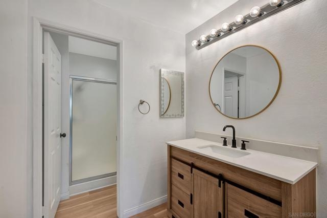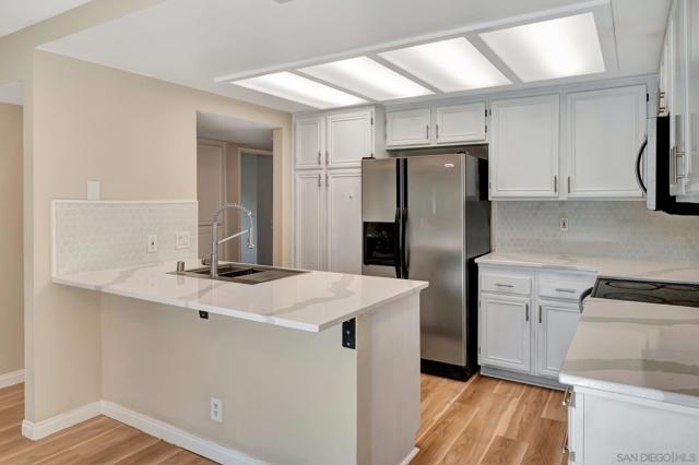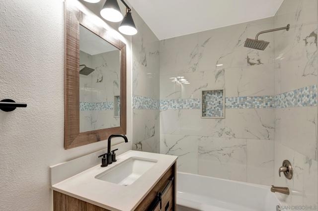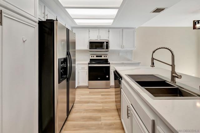 Newly renovated 3BR/2BA unit in desirable Bernardo Pines of Rancho Bernardo! Interior features include upgraded luxury vinyl flooring throughout the entire unit, an open kitchen space upgraded w/ new quartz slab countertops & stainless-steel appliances, newly remodeled bathrooms w/ custom tile & backsplash, new vanities w/ upgraded hardware & more! Open, spacious floor-plan w/ a vaulted ceiling & recessed lighting make the unit light & very bright throughout all the living spaces! Other features include upgraded Low-E windows & slider throughout, a full-size laundry closet inside for convenience, a cozy gas fireplace in the living room & newer ceiling fans in every room. Unit has also been renovated w/ a newer HVAC system & water heater both replaced in recent years. Parking included 2 reserved carport stalls just outside the unit & the complex amenities include a community Pool/ Spa & clubhouse, tennis/ sports courts, a gym/ exercise room w/ sauna & more! Conveniently located nearby award-winning Poway schools for all ages, the Rancho Bernardo public library & tons of local restaurants/ shopping, Rancho Bernardo Community Park & Lake Hodges w/ easy I-15 freeway access. Monthly HOA fee includes trash & water. Great unit. A 'must-see!'