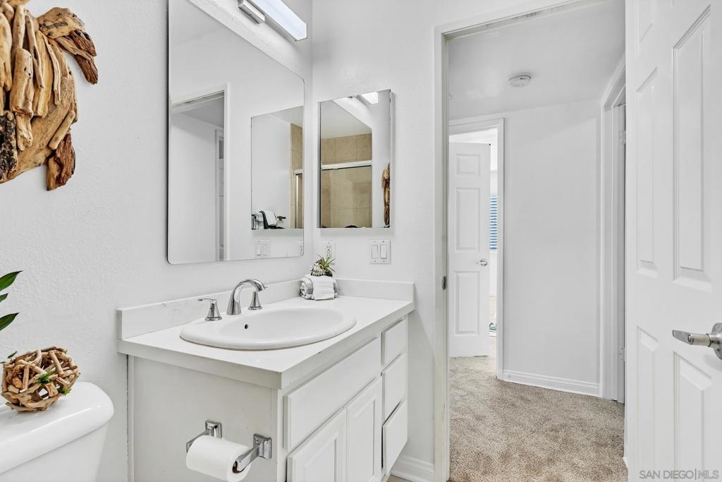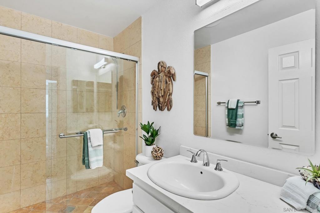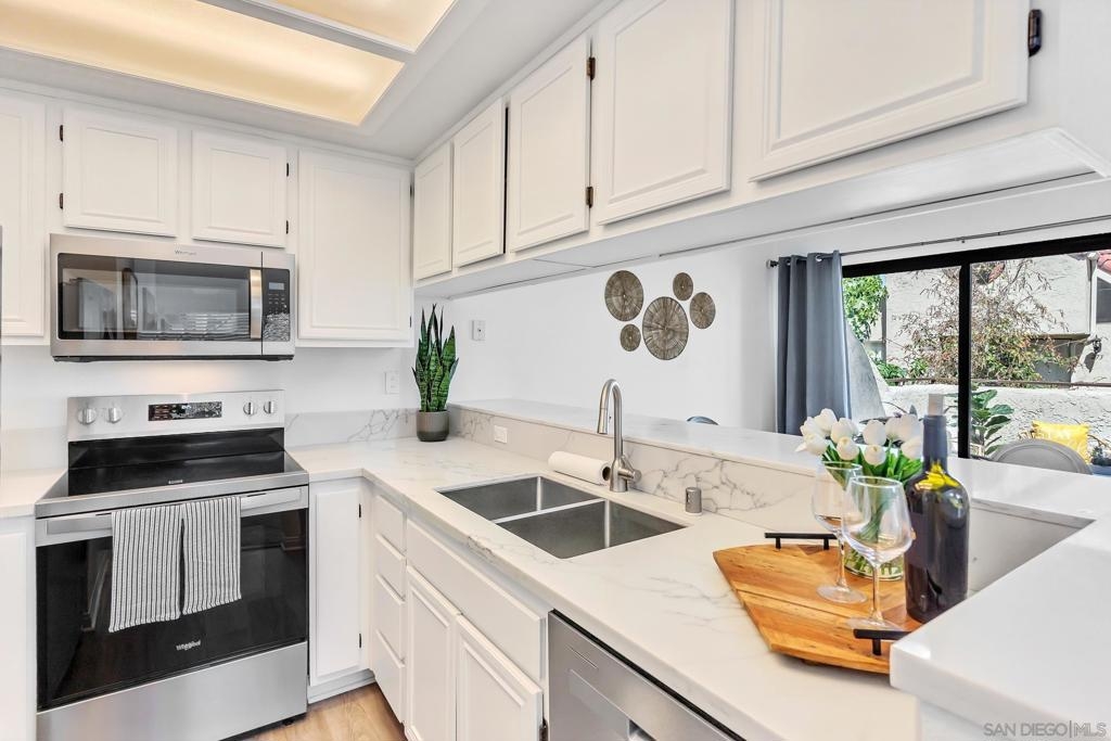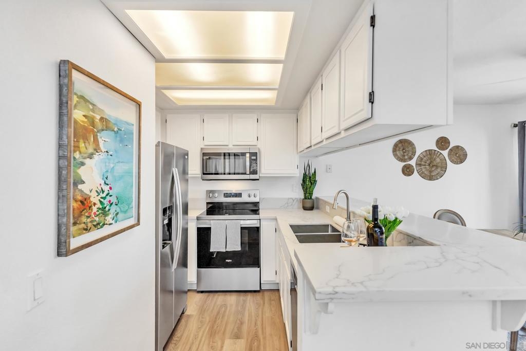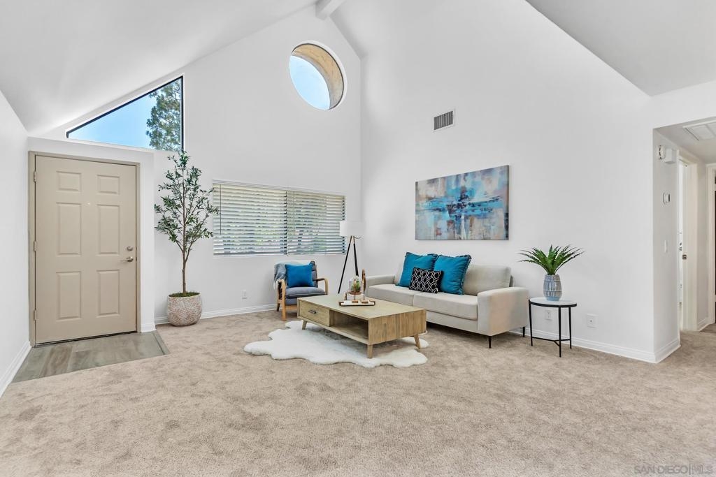 Welcome to this beautifully upgraded 1-bedroom, 1-bathroom + extra room top-floor condo in the sought-after Bernardo Pines community of Rancho Bernardo! HOA includes, water, trash, pools, tennis courts, exterior maintenance and more. Enjoy the peace of having no one above you, along with the added versatility of a bonus room—perfect as a home office, Peloton space, creative studio, or even a walk-in pantry or extra storage area. Step inside to discover brand new flooring, sleek stone countertops, and updated appliances that make this home move-in ready. The spacious living area flows seamlessly to a private balcony, ideal for morning coffee or evening unwinding. Tucked in a prime location close to freeways, shopping, and top-rated schools, this home offers both comfort and convenience. The Bernardo Pines community features resort-style amenities including two pools, tennis courts, fitness center, clubhouse, and lush green landscaping. Whether you're a first-time buyer, downsizing, or investing—this unit is a great opportunity.
