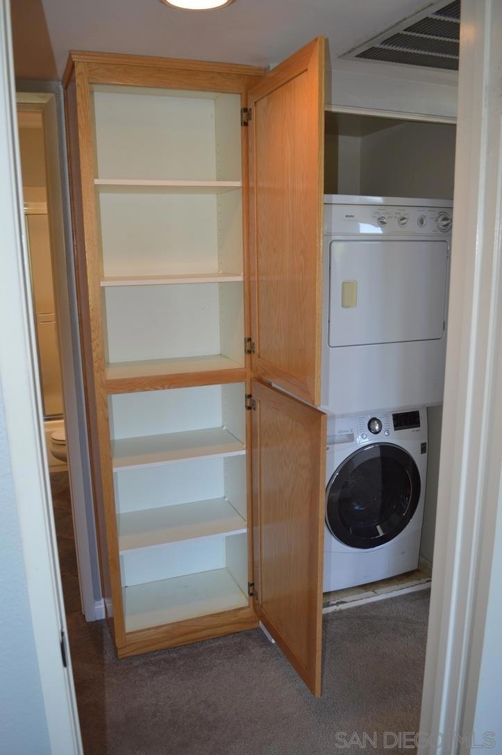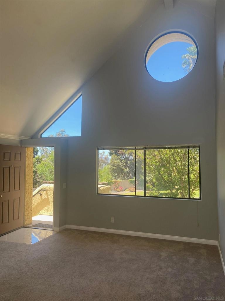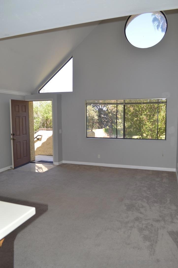 Are you looking for a condo that feels like a home, not a crowded apartment? This is it! Large, open, airy ,private and bright condo, more than 800 square feet! The largest one bedroom you will find in RB. The main living area boasts tall vaulted ceilings and high windows that let in extra light. The view out of the living room and master bedroom is gorgeous, faces west toward Lake Hodges, makes the unit really private. Amazing sunset views! Open kitchen with solid countertops, dining area and a cozy balcony right off the dining area. Plenty of room for patio furniture and a bbq. Extra storage closet off the balcony. Large, bright master bedroom with huge walk -n closet with built in shelves. Another closet in master for extra storage. Stackable washer/dryer conveniently located in the hallway, another closet in hallway and linen cabinets. Clean and bright bathroom with shower doors and great lighting. Two parking spaces, one covered and one uncovered. Super convenient open parking right in front of the unit for residents and guests. Complex includes 2 pools/spas, exercise room, sauna, tennis courts, play area & lots of open space. Plenty of space to walk your dog, a nice grassy area right in front of the unit. Neutral colors, carpet, ceramic tile in the entry and kitchen, beautiful slate tile in the bathroom. Super clean, fresh, and move-in ready! Amazing sunset views! Open kitchen with solid countertops, dining area and a cozy balcony right off the dining area. Plenty of room for patio furniture and a bbq. Extra storage closet off the balcony. Large, bright master bedroom with huge walk -n closet with built in shelves. Another closet in master for extra storage. Stackable washer/dryer conveniently located in the hallway, another closet in hallway and linen cabinets. Clean and bright bathroom with shower doors and great lighting. Two parking spaces, one covered and one uncovered. Super convenient open parking right in front of the unit for residents and guests. Complex includes 2 pools/spas, exercise room, sauna, tennis courts, play area & lots of open space. Plenty of space to walk your dog, a nice grassy area right in front of the unit. Neutral colors, carpet, ceramic tile in the entry and kitchen, beautiful slate tile in the bathroom. Super clean, fresh, and move-in ready! Equipment: Dryer,Pool/Spa/Equipment, Washer Sewer: Sewer Connected