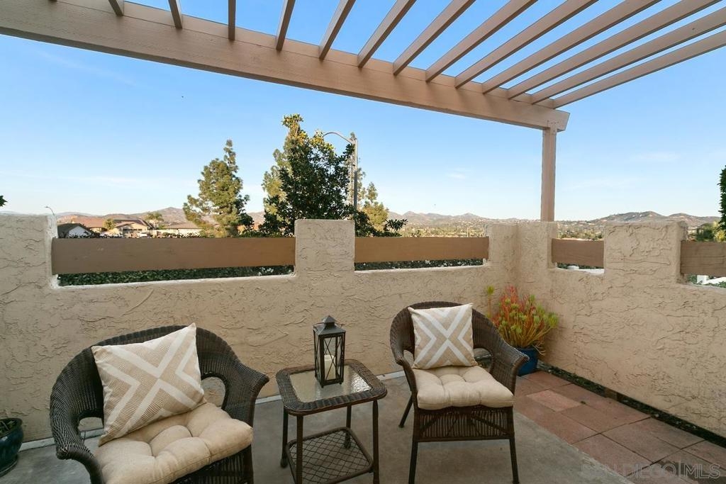 This absolutely charming end corner unit lives like a single family home and is waiting to be called home! 3 corners free standing with no one above or below. Freshly painted and upgraded, light and bright with cathedral ceilings and corner views over a gorgeous mountain vista give this home a very spacious feel. The living room sliders onto a patio are perfect for outdoor dining or relaxing. Morning coffee with the sunrise is breathtaking. Large attached 2 car garage and indoor laundry are an added bonus. Complex has swimming pool and tennis courts. You wont regret taking time to see this well loved home. Award winning Poway school district is the cherry on top. Complex Features: , Equipment: Washer Sewer: Sewer Connected Topography: LL
