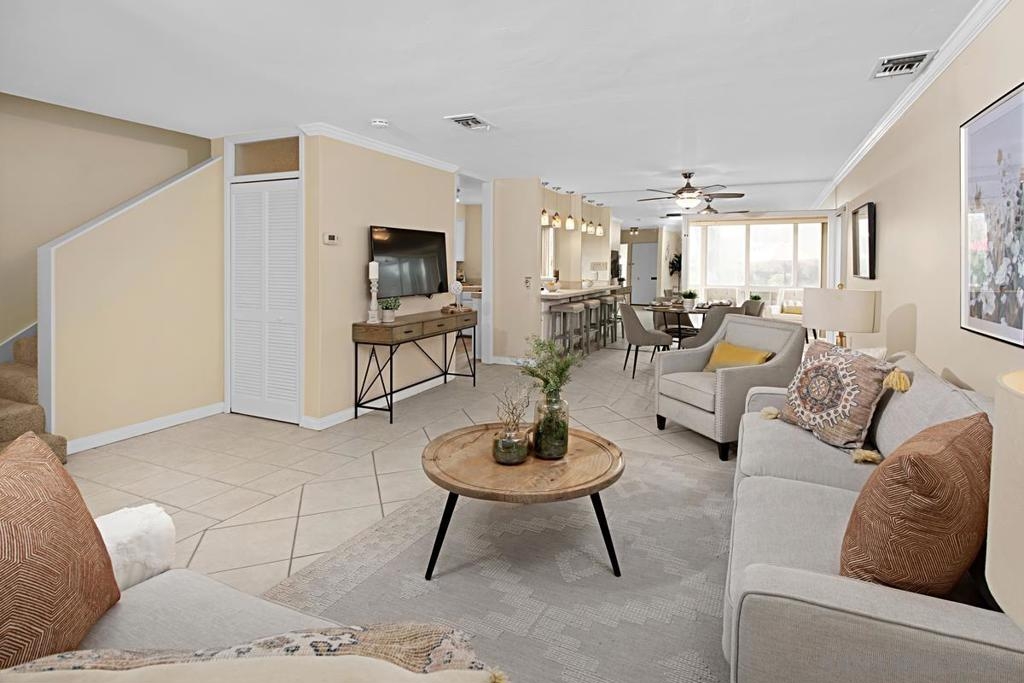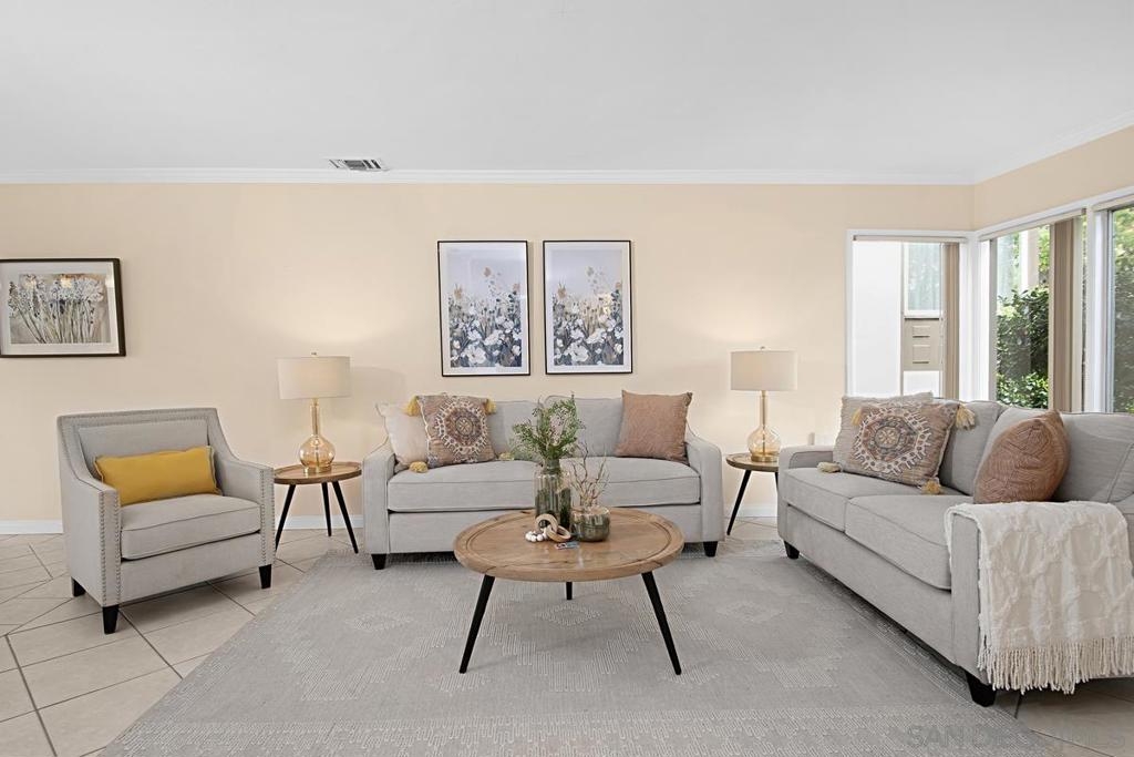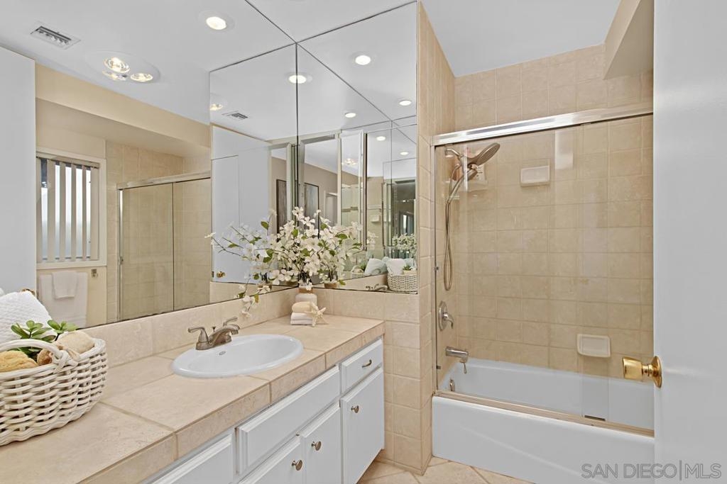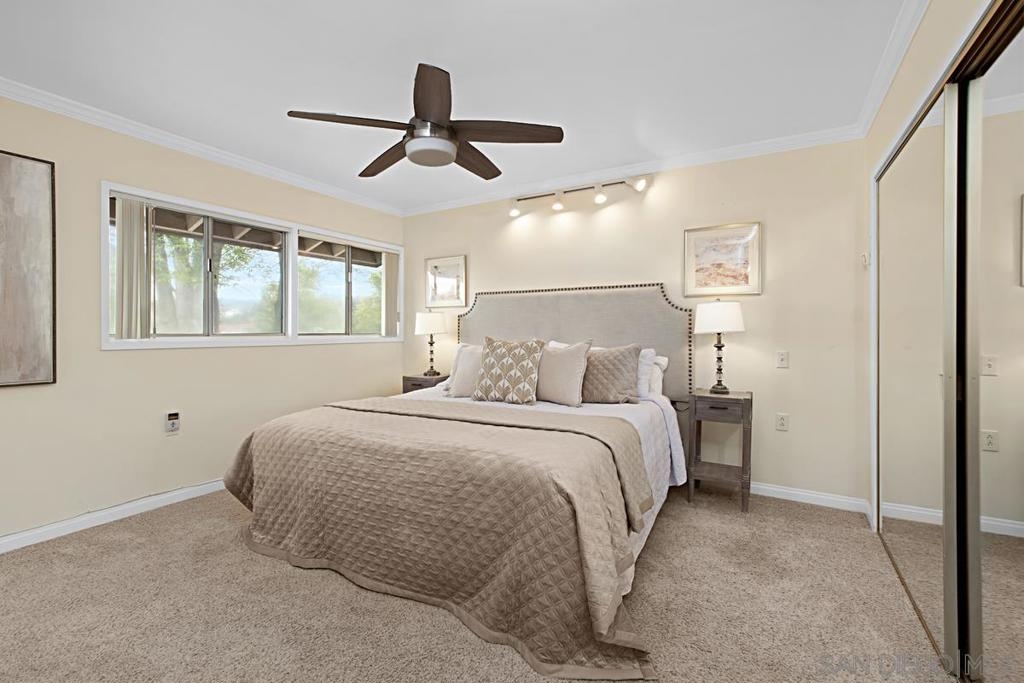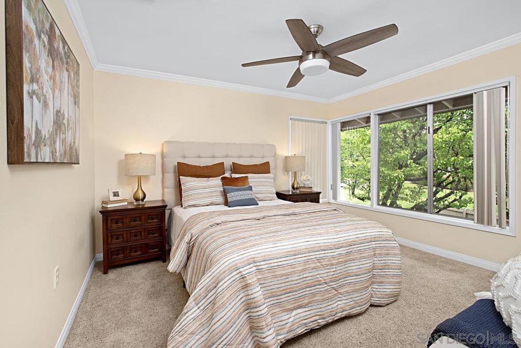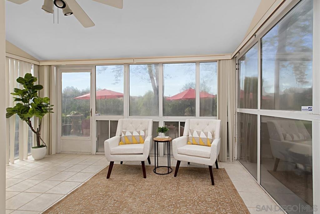 Townhome located on the 15th & 16th holes of the RB Inn golf course, with no age restrictions! Poway Schools!!! This beautiful two-story unit boasts dual primary bedrooms with ensuite bathrooms, and the luxury of no unit above or below, offering unparalleled privacy and tranquility. As you step inside, you're greeted by an inviting open living area, perfect for both relaxation and entertaining. A sunroom provides an ideal space for work or leisure. Enjoy the convenience of one garage space and reserved parking just steps from your front door, as well as covered storage for a golf cart. Enjoy the convenience of one garage space and reserved parking just steps from your front door, as well as covered storage for a golf cart. The nearby RB Swim and Tennis Club adds to the appeal, providing residents with exclusive access to an array of recreational amenities including tennis courts, pools, a racquetball court, jacuzzi, gym, and even a woodshop! Located in the acclaimed Poway Unified School District, this home offers the perfect blend of convenience and lifestyle. Enjoy easy access to shops, restaurants, and the nearby I-15, making commuting a breeze.