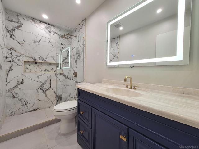 Incredible opportunity on this upgraded and remodeled condo in the centrally located and desirable community of Bernardo Villas! The property features granite counters, stainless steel appliances, upgraded flooring, lighting and ceiling fans, ultra modern bathrooms with lighted mirrors, and a private balcony with green views! Single car carport and golf cart garage or storage. The complex includes membership to Rancho Bernardo Swim & Tennis Club, featuring, clubhouse, pools & spa, gym, tennis and pickleball courts and more! HOA covers water, internet & TV. Close to parks, shopping centers, restaurants and award winning Poway schools!