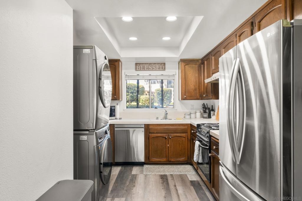 Welcome to your dream home in the highly sought-after community of Bernardo Villas! Perfectly positioned to capture stunning panoramic golf course views, this beautifully updated residence offers the perfect balance of style, comfort, and convenience. Step inside to discover upgraded LVP flooring throughout, a refreshed bathroom with modern finishes, and the ultimate bonus: your own in-unit washer and dryer. Enjoy your light-filled living area that flows seamlessly to your private patio, ideal for morning coffee or evening wine with views of the lush fairway. Additional highlights include a single-car carport with built-in storage cabinets, plus a separate golf cart garage or storage room with plenty of space for all your gear. Residents enjoy access to the exclusive Rancho Bernardo Swim & Tennis Club, featuring a state-of-the-art gym, sparkling pools, spa, tennis and pickleball courts, and a vibrant clubhouse for community events. With water, trash, internet, and TV included in the HOA, and a location just minutes from parks, the I-15, shopping, award-winning restaurants, and top-rated Poway schools, this home truly checks all the boxes. Welcome to your dream home in the highly sought-after community of Bernardo Villas! Perfectly positioned to capture stunning panoramic golf course views, this beautifully updated residence offers the perfect balance of style, comfort, and convenience. Step inside to discover upgraded LVP flooring throughout, a refreshed bathroom with modern finishes, and the ultimate bonus; your own in-unit washer and dryer. Enjoy your light-filled living area that flows seamlessly to your private patio, ideal for morning coffee or evening wine with views of the lush fairways. Additional highlights include a single-car carport with built-in storage cabinets, plus a separate golf cart garage or storage room with plenty of space for all your gear. Residents enjoy access to the exclusive Rancho Bernardo Swim & Tennis Club, featuring a state-of-the-art gym, sparkling pools, spa, tennis and pickleball courts, and a vibrant clubhouse for community events. With water, trash, internet, and TV included in the HOA, and a location just minutes from parks, the I-15, shopping, award-winning restaurants, and top-rated Poway schools, this home truly checks all the boxes.
