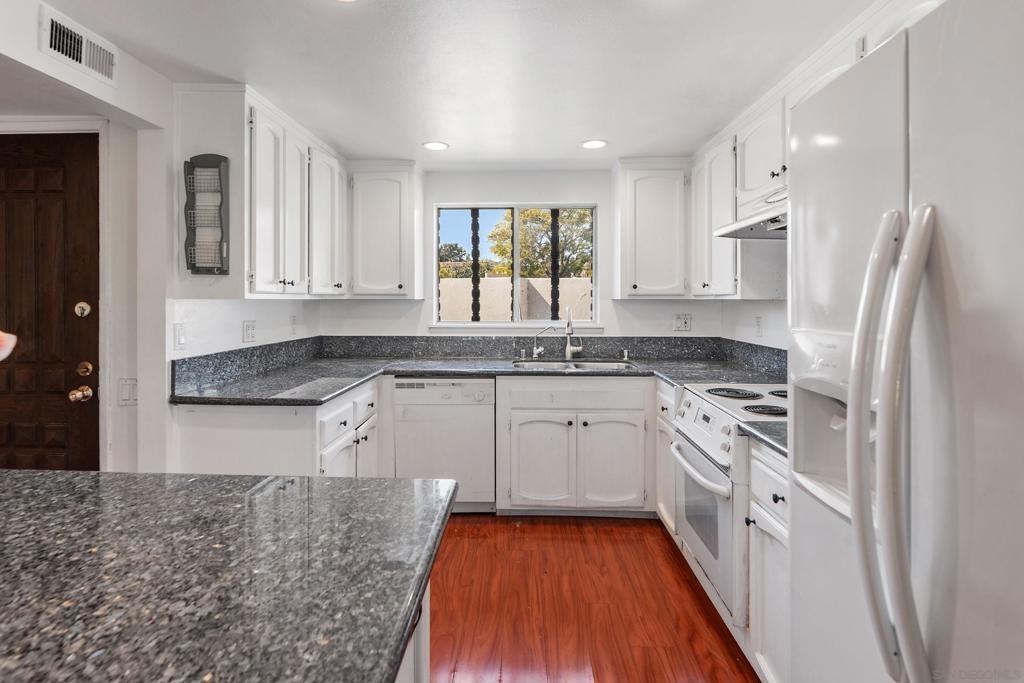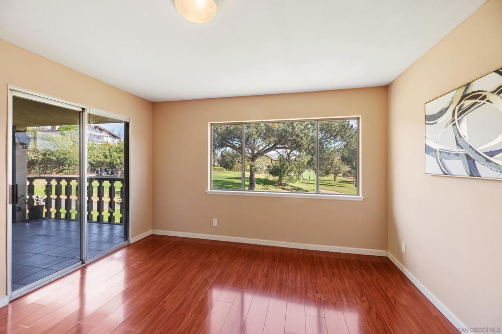 Welcome to your dream retreat in the highly sought-after community of Bernardo Villas! Perfectly situated to offer stunning panoramic golf course views, this charming residence provides a rare blend of comfort and convenience. Inside, you’ll find sleek granite countertops, stylish laminate flooring, and an open layout filled with natural light. The private balcony is ideal for enjoying your morning coffee or unwinding after a long day while taking in the lush fairways. Practical features include a single-car carport with storage cabinets and a separate golf cart garage or storage area, ensuring you have plenty of room for all your belongings. Residents also enjoy membership to the exclusive Rancho Bernardo Swim & Tennis Club, offering a state-of-the-art gym, sparkling pools and spa, a clubhouse for social events, and both tennis and pickleball courts. The HOA covers water, internet, and TV, making homeownership even more convenient. Ideally located just minutes from parks and the I-15 freeway—and within walking distance of shopping centers, award-winning restaurants, and top-rated Poway schools—this home truly has it all! Welcome to your dream retreat in the highly sought-after community of Bernardo Villas! Perfectly situated to offer stunning panoramic golf course views, this charming residence provides a rare blend of comfort and convenience. Inside, you’ll find sleek granite countertops, stylish laminate flooring, and an open layout filled with natural light. The private balcony is ideal for enjoying your morning coffee or unwinding after a long day while taking in the lush fairways. Practical features include a single-car carport with storage cabinets and a separate golf cart garage or storage area, ensuring you have plenty of room for all your belongings. Residents also enjoy membership to the exclusive Rancho Bernardo Swim & Tennis Club, offering a state-of-the-art gym, sparkling pools and spa, a clubhouse for social events, and both tennis and pickleball courts. The HOA covers water, internet, and TV, making homeownership even more convenient. Ideally located just minutes from parks and the I-15 freeway—and within walking distance of shopping centers, award-winning restaurants, and top-rated Poway schools—this home truly has it all!