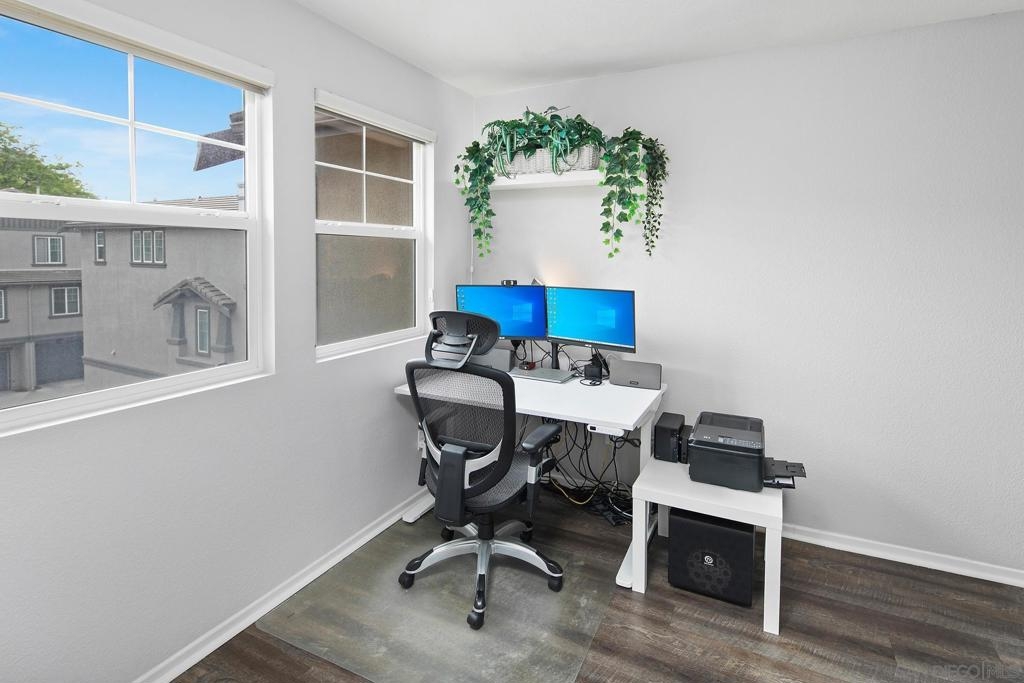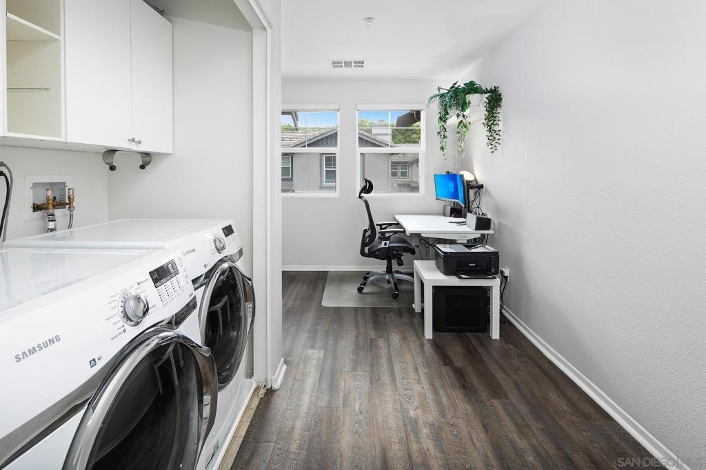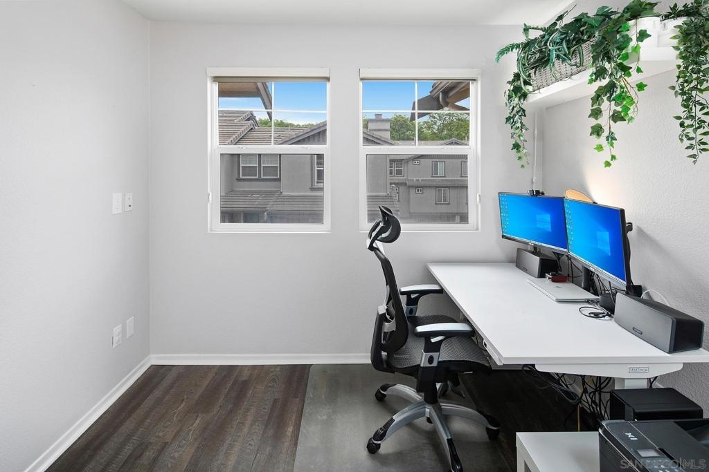 Welcome home to this updated 1 BD + Office (Opt 2nd BD) townhome in the HEART of the thriving 4s Ranch neighborhood! As soon as you enter, you'll notice the updated vinyl plank flooring throughout the downstairs living area and a powder room just off of the entryway. The living space flows into the dining area & modern kitchen, which features recently updated counters/cabinets/and appliances. Enjoy meals on a private balcony just off of the dining area as well. Head up the stairs into the loft/office/optional bedroom area, which is also where the full sized laundry closet is. Thru the loft is the oversized Primary Bedroom, with an en-suite Primary Bathroom. The walk in closet has been outfitted with custom organizers as well. This unit comes with its own private 2 car (tandem) garage, which is extremely rare in this community. The Bridgeport community has ample guest parking, and a community pool & spa for the residents.