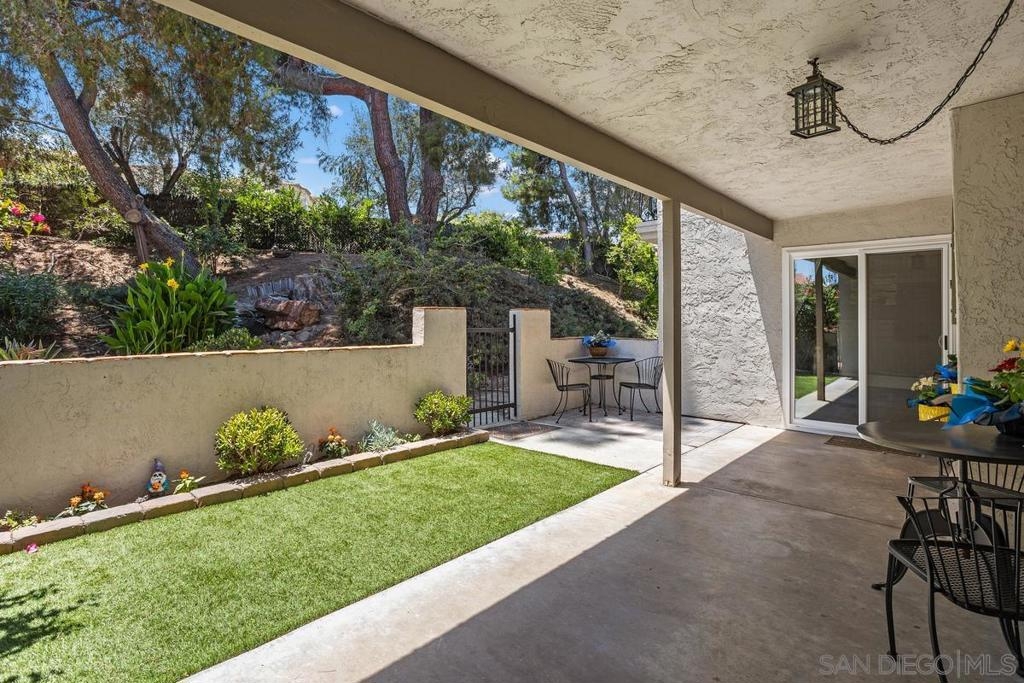 Welcome to your dream home in the beautiful & serene Campana Villas! This rare single-story gem boasts an exceptional blend of modern upgrades & natural beauty, offering a peaceful retreat with every comfort. Step into a large, state-of-the-art remodeled kitchen, featuring high-end newer appliances, sleek, newer cabinetry with convenient pull-out drawers & lazy Susans, & a movable island/breakfast bar with a food grade stainless steel top, perfect for food prep or baking. Enjoy the luxury of stunning, remodeled bathrooms, a newer A/C & heating system, & a large, gated backyard patio backyard complete with low-maintenance synthetic turf. Take in the views of the lush greenbelt with a tranquil waterfall & pond, surrounded by towering pines, bougainvillea, Bird of Paradise, & other vibrant blooms—truly a private oasis. Inside, the expansive living room invites you to relax by the cozy gas fireplace, while all three spacious bedrooms offer comfort & flexibility for any lifestyle.As a resident, you'll enjoy membership at the exclusive Rancho Bernardo Swim & Tennis Club (with an annual fee), adding incredible value & community amenities to this already exceptional lifestyle. Don’t miss your chance to own this beautifully upgraded, private single-level condo in one of RB’s most desirable communities within the Poway School District! There is one covered parking space. In addition, another space is available. There is also ample guest parking.
