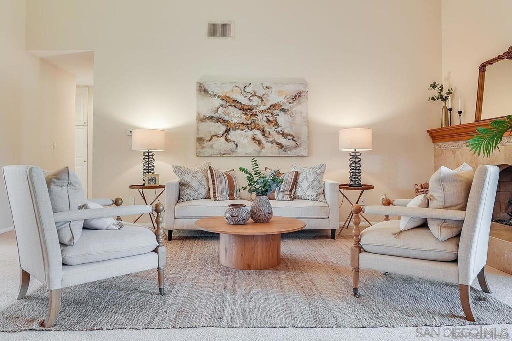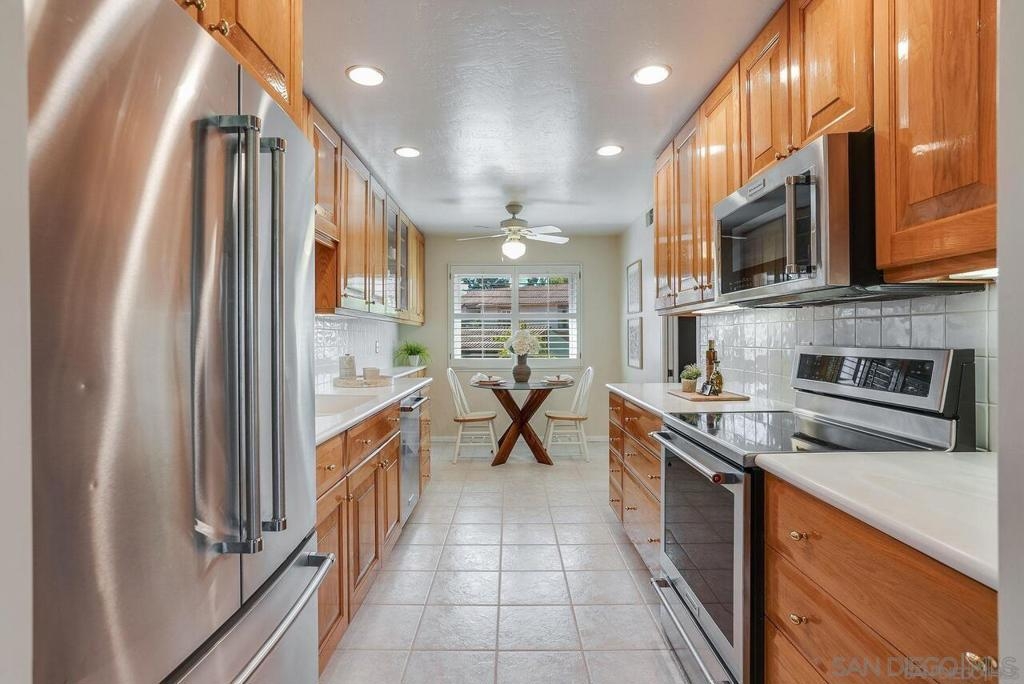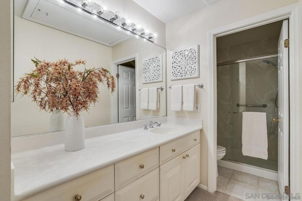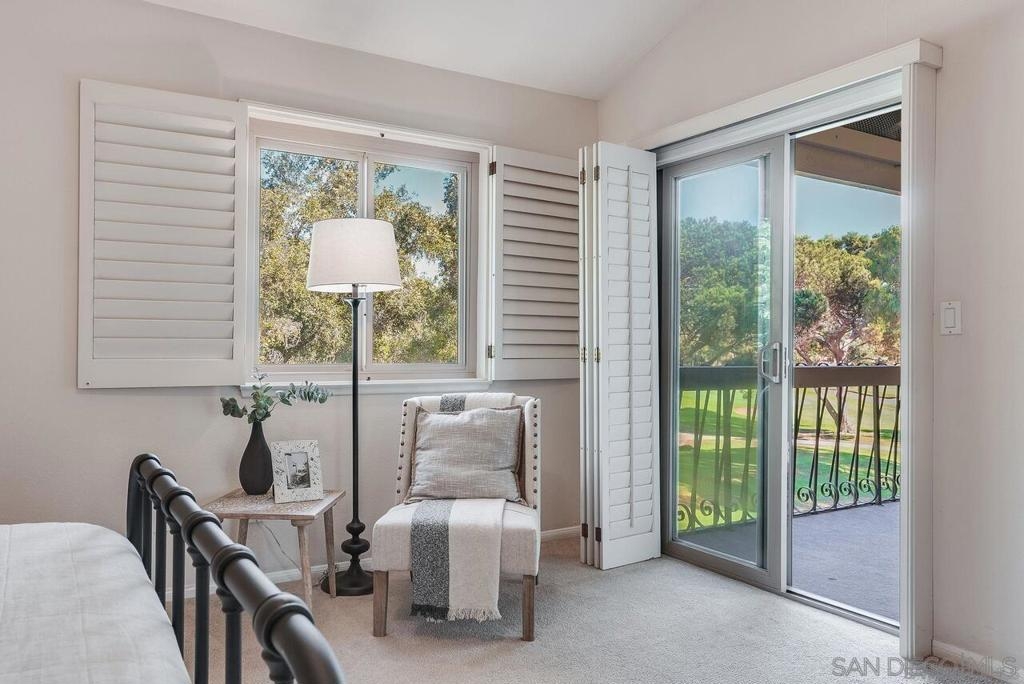 Welcome to 12058 Caminito Campana, a stunning upper-level condo perfectly situated overlooking the 16th hole tee box of the renowned Rancho Bernardo Inn Golf Course. This beautiful 3br, 2ba residence features a spacious, thoughtfully designed layout enhanced by vaulted ceilings, creating an open and airy atmosphere that ensures comfort and convenience at every turn. As you enter, you’ll appreciate the seamless flow of the all-on-one-level living space—a difference you can truly feel—enhanced by ample overhead lighting in every room. The pride of ownership is evident throughout, from the dual-pane windows to the plantation shutters that adorn each window, providing both style and energy efficiency. The galley kitchen is a chef’s delight, equipped with high-end KitchenAid stainless steel appliances, including a refrigerator with a convenient water filtration system—no more Brita struggles! Organized storage is a breeze with two convenient drawers beneath the range—no more searching for pots and pans! The kitchen can easily be closed off to guests, children, or pets via two doors, making it perfect for entertaining. Beautiful tile flooring flows through the entryway, kitchen, and bathrooms, while plush carpet in the living areas provides a cozy feel that welcomes you the moment your bare feet touch the floor. For added convenience, the unit includes an in-unit laundry area equipped with an industrial-grade Speed Queen washer and dryer, making laundry day a breeze. This exceptional condo is the perfect retreat for those seeking a blend of comfort, style, & a vibrant community! Enjoy the convenience of stepping onto your balcony from either the master or dining area, where you can watch golfers and soak in the serene atmosphere—creating an ideal escape for everyone, from remote workers and stay-at-home parents to busy professionals and pet parents. It’s a perfect spot to unwind and enjoy the peaceful surroundings! Storage is abundant throughout the condo, with well-designed spaces in the kitchen, closets, pantry, and hall. The large attic, easily accessible from the master bedroom, and a spacious outdoor closet are ideal for keeping your home organized and clutter-free. Parking is convenient, with one designated spot and plenty of additional parking available; the prior owners never had trouble finding a space. Guest parking is also easily accessible, and there are several electric charging stations within the complex for added convenience. With one of the lowest HOA fees around, residents of Campana Villas enjoy access to the recently renovated RB Swim and Tennis Club, which offers a full gym, pools, a jacuzzi, tennis courts, a playground, and options for pickleball—providing ample opportunities for recreation and relaxation. Families will appreciate that this condo falls within the highly sought-after Poway Unified School District, ensuring excellent educational opportunities for children. Convenience is at your doorstep, with Vons and numerous shops within walking distance, as well as two Target locations just a short drive away. Plus, enjoy quick access to the freeway for easy commuting and exploring the surrounding area. You’ll also be close to the Rancho Bernardo tech hub, home to major companies like Apple's new SD hub, Teradata and Sony PlayStation, along with various defense contractors. While our pictures may capture its beauty, the true charm of this home is an experience you need to feel. So come visit! Don’t miss your chance to make this beautiful residence your home!