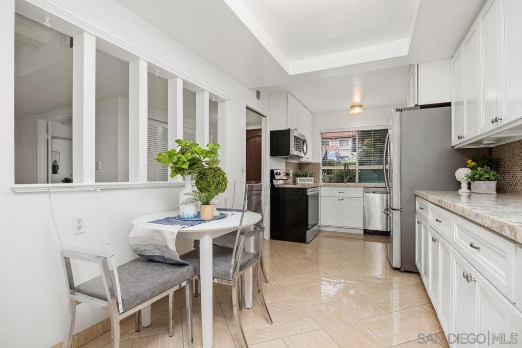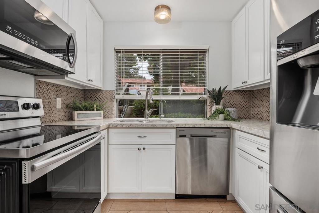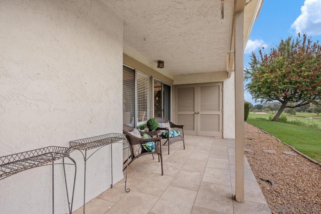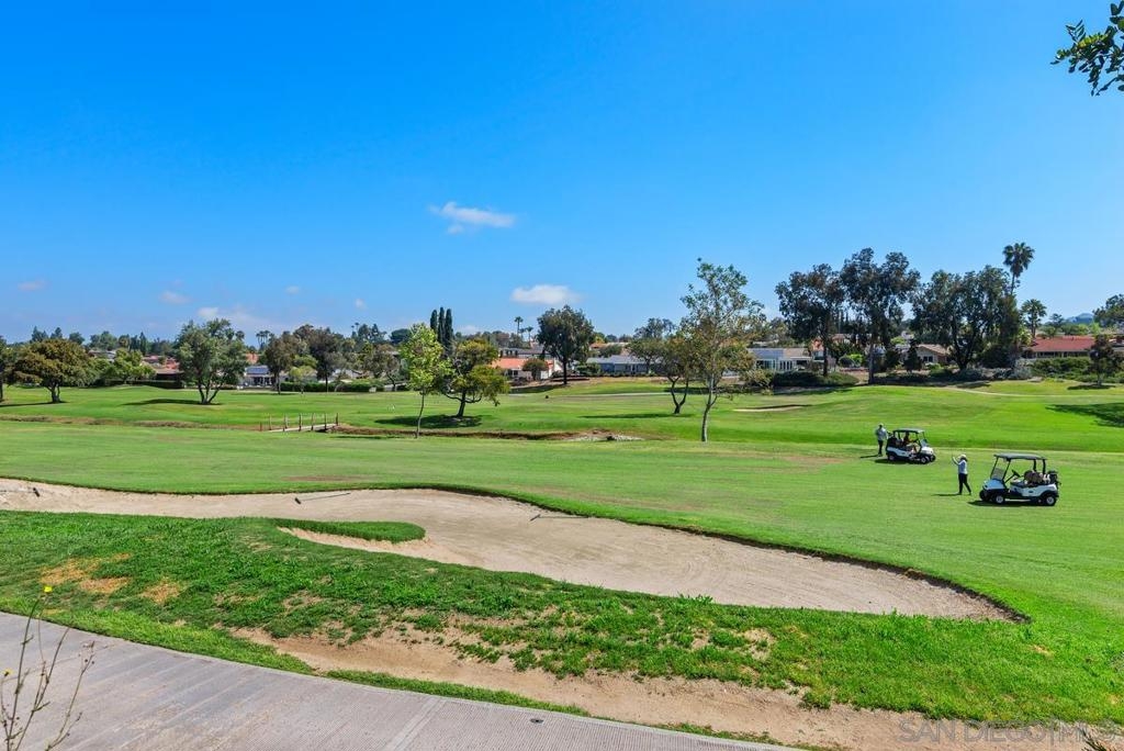 Enjoy living in the highly desirable community of Campana Villas in a ground level 3 bedroom 2 bath 1434 sq foot home with a delightful panoramic view of the RB Inn golf course. Upon entering you are greeted with a large open great room with a warm cozy fireplace. The home was recently painted and features granite counter tops in the kitchen and bathrooms. It has stainless steel appliances, 2 year old washer and dryer, and recently remodeled bathrooms. All bedrooms have mirrored closet doors. There is a beautiful marble floor throughout. Membership in the RB Swim and Tennis club is required for a reasonable annual fee. The club has 2 pools, 2 hot tubs, dry saunas, tennis and pickleball courts, a basket ball court, a large exercise gym, and more. There is covered carport parking and one uncovered permit parking spot. There is a storage room in the carport and locked shelf space in the trash closet .It is less than one mile from from the RB shopping district with grocery stores, lots of specialty shops, restaurants, banks, three minute access to the 15 freeway and more. It is 3 miles from North County Mall and is in the prestigious Poway Unified School District. Pets are allowed and it is move in ready.