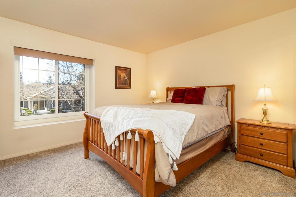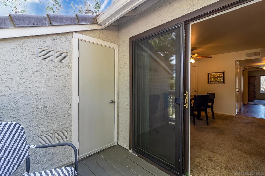 Stunning and move-in-ready. Don't miss this upper level 1 bed/1 bath condo in the highly desirable Carmel Trails community. Featuring a new HVAC system, gorgeous renovated shower and a private balcony with views! New dual pane windows and patio slider! Spacious open floor plan, w/ combo living/dining area, full-size washer/dryer. Well appointed kitchen w/ stainless steel appliances, granite countertops, breakfast bar, wood cabinets, built-in microwave, & stove. Loads of closet space throughout. This top floor condo offers a private patio w/generous storage closet, assigned parking directly in front of the unit & POWAY schools! Resort-style living offering a range of amenities, including an outdoor pool, spa, tennis courts, gym, and barbecue grills. Conveniently located in the highly sought-after Rancho Bernardo neighborhood, this home is just a short distance from walking & biking trails, parks and playgrounds, nature, restaurants, great shopping, wineries, local shops, supermarkets, & cafes. Easy access to the 15 freeway, this home is truly one-of-a-kind and won't last long!