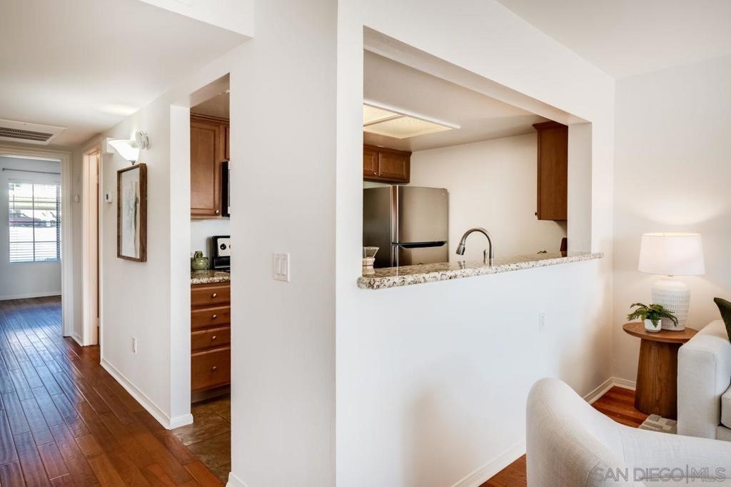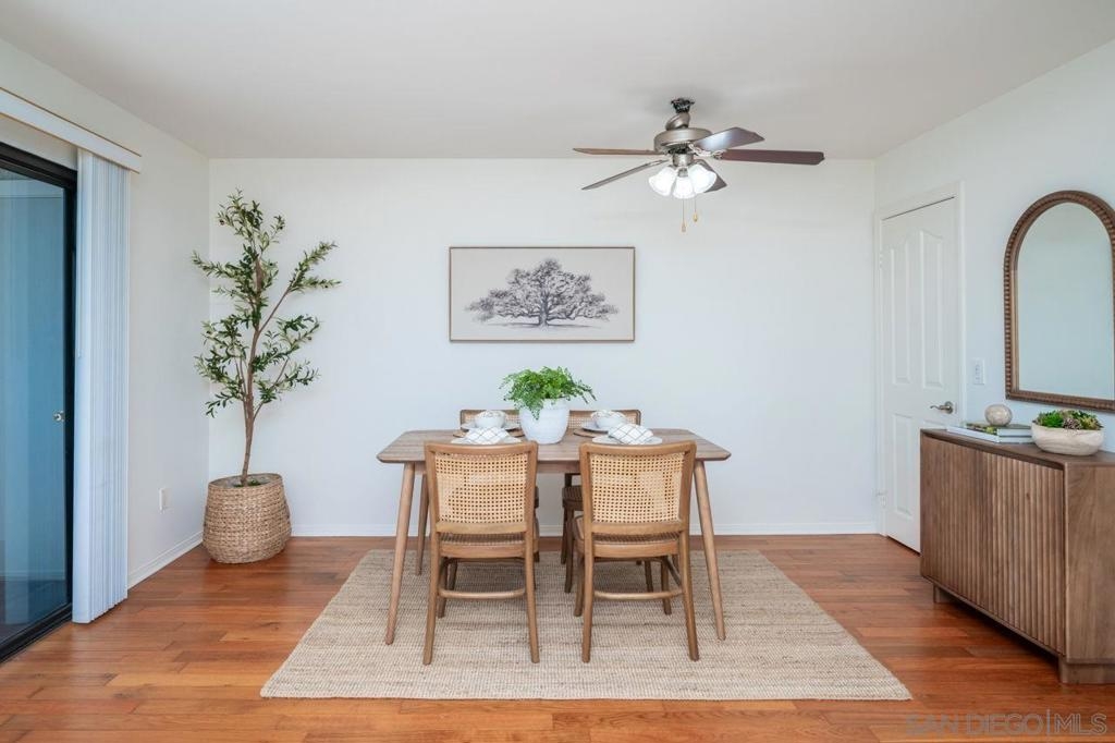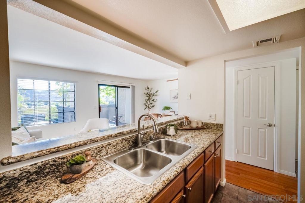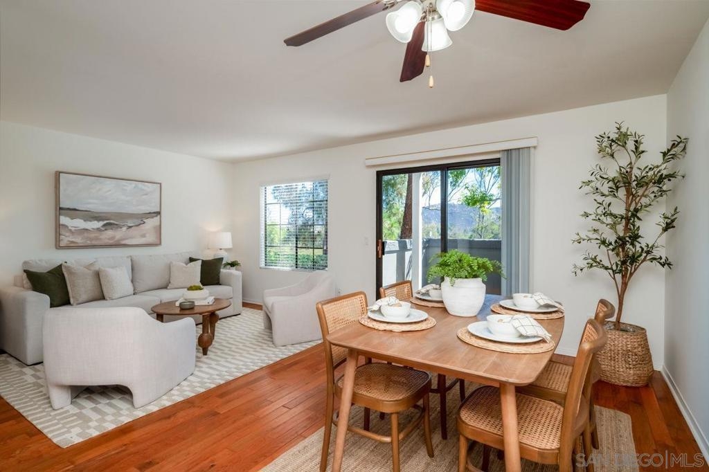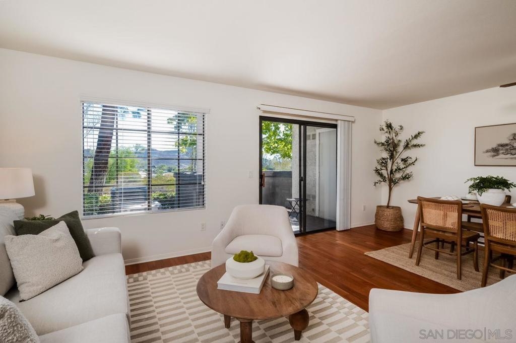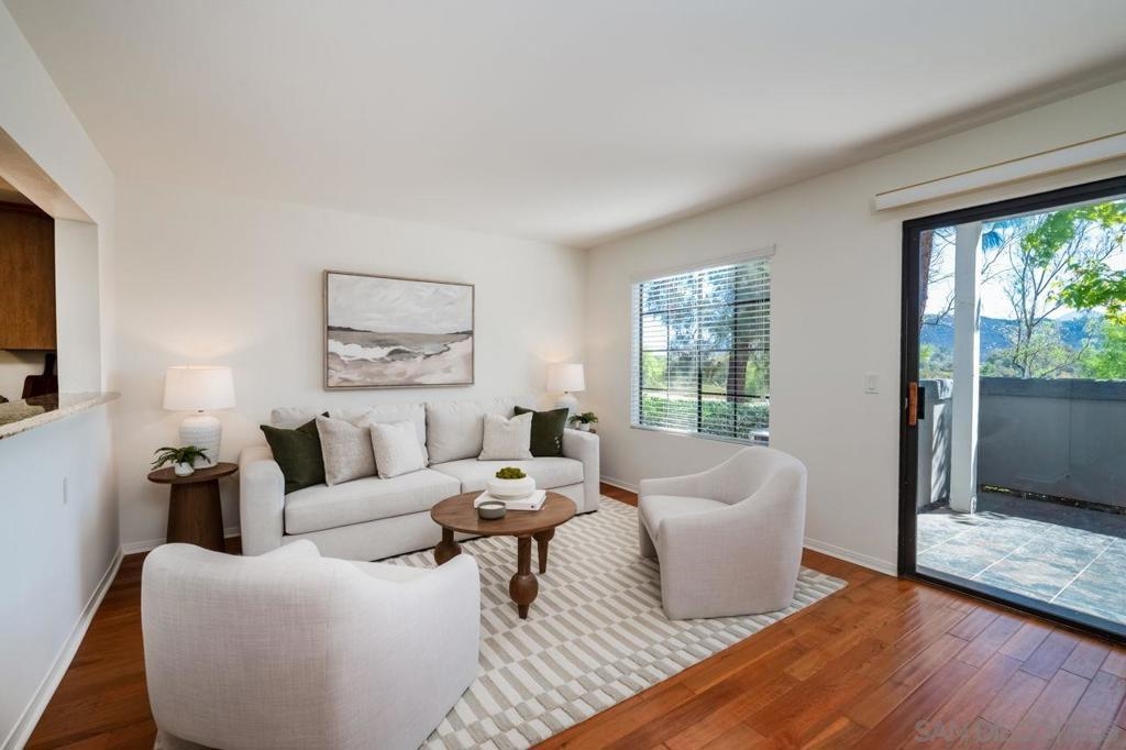 Charming ground-floor condo in Rancho Bernardo, freshly painted and move-in ready! Featuring real wood flooring throughout living areas, a cozy layout, and a private patio with peaceful mountain views. The kitchen offers a new refrigerator and new dishwasher, while the home also includes in-unit washer and dryer plus A/C for year-round comfort. Community amenities feature a pool, spa, fitness center, and clubhouse, along with plenty of guest parking. Close to shopping, dining, golf, scenic trails, and the freeway—this home offers the perfect blend of comfort, convenience, and location!