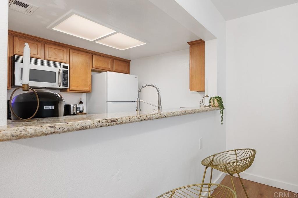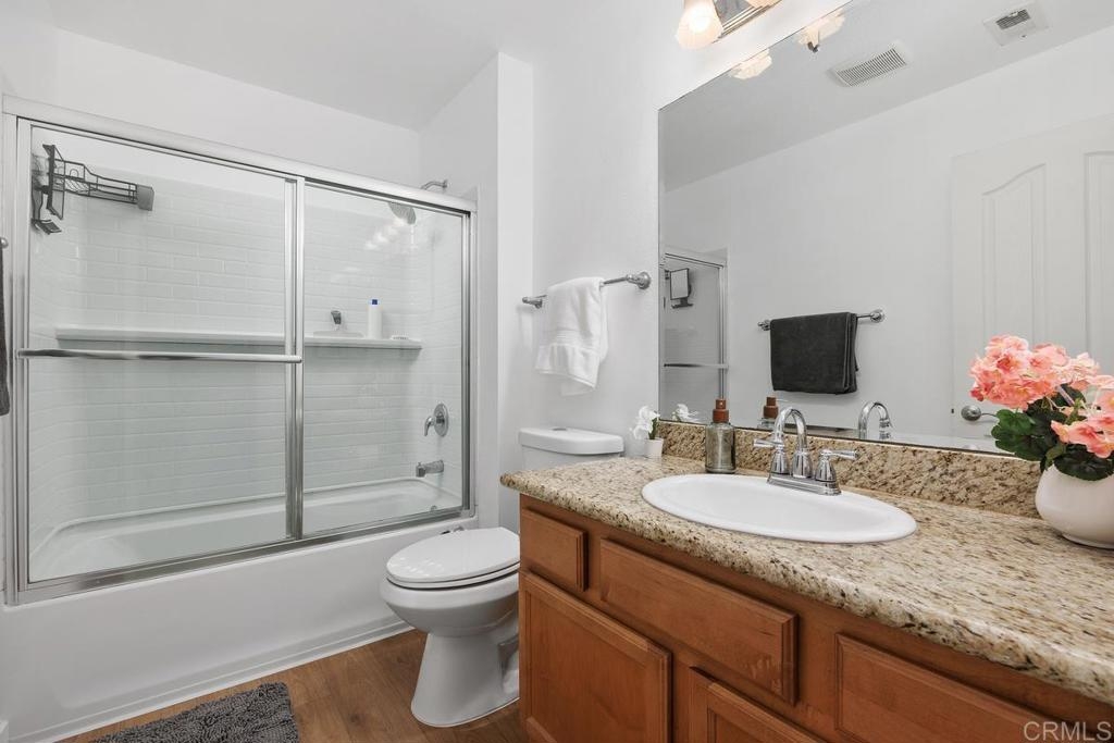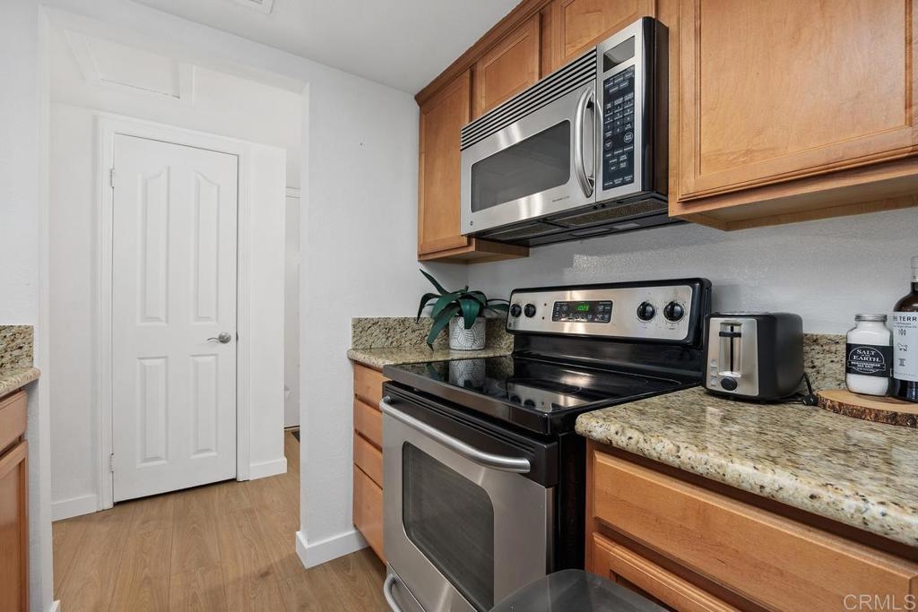 Welcome to this beautifully upgraded entry-level condo in the highly desirable Carmel Trails community. This charming 1-bedroom, 1-bath unit features granite countertops in both the kitchen and bathroom, sleek stainless steel appliances, and brand new Bambino flooring throughout. A full-size washer and dryer are conveniently located in a dedicated laundry closet, while a newly installed water heater ensures comfort and efficiency. Additional recent upgrades completed within the last year include a new shower tub and updated kitchen and bathroom faucets and sinks—offering modern finishes throughout. Relax on your private patio or take advantage of the community’s incredible resort-style amenities, including two swimming pools, a spa, sauna, tennis court, BBQ area, and a fully equipped fitness center. This home includes a covered parking space conveniently located near the unit. Situated just minutes from Highways 15 and 56, top-rated schools, and the vibrant Carmel Mountain Ranch shopping, dining, and entertainment scene—this is North County living at its best!