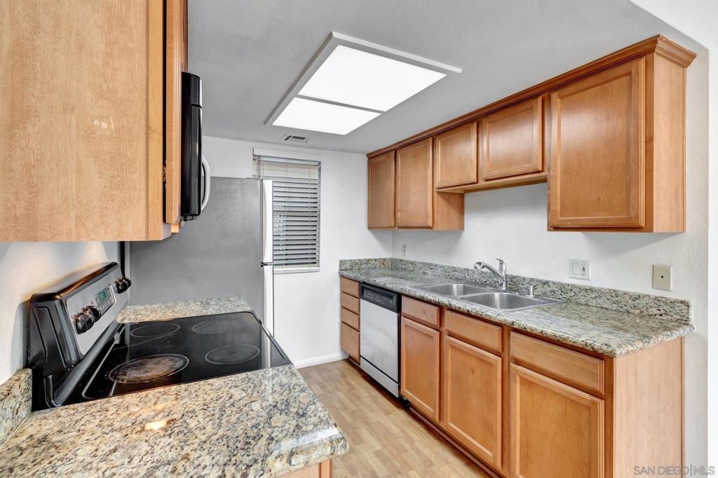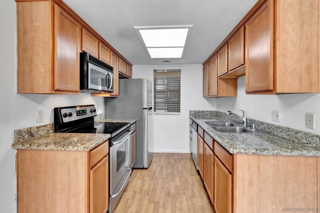 This 2-bedroom, 1-bath condo in Rancho Bernardo is a great opportunity to own in a well-established neighborhood. Located on the first floor, it features a functional layout with a private back patio and a clean, practical interior. The unit includes two designated parking spots and offers access to two community pools, a tennis court, and a community center. Conveniently located near major highways, top-rated schools, shopping centers, and parks, this condo provides easy commuting and everyday convenience—ideal for first-time buyers, downsizers, or investors.