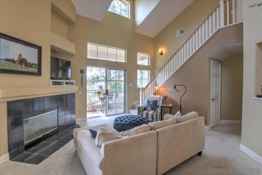 Fabulous 2BR + loft Collage townhome with beautiful mountain views situated in the heart of Carmel Mtn Ranch. Enter and notice the mirrored wall in the downstairs entryway. Features include a light & bright open floor plan. The kitchen has Travertine floors, recessed lighting and opens to the dining area nearby. The living room includes a cozy fireplace and built-in entertainment center. A balcony just off the living room is set up to be the new owners private oasis. Go upstairs and find the loft area for the perfect office, an additional bed room or den set-up. Inside laundry, private 2 car attached garage. Award winning Poway schools. Close to shopping, restaurants and I-15. Complex Features: , Equipment: Garage Door Opener Sewer: Sewer Connected