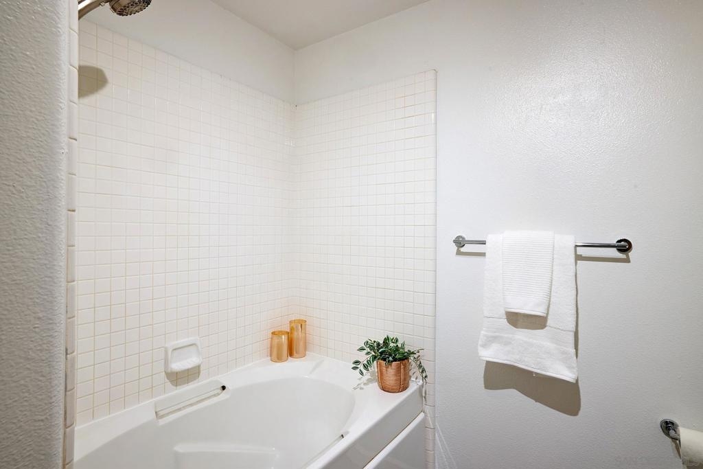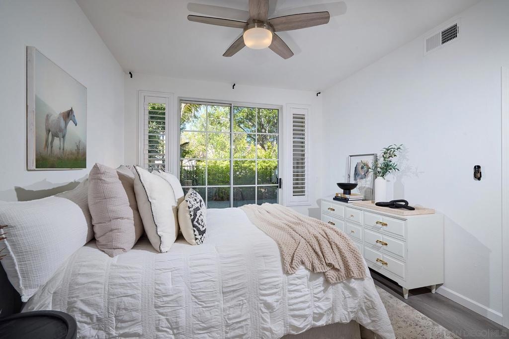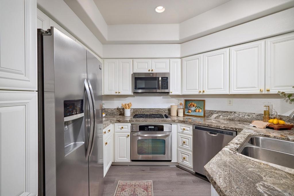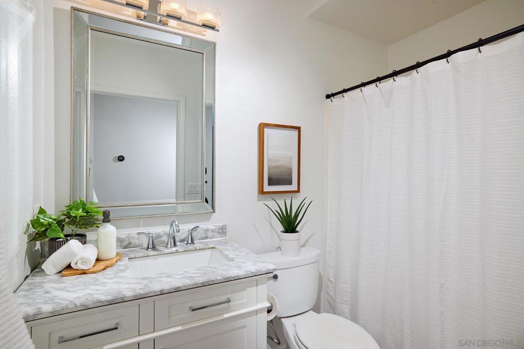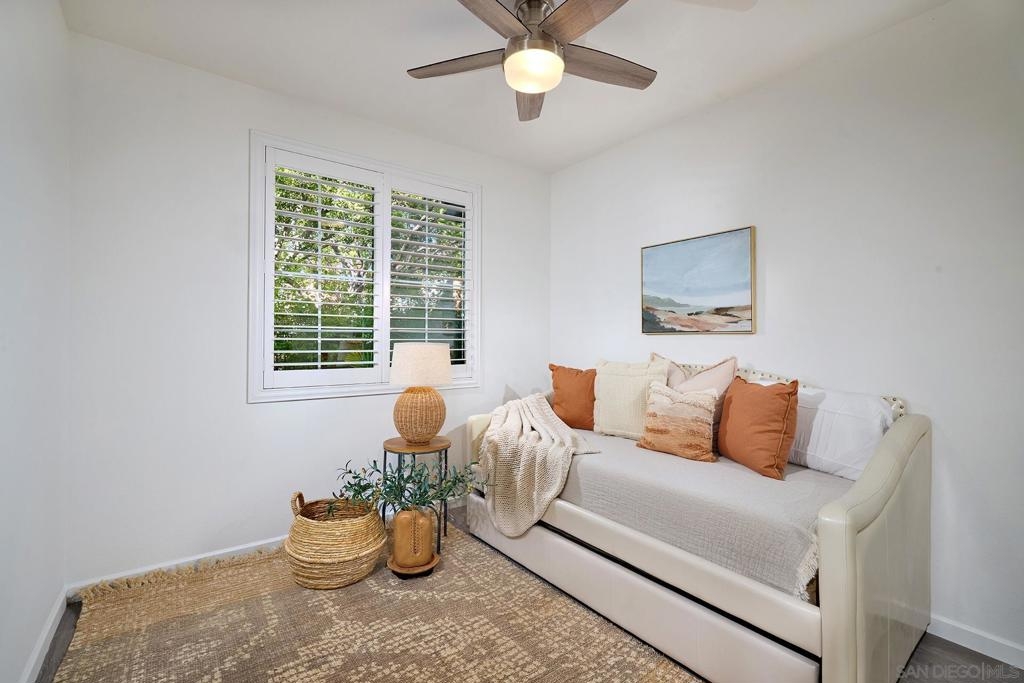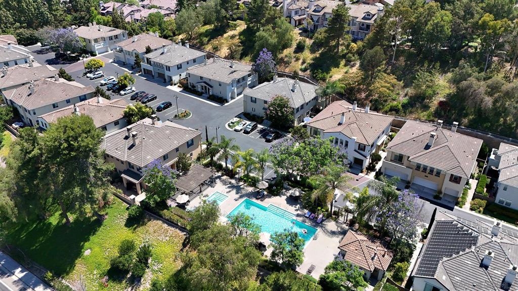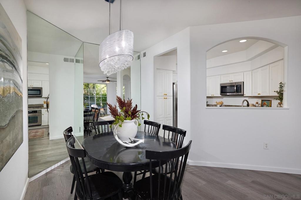 A new look! Freshly painted interior! Move-in ready! Stylish and chic 2 bed, 2 bath gem in Collage of Carmel Mountain Ranch. Step into 1076 sq ft of comfort featuring newer luxury vinyl plank flooring and updated baths. Living room boasts a fireplace with stacked stone facade and slider to private outdoor patio. Need to beat the heat? No problem with central air conditioning! Private 1-car garage and interior, full-size laundry. But the real showstopper? An expansive, private patio area for gathering or relaxing! Poway Unified Schools. The outdoor space is perfect for al fresco dining or your morning coffee. Enjoy the convenience of indoor laundry. And when it's time to unwind, take a dip in the community pool. This home is a rare find – stylish, functional and just waiting for you to make it yours. See floor plan in documents section below photos.