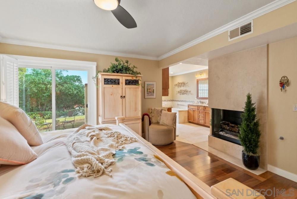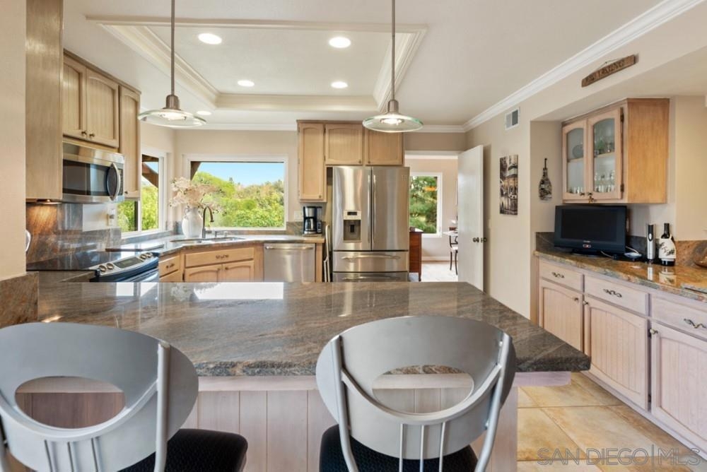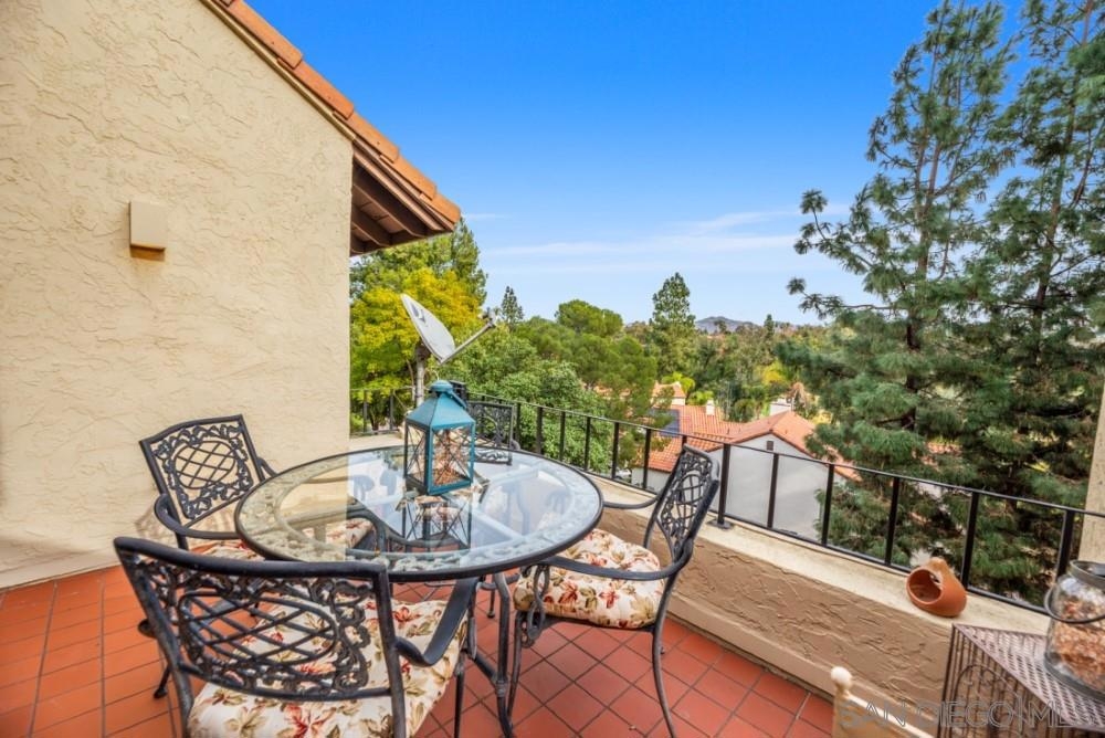 Desirable Eastview, features this beautiful tri level 3BD/3BA Normandy model . Set on an elevated lot w/parklike views with a glimpse of the RB Inn's golf course. Generous rooms w/open floorplan feel. Two balconies on the upper level, private patios off the master and secondary bedroom, enhance the ambiance of this home Upgraded throughout, wood flooring, recessed lighting, granite,SS appl, crown mlds, built ins Eastview CC / RB Swim and Tennis offer many options for an active lifestyle. see below The property's front gate opens to an attractive well appointed and private courtyard. The home's entry leads down to the Master Bedroom Suite and generous secondary bedroom. The MB shows a spacious walk in closet, marble fireplace, a slider to a private patio area. Large bath, w/dual vanity, separate glass enclosed shower. The secondary bedroom w/ upgraded en suite bath, slider to a private patio. A few steps up off the entry, a third bedroom currently serving as an office w/desk area, builtins and en suite bath which serves as a guest bath to the living space. The upgraded kitchen w/SS appliances, convection oven, granite counters ,recessed ceiling/lighting,breakfast bar and a breakfast nook with a slider to the balcony for barbecuing. The living room w/vaulted beamed ceilng, fireplace and adjoining dining room are perfect for entertaining . The slider off the LR opens to a spacious balcony w/stunning parklike /mountain views For recreation Eastview/Rancho Bernardo and the surrounding area offer parks, hiking trails, playgrounds, golf tennis and popular pickleball. Nearby RB Center has a variety of shopping, restaurants and other retail outlets. Highly rated Poway Unified School District provides excellent K-12 educational resources Complex Features: ,,, Equipment: Dryer,Garage Door Opener, Range/Oven, Washer Other Fees: 315 Sewer: Sewer Connected Topography: GSL