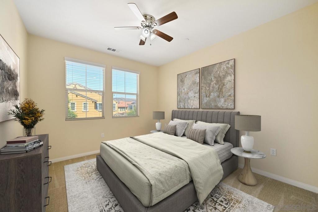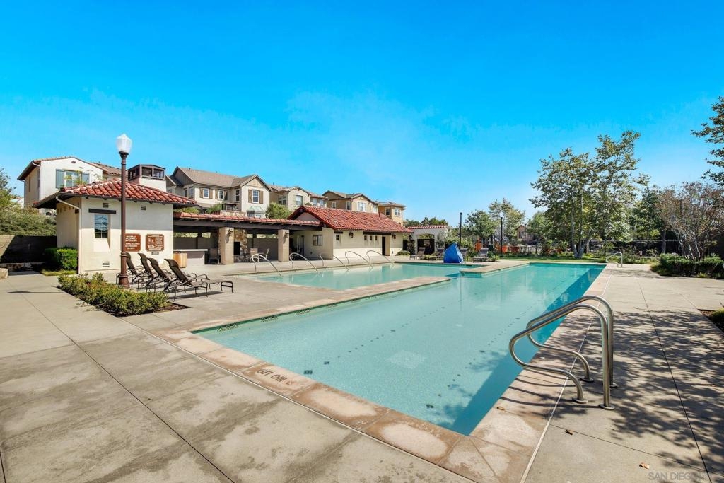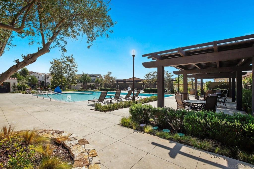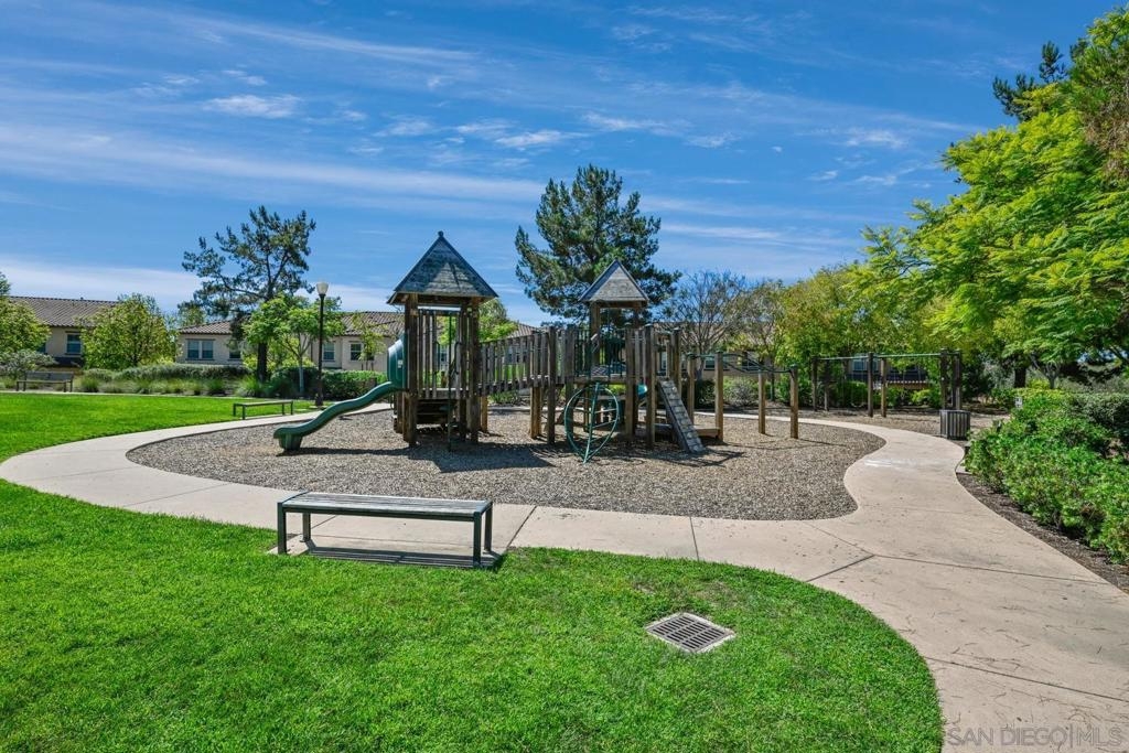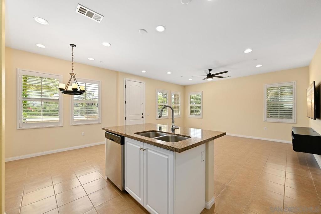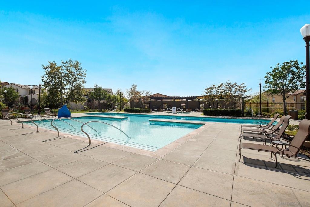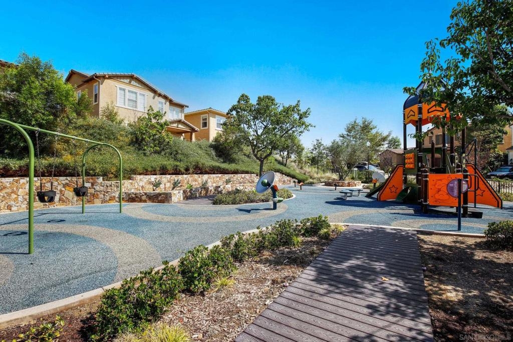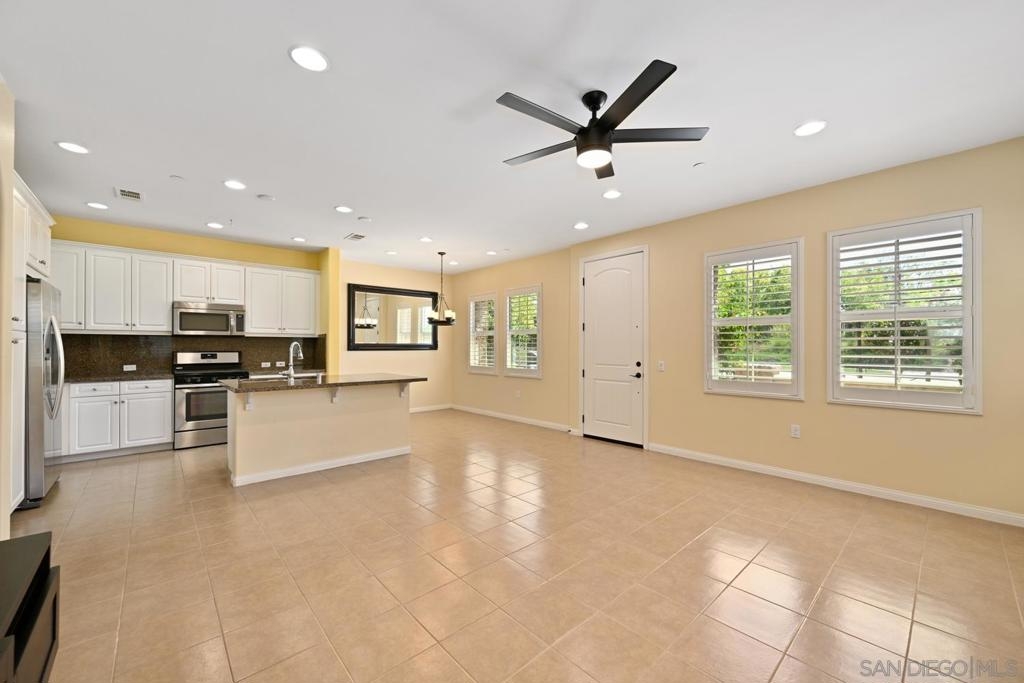 Welcome to Garretson at Del Sur, where resort-style living meets modern comfort! This corner-unit home offers 4 bedrooms, 3 bathrooms, and an attached two-car garage. The thoughtfully designed ADA-certified floor plan includes a main-level bedroom and full bath, ideal for guests or multigenerational living. The open-concept living area is filled with natural light and features recessed lighting, durable flooring, and a beautifully appointed kitchen with crisp white cabinetry, stainless steel appliances, granite countertops, and an island with breakfast bar seating. Upstairs, you’ll find the remaining bedrooms, including a spacious primary suite with a walk-in closet and luxurious en-suite bath complete with a soaking tub and walk-in shower. Del Sur is a community like no other, surrounded by over 1,000 acres of preserved open space with 18+ miles of trails, 14 parks, 11 heated pools, year-round community events, and a vibrant Town Center with shopping, dining, and services—including Target and Sprouts. Located within the top-rated Poway Unified School District, this home offers the perfect blend of convenience, comfort, and lifestyle in one of San Diego’s most sought-after neighborhoods.