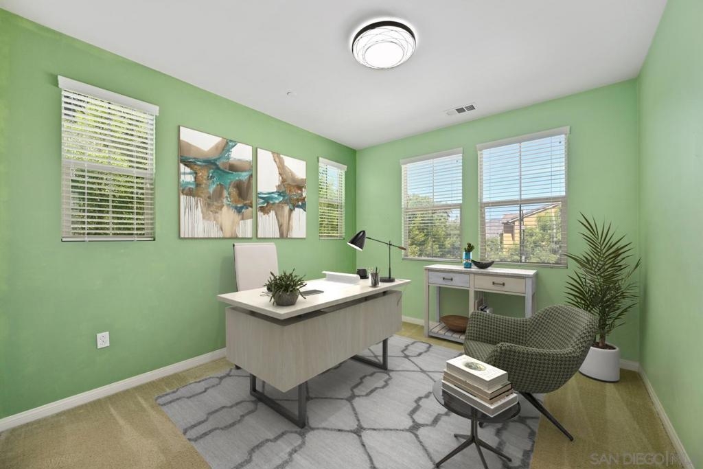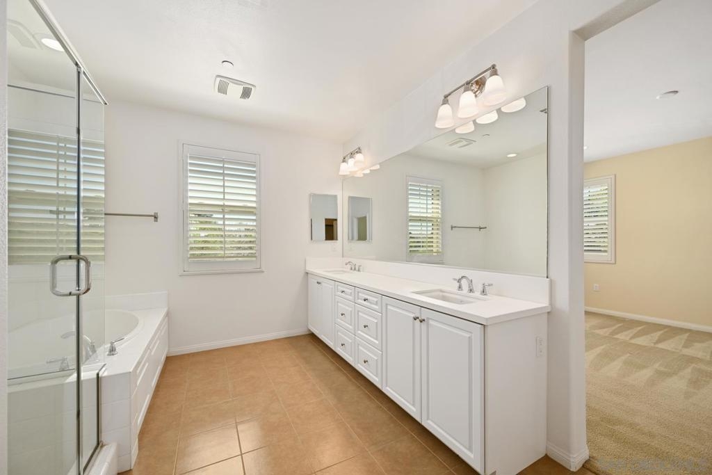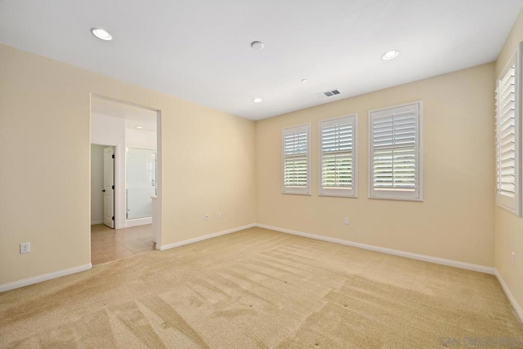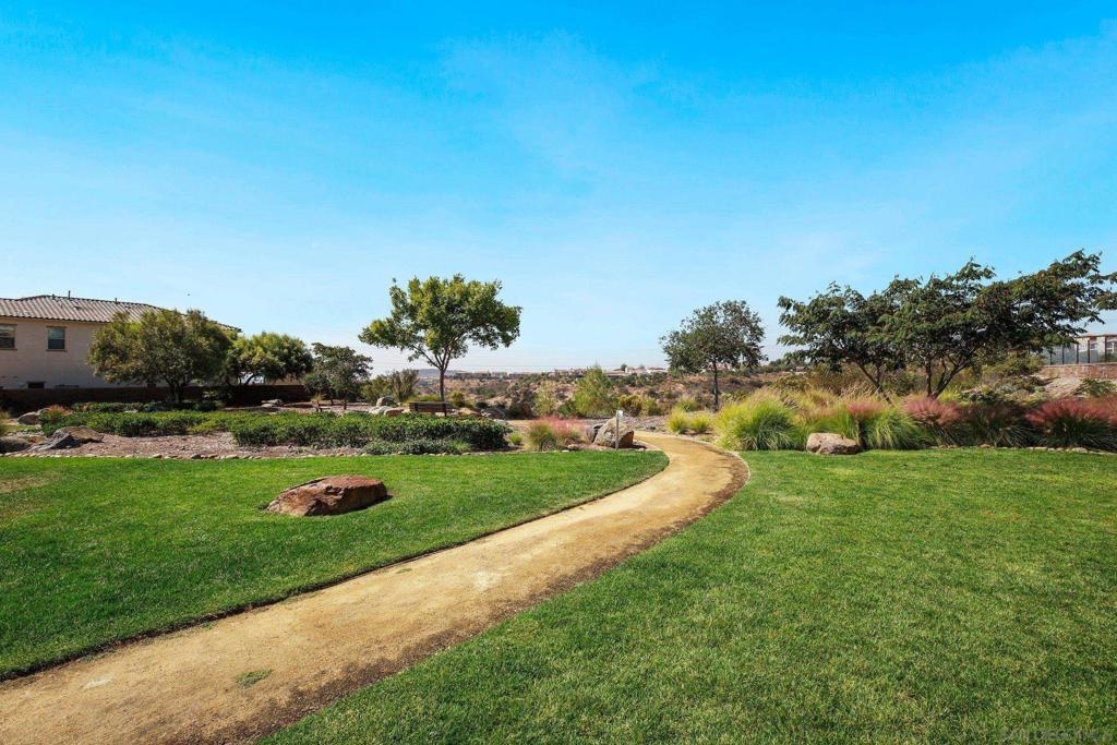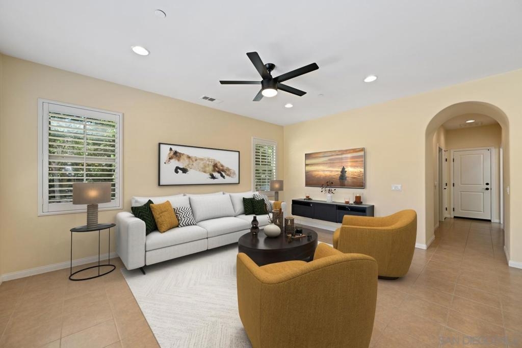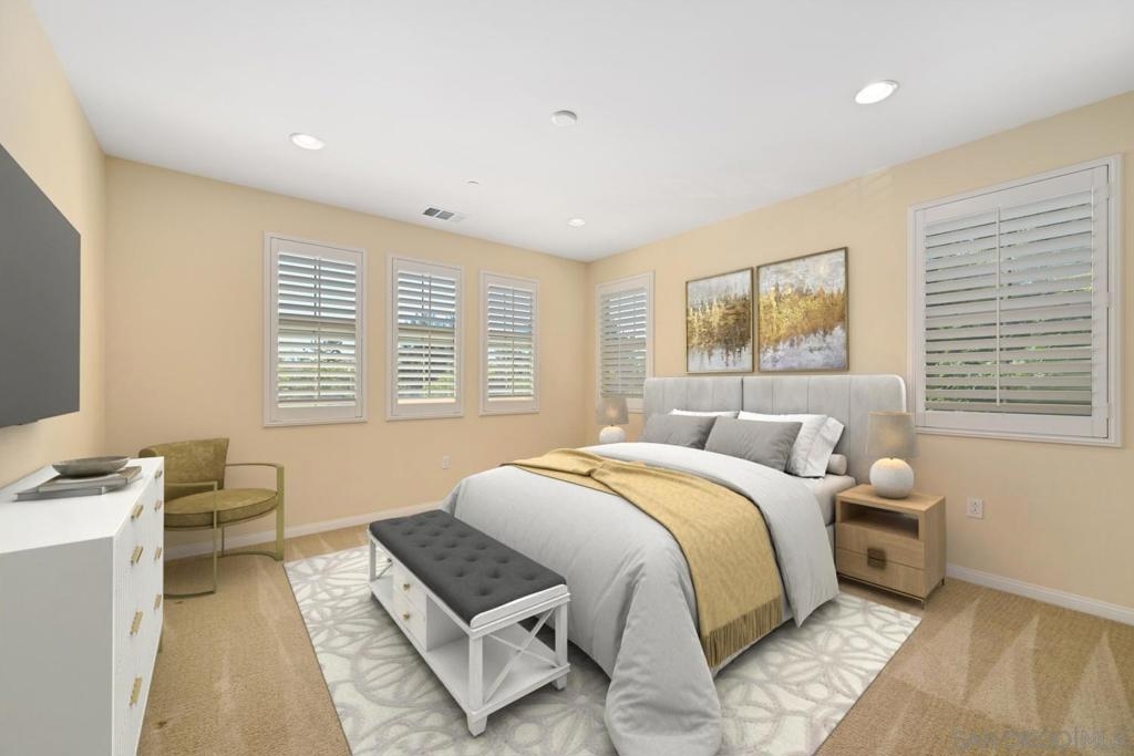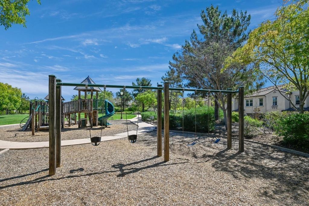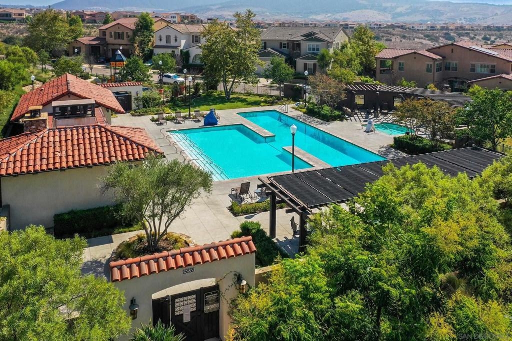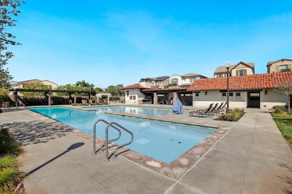 Welcome to Garretson at Del Sur, where resort-style living meets modern comfort! This corner-unit home offers 4 bedrooms, 3 bathrooms, and an attached two-car garage. The thoughtfully designed ADA-certified floor plan includes a main-level bedroom and full bath, ideal for guests or multigenerational living. The open-concept living area is filled with natural light and features recessed lighting, durable flooring, and a beautifully appointed kitchen with crisp white cabinetry, stainless steel appliances, granite countertops, and an island with breakfast bar seating. Upstairs, you’ll find the remaining bedrooms, including a spacious primary suite with a walk-in closet and luxurious en-suite bath complete with a soaking tub and walk-in shower. Del Sur is a community like no other, surrounded by over 1,000 acres of preserved open space with 18+ miles of trails, 14 parks, 11 heated pools, year-round community events, and a vibrant Town Center with shopping, dining, and services—including Target and Sprouts. Located within the top-rated Poway Unified School District, this home offers the perfect blend of convenience, comfort, and lifestyle in one of San Diego’s most sought-after neighborhoods.