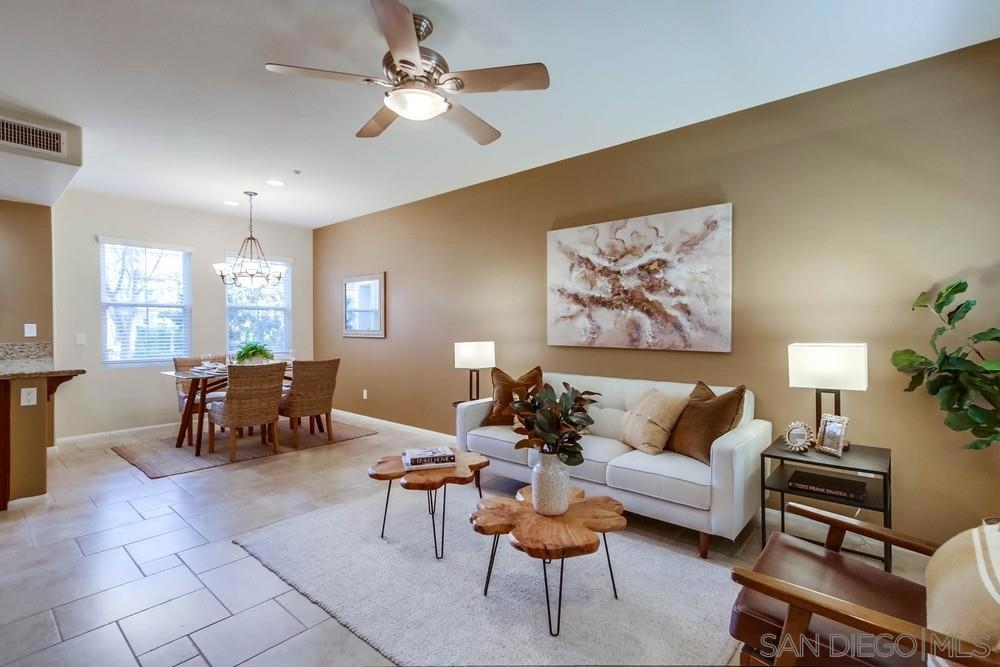 Rarely available 2 story 2/2.5 unit in Gianni complex is centrally located within walking distance to all that makes 4S Ranch special - Patriot Park, MR Elem School, 4S Commons & greenbelt medians. Neutral interior finishes & well maintained home has built-in media niche, Kit w/ SS app & granite counters, ceiling fans, upstairs laundry. Sited in a private part of complex. HOA offers pool & spa, BBQs and maintains lush greenery throughout. Other Fees: 90 Sewer: Sewer Connected Topography: LL