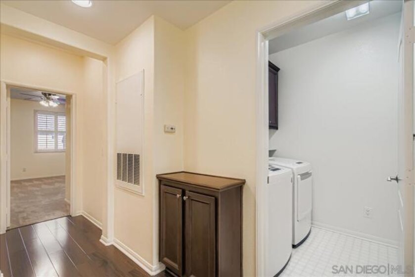 This unit is a 3 bed 2.5 bathroom townhome at Gianni is 4S Ranch. Step into a bright, open-concept floor plan with large windows and abundant natural light. The spacious living and dining areas connect to a well-appointed kitchen featuring granite countertops, stainless steel appliances, gas range, pantry and ample cabinet space, ideal for everyday cooking or hosting. All three bedrooms are upstairs, including a primary suite with walk-in closet, dual-sink vanity and large shower. Secondary bedrooms are well sized with good closet space and share a full bath. Additional features include a downstairs powder room, indoor laundry, recessed lighting, ceiling fans, central A/C, dual-pane windows and an attached 2-car garage with direct access and extra storage. The private front patio offers room for seating, plants or a BBQ. Gianni at 4S Ranch provides a community pool, spa, BBQ area, playgrounds and greenbelts, with maintained walkways and guest parking. Located in the award-winning Poway Unified School District and close to 4S Commons shopping, restaurants, parks, sports fields, trails and freeway access, this townhome delivers a low-maintenance lifestyle in a convenient North County location. HOA covers exterior maintenance, roof, common areas and community amenities, allowing owners to focus on daily living rather than upkeep; strong local rental demand also makes this property a solid long-term hold for either primary occupancy or investment. Flexible 3-bedroom layout supports work-from-home or guest space