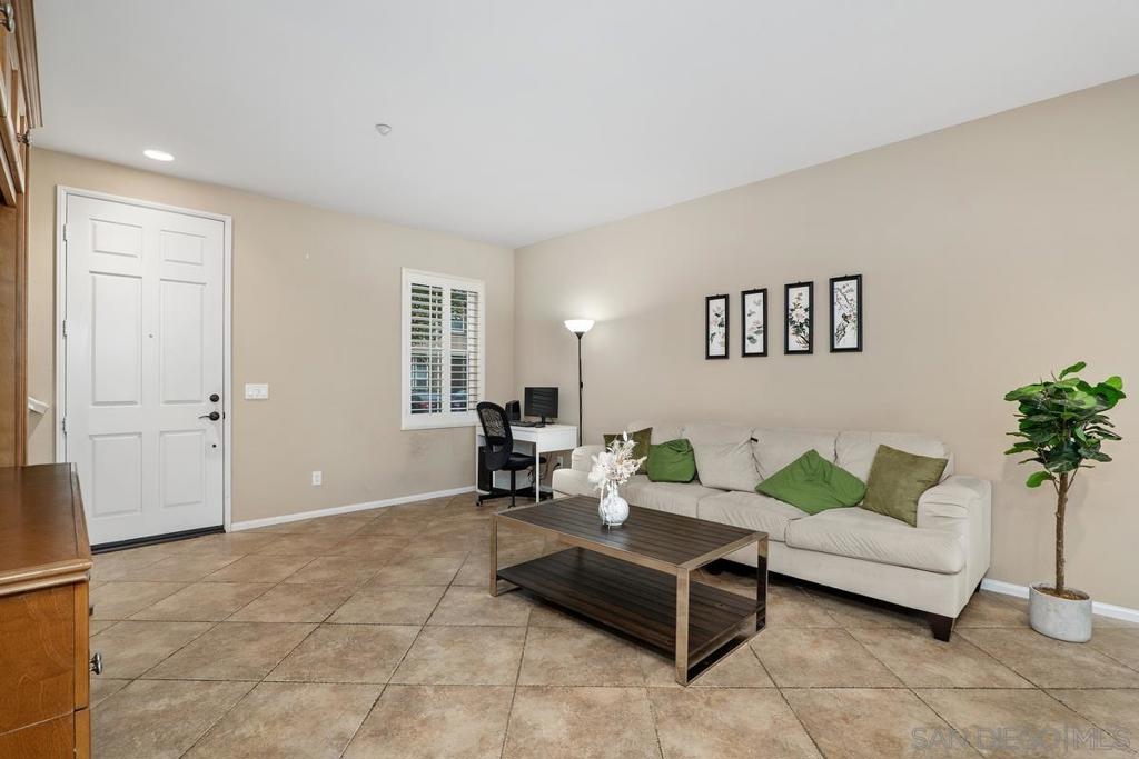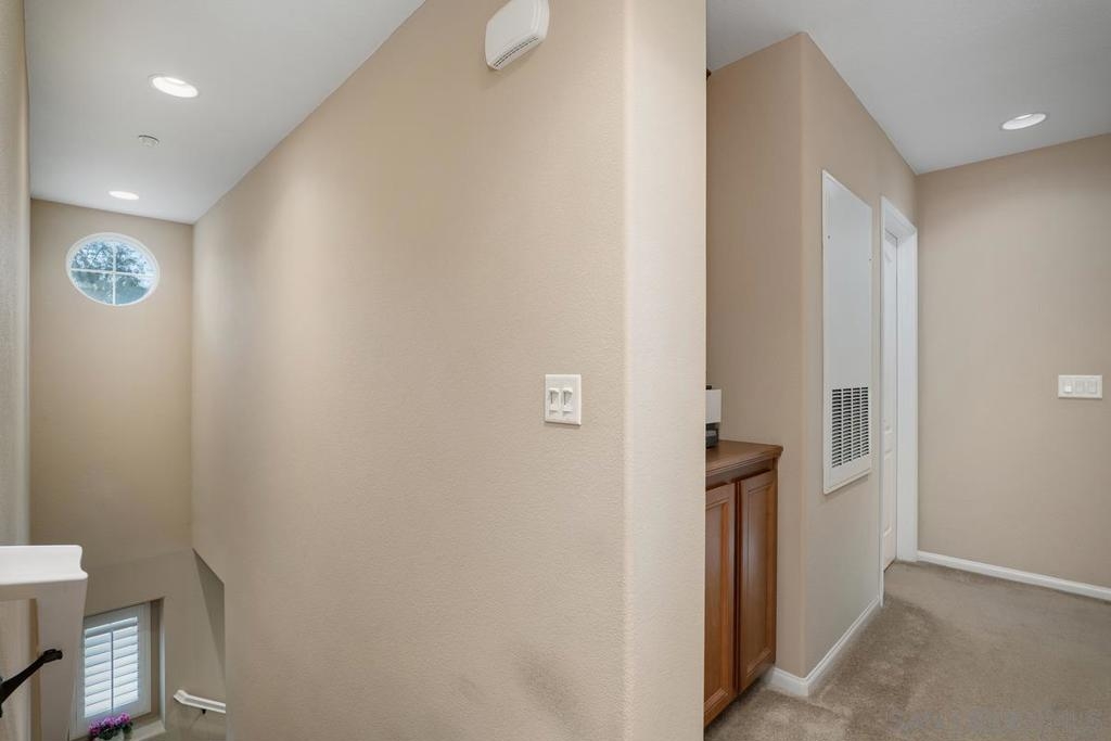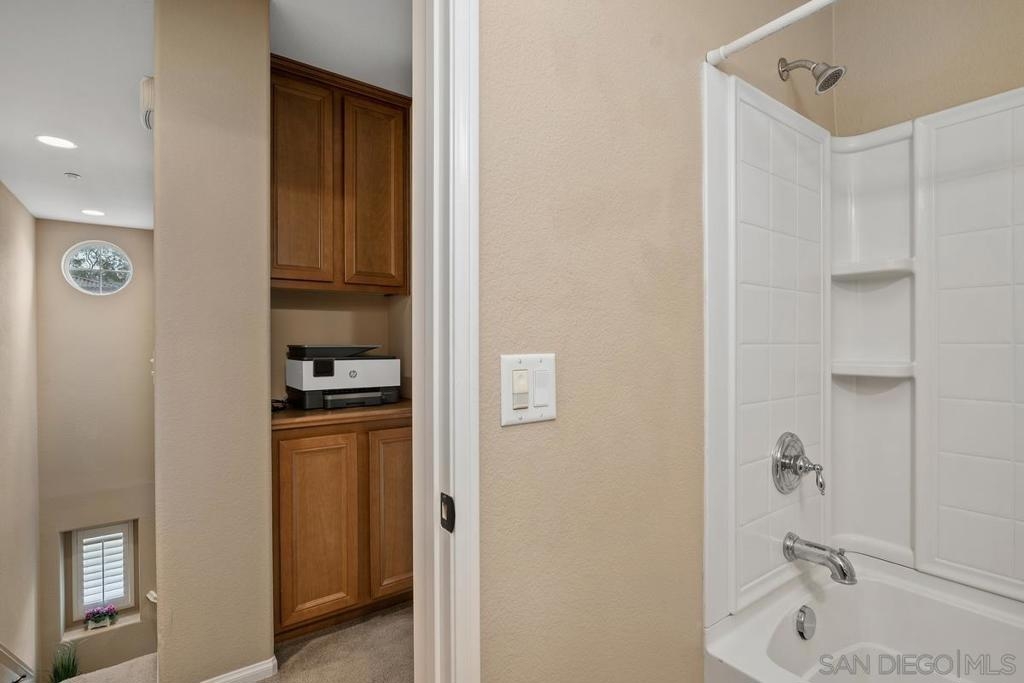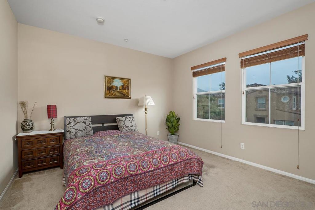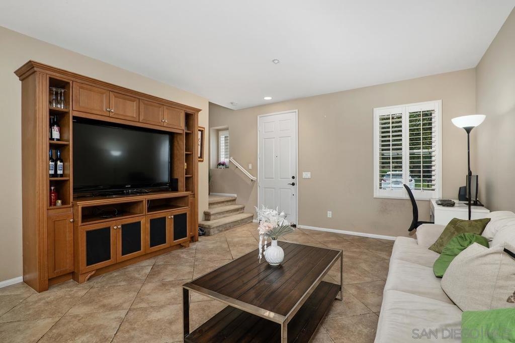 Rarely available 2 story 2/2.5 unit in Gianni complex. Sited in a private part of complex. Immaculate condition. Bright and Airy. Romantic lighting, custom wood built-in T.V. & entertainment piece in living room, gleaming granite counters in the kitchen, convenient upstairs laundry room (washer &dryer convey), contemporary ceiling fan/light fixtures,. HOA offers pool & spa, BBQs and maintains lush greenery throughout. Award winning Poway Unified schools. Within walking distance to all that makes 4S Ranch special - Patriot Park, Monterey Ridge Elem School, 4S Commons & greenbelt medians. Close to park/freeway/shopping. Your clients will fall in love.