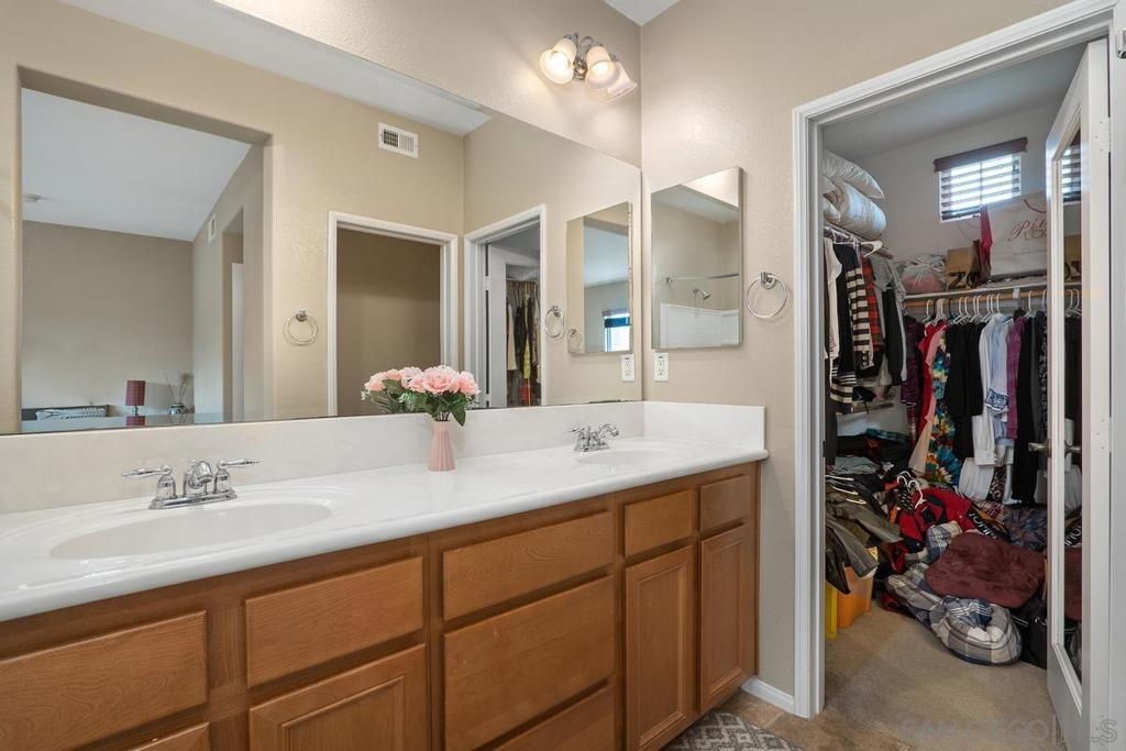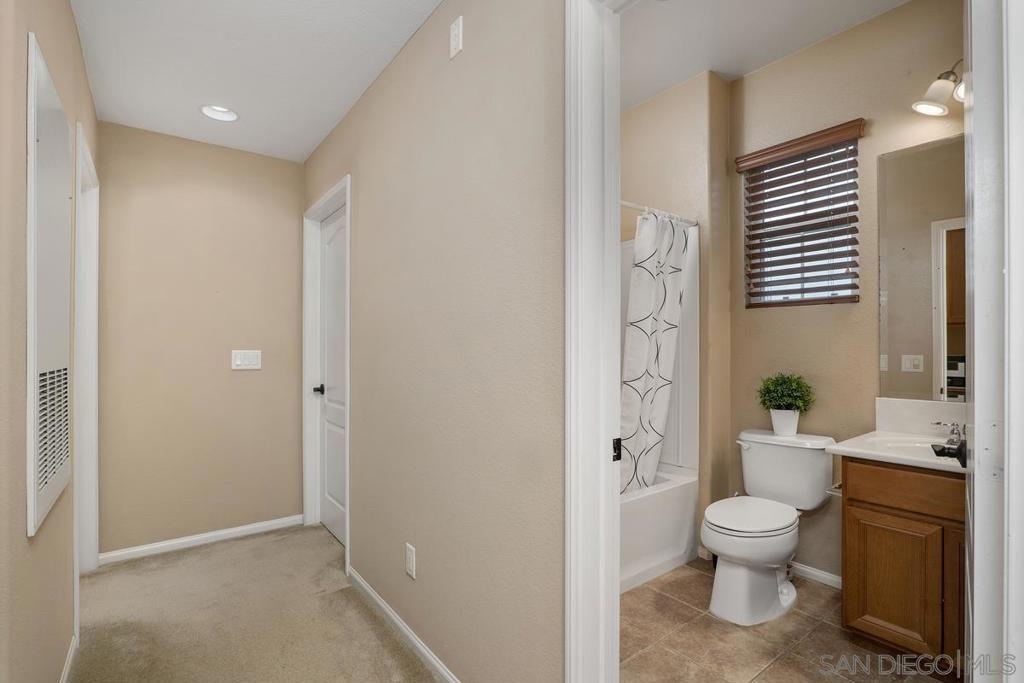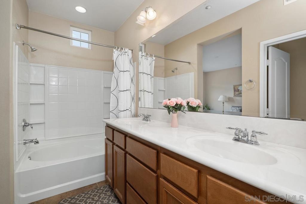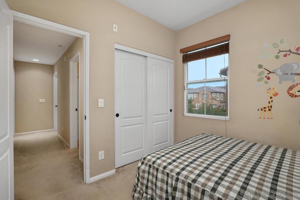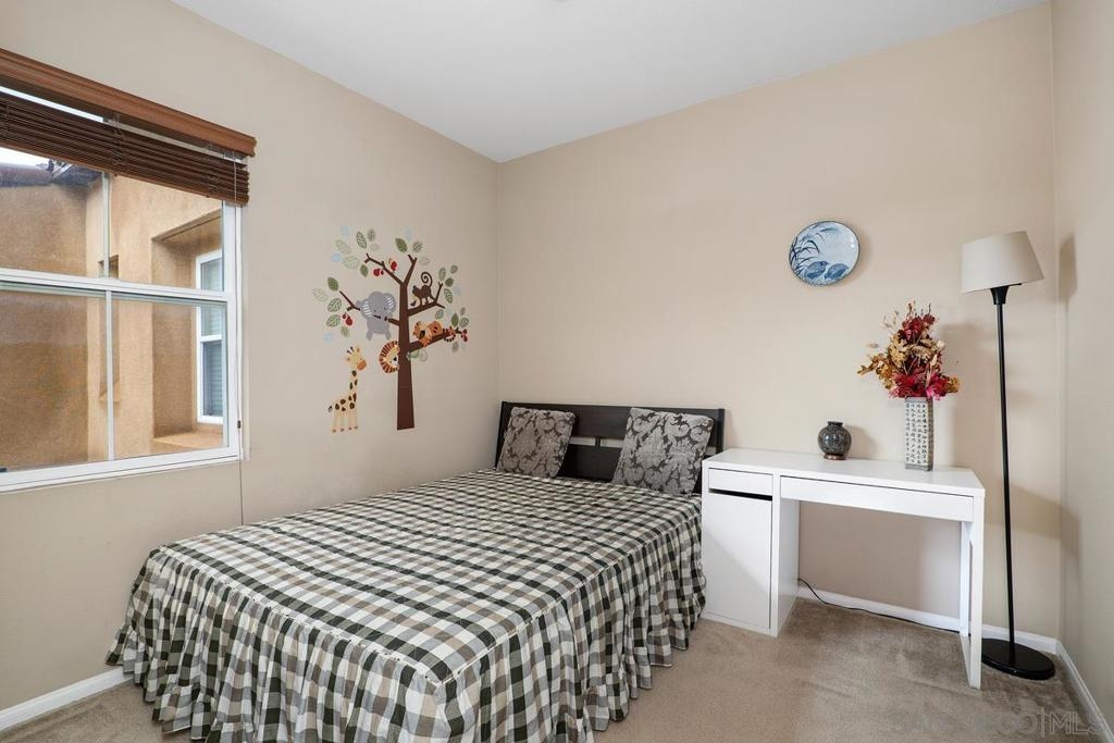 Rarely available 2 story 2/2.5 unit in Gianni complex. Sited in a private part of complex. Immaculate condition. Bright and Airy. Romantic lighting, custom wood built-in T.V. & entertainment piece in living room, gleaming granite counters in the kitchen, convenient upstairs laundry room (washer &dryer convey), contemporary ceiling fan/light fixtures,. HOA offers pool & spa, BBQs and maintains lush greenery throughout. Award winning Poway Unified schools. Within walking distance to all that makes 4S Ranch special - Patriot Park, Monterey Ridge Elem School, 4S Commons & greenbelt medians. Close to park/freeway/shopping. Your clients will fall in love.