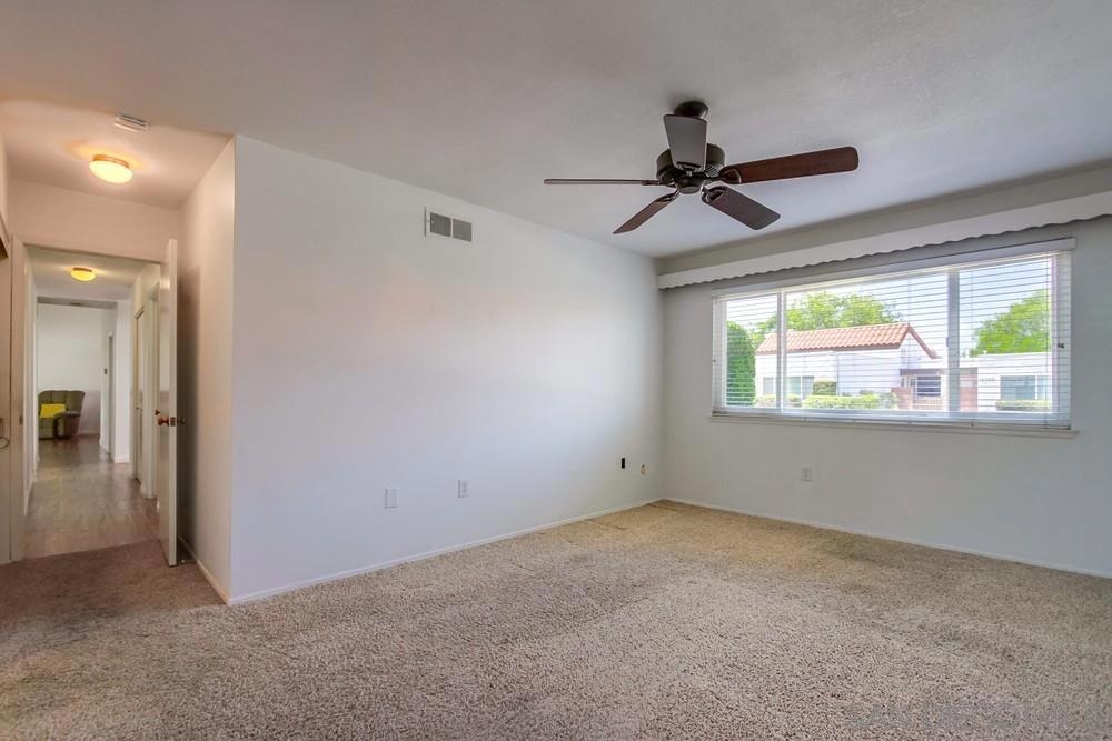 Back on market pending cancelation of current escrow. This home is located in the desirable Seven Oaks Community. A spacious single story, corner unit property has 2 bedrooms, 2 bathrooms, and a versatile den/office that can easily be transformed into a third bedroom. Home features an open and bright interior, highlighted by vaulted ceilings, dual paned vinyl windows and an in-unit laundry room. Private entrance and a large, covered patio with views of the lush green belt. Seven Oaks is tailored to the needs of active seniors aged 55 and over. Embrace the enriching lifestyle with a range of amenities, from the refreshing pool to the engaging group activities, meeting rooms, library, gym, and a future pickleball court in the works.