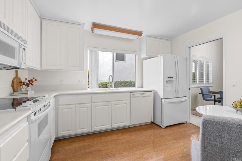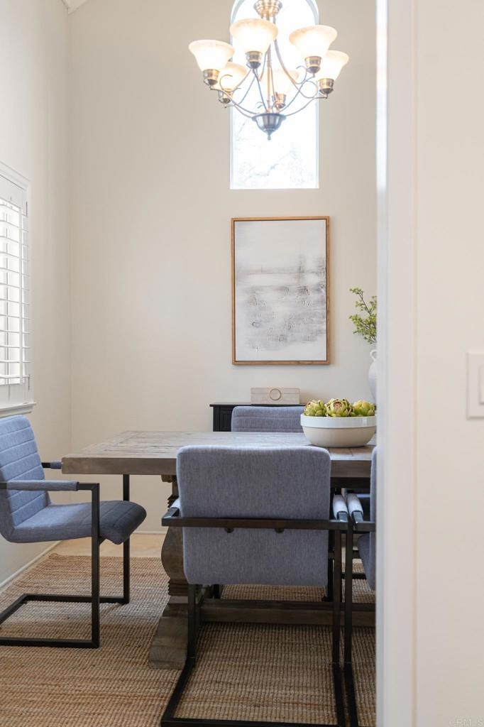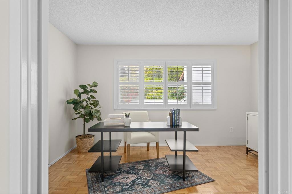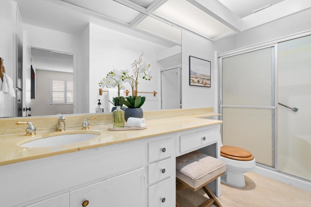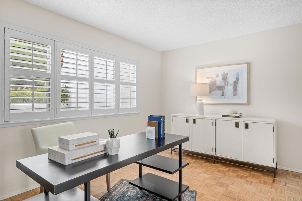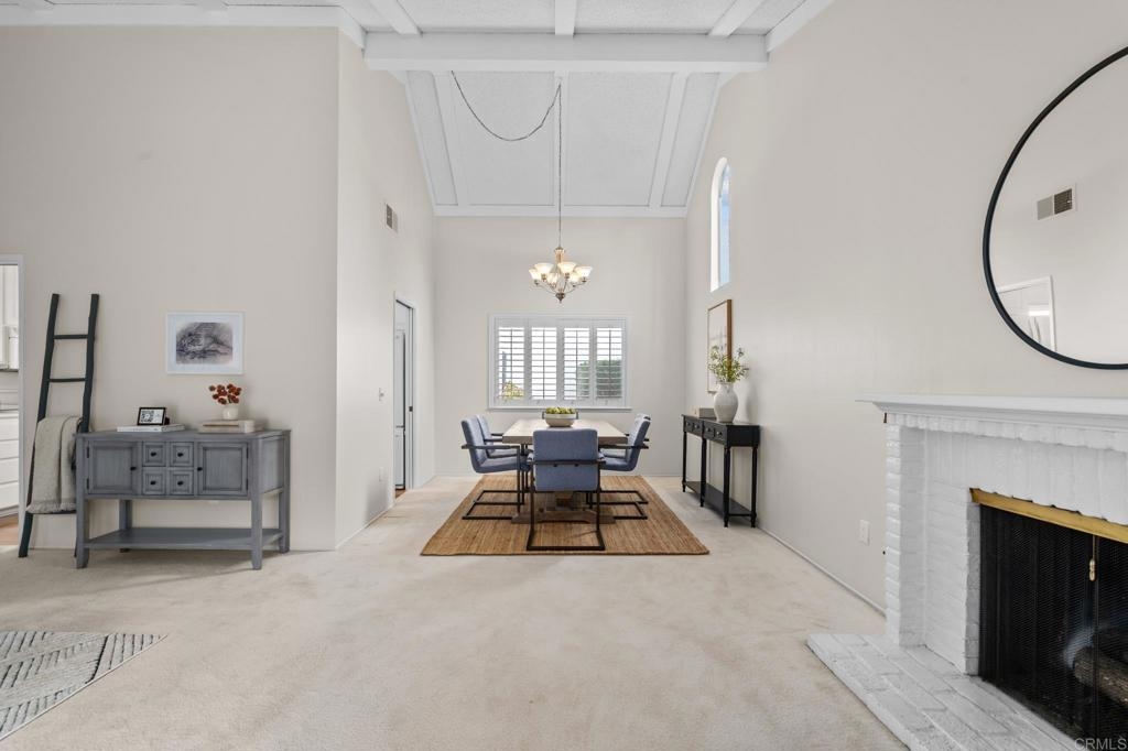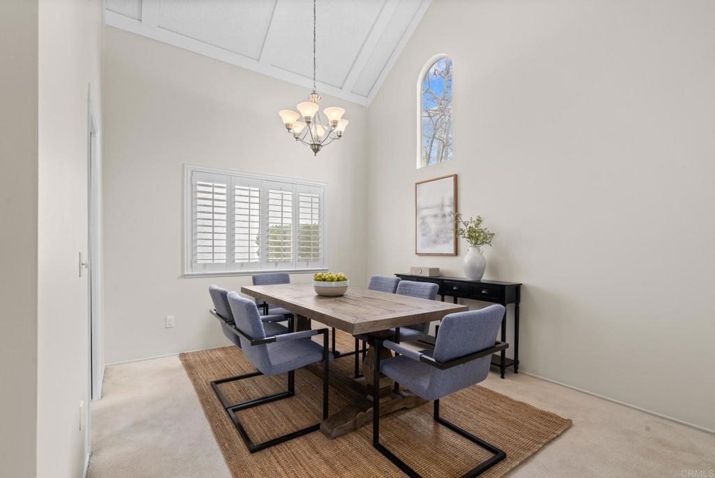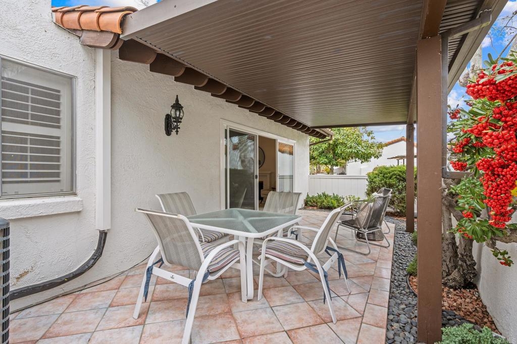 Your new home awaits in the 55+, Seven Oaks Community, of Rancho Bernardo. This home has been recently painted, upgraded by the HOA with a recent roof and fencing, newer HVAC system and various electrical updates. Upon entry you are welcomed by a foyer opening to an office/den with has louver doors and hard floors. This room has a beautiful view of the back patio and the community's common grounds, which are home to birds and local wildlife. Down the hall you will find two additional bedrooms and two full bathrooms, including linen storage, and a full-size laundry closet. Back to the main living area of the home boasts the spacious living room with cathedral ceilings, fire place, dining area, and the eat-in kitchen. This space opens with an extra wide slider door to the back patio. Most windows are equipped with beautiful shutters. Seven Oaks community has an extensive list of amenities to keep this community connected and active, including a pool, sports courts, and group activities/events. This location is also close to some of San Diego's best wineries, golf courses, shopping, medical offices, and more.