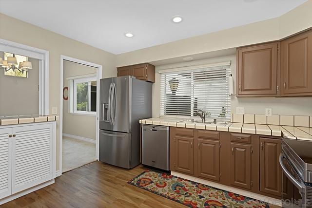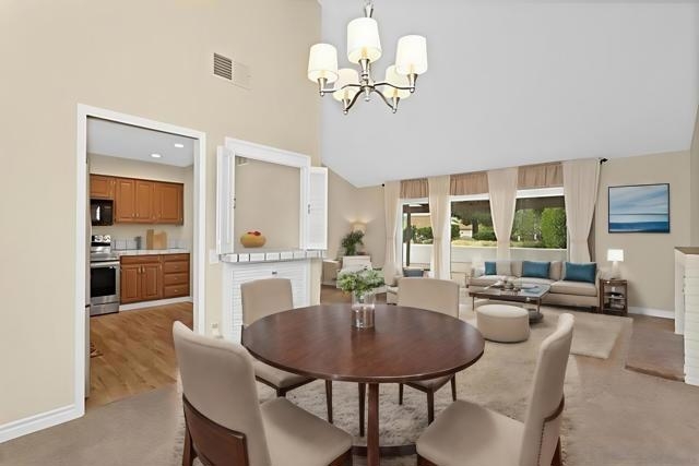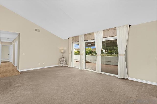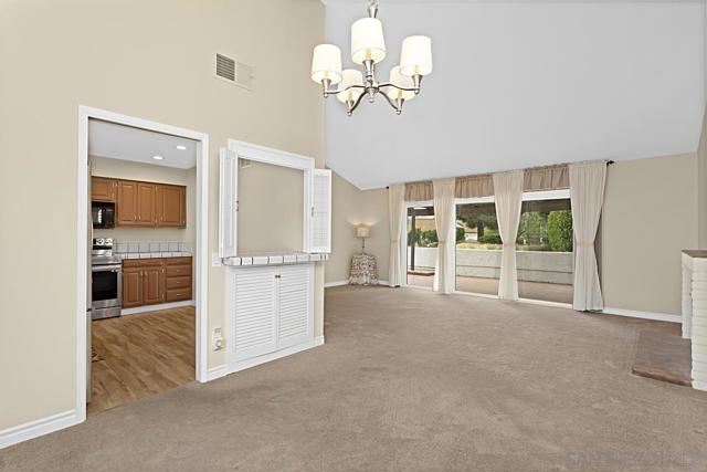 Gorgeous single level home with 2 bedroom, 2 full bathrooms, optional room/office, 2 private patios, one at the entrance and one large patio off of the living room overlooking a picturesque green belt. Property also features indoor laundry, central air/heat, walk-in shower, gas fireplace, assigned parking, storage, skylights, vaulted ceilings in the living and dining room and newer water heater, HVAC and electrical panel. This is a very special end unit in an excellent Rancho Bernardo location, situated in a quiet and tranquil setting, in the desirable 55+ community of Seven Oaks. Beautifully maintained unit with views from the living room and large patio looking out to trees and lush landscaping. Home is light and bright with a feeling of tranquility. The community club house has a pool, spa, library and game room. This is a very special property, offering a relaxing lifestyle.