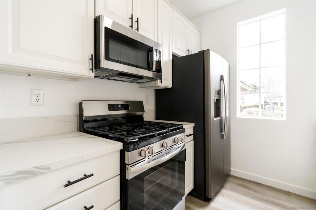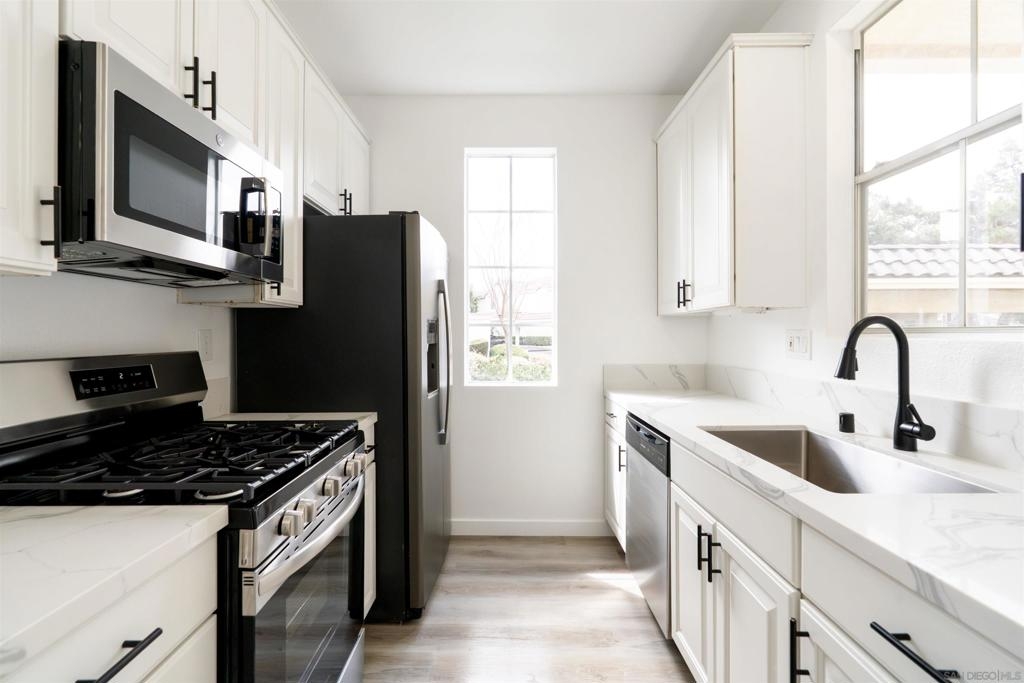 First floor 2 bedroom 2 bathroom condo in the Sabre Spring Hilltop community. The private corner unit offers a spacious and well-designed layout. Inside you will find a bright open living room and dining room accompanied with a cozy fireplace. The gallery kitchen offers natural light and recessed lighting to really brighten up your space. A patio to extend your living space with an extra storage space closet and washer/dryer hookups for added convenience of doing laundry at home. Both bedrooms are private and well appointed with the primary bedroom offering dual sinks for added comfort. Enjoy the community pools and spas, walk over to Sabre Springs Overlook Park, or enjoy the many hiking trails at Sabre Springs Open Space. Easy access to shopping centers and the I-15.