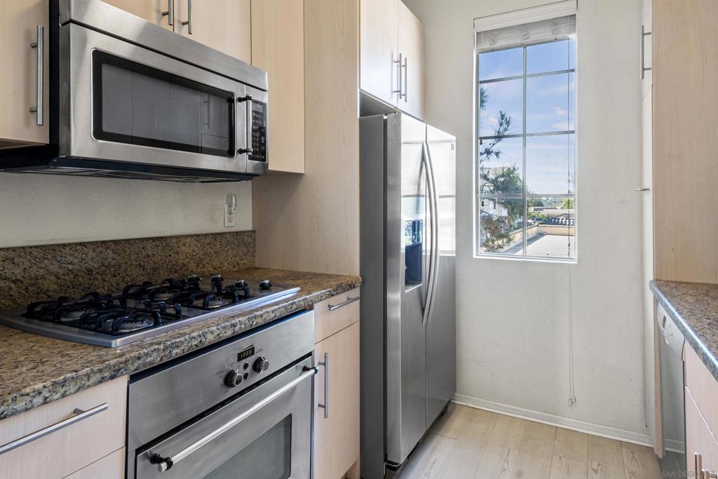 Discover this top-floor, corner-unit 1-bedroom, 1-bathroom condo in the desirable Sabre Springs community, offering extra privacy, abundant natural light, and neighborhood views. The open-concept living area features a cozy fireplace, and access to a private balcony. The spacious bedroom includes ample closet space, and the unit has a dedicated laundry hookup for added convenience. Located in the highly rated Poway Unified School District, this home is minutes from shopping, dining, and major freeways, offering both comfort and accessibility. The community features a pool, spa, fitness center, EV charging stations, greenbelt areas, and dog-friendly pathways. VA approved