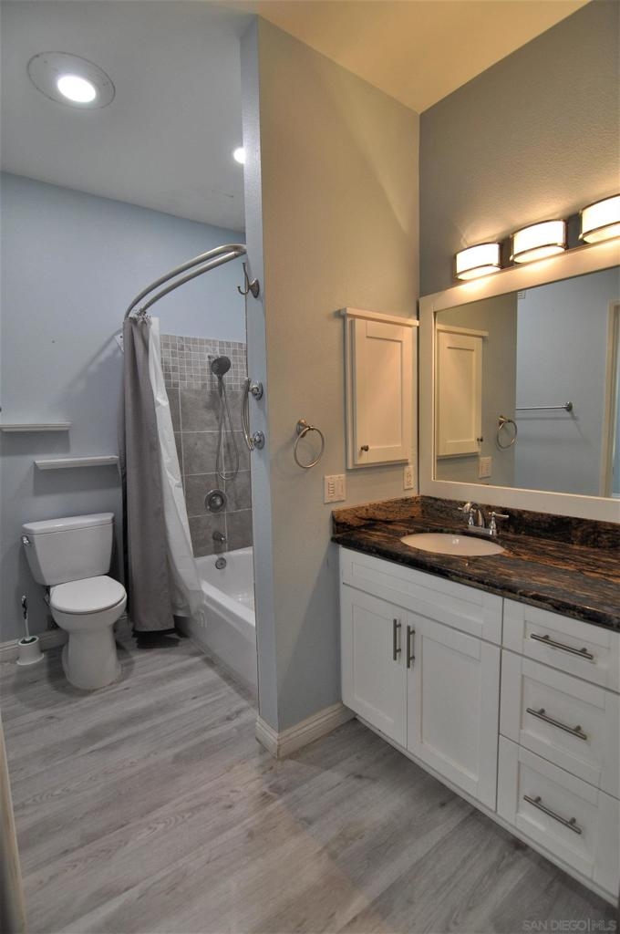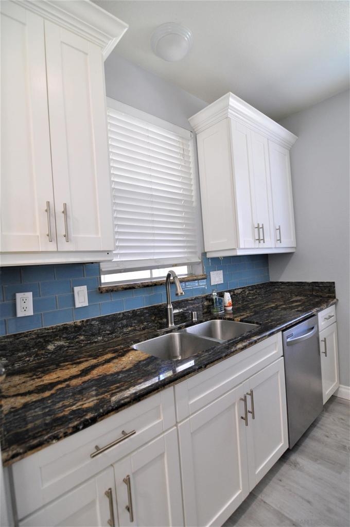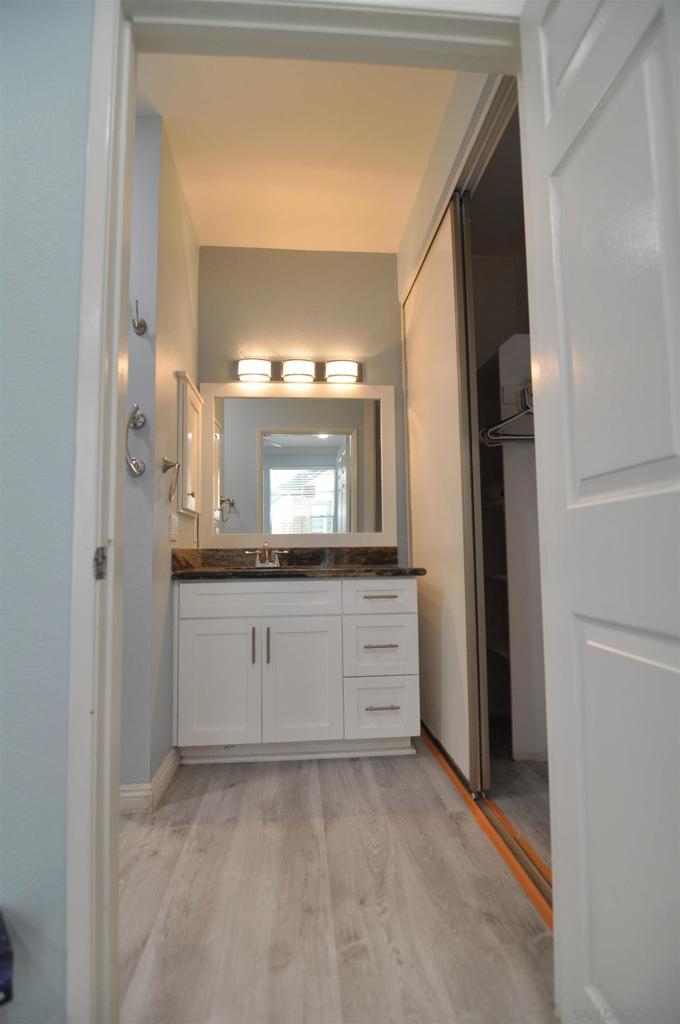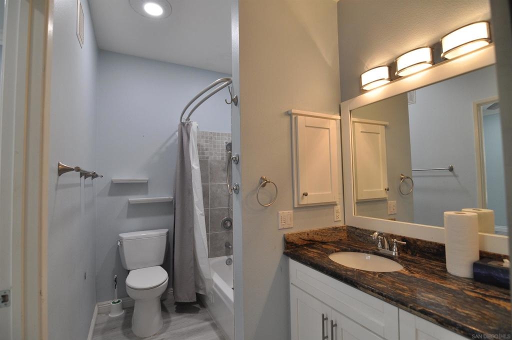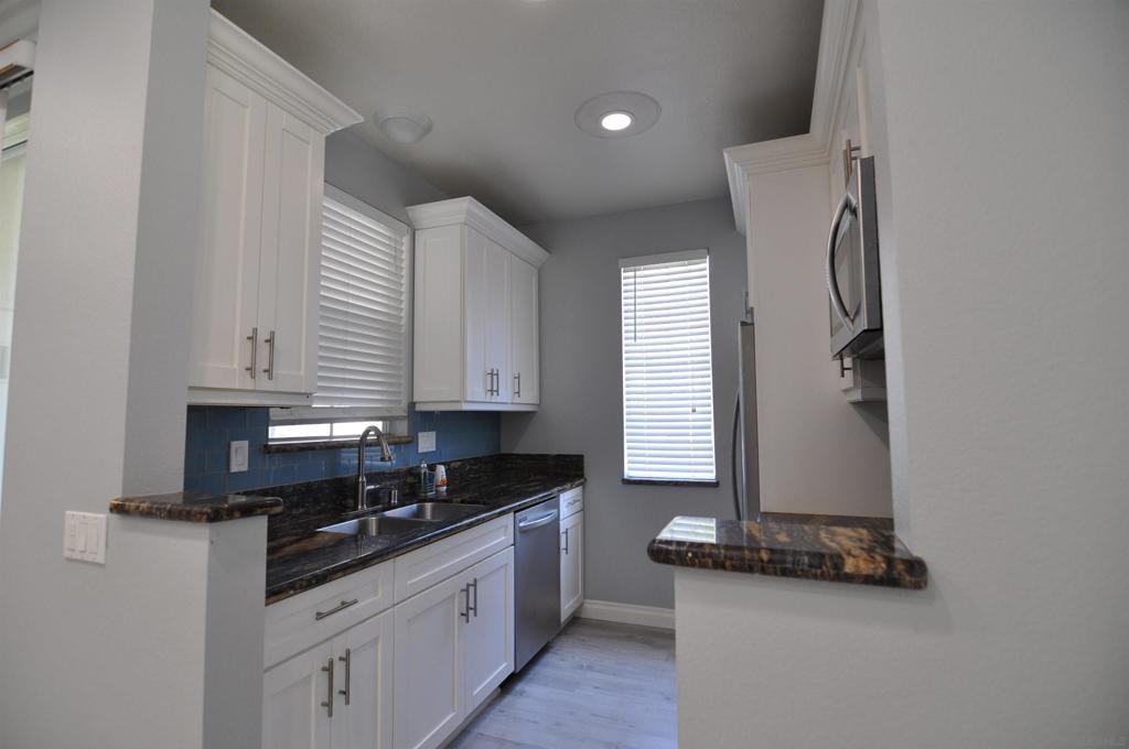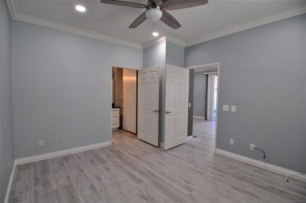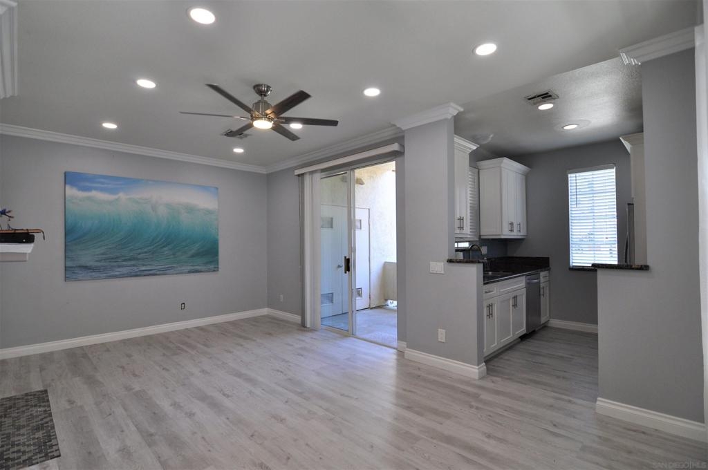 Rarely available first-floor one-bedroom, one-bath condo nestled in the Hilltop community of the coveted Sabre Springs neighborhood. Centrally located, this modern corner unit has a spacious bright living area. Luxury vinyl plank flooring and crown molding throughout. Stylish kitchen with glass tile backsplash, Junipero Serra granite, shaker white cabinets, complemented with stainless appliances. Bedroom retreat, custom-made bathroom with spacious closet area. Private patio with a laundry closet. Contemporary ceiling fan and abundant can light throughout the unit. One assigned carport parking space not far from the unit and plenty of guests parking. This complex offers resort-style amenities with a pool and gym just a few steps from this unit. Close to businesses, restaurants, and shopping. You don't want to miss this gem! Contemporary ceiling fan and abundant can lights throughout the unit. One assigned carport parking space not far from the unit and plenty of guests parking. This complex offers resort-style amenities with a pool and gym a few steps from this unit. Close to businesses, restaurants and shopping. All measurements are approximate. Buyers and Buyers' Broker/Agent to verify measurements and complete thorough inspections and investigations prior to Close of Escrow to satisfy themselves with the current condition of the property. Buyers to verify and approve all data, reports, records, inspections, permits, MLS, HOA (if any), if applicable and all information pertaining to the property prior to removal of contingencies. All contracts/offers are subject to seller approval and any offers or counteroffers by seller are not binding unless the entire agreement is ratified by all parties.