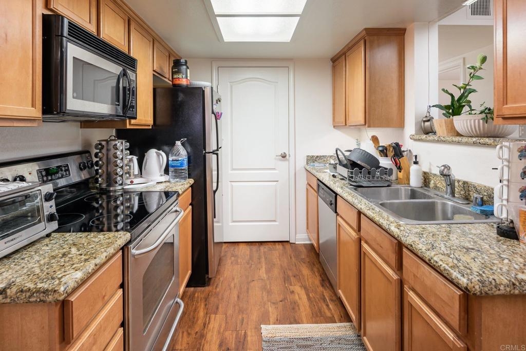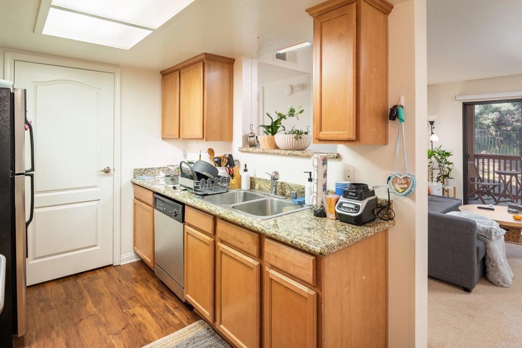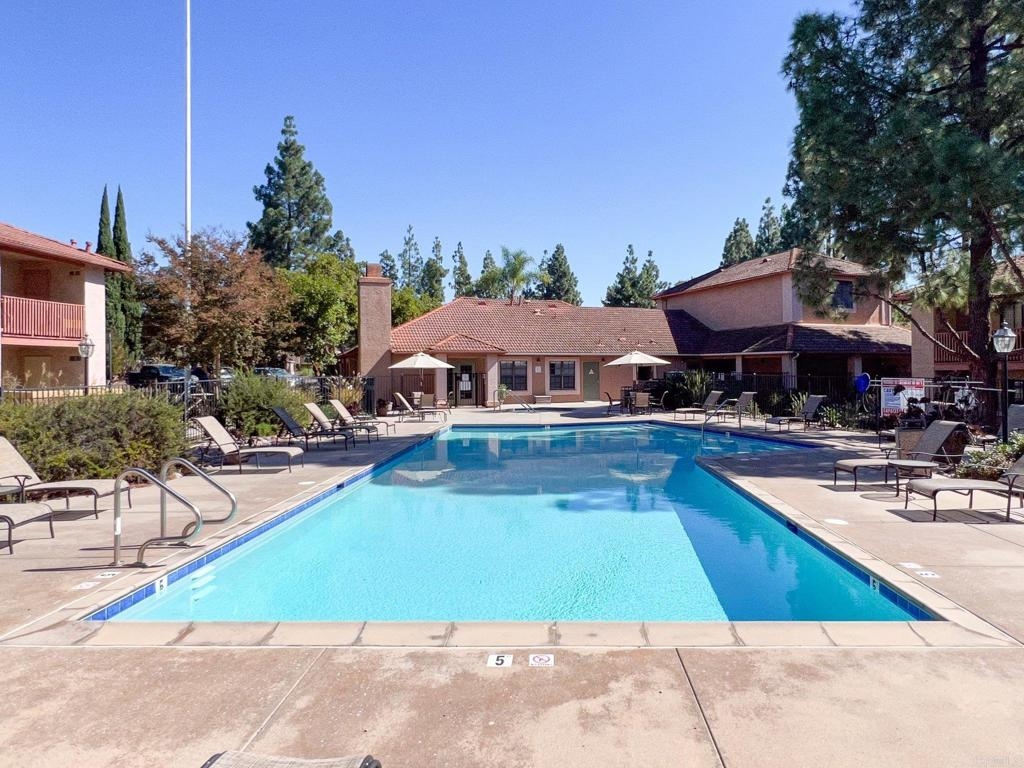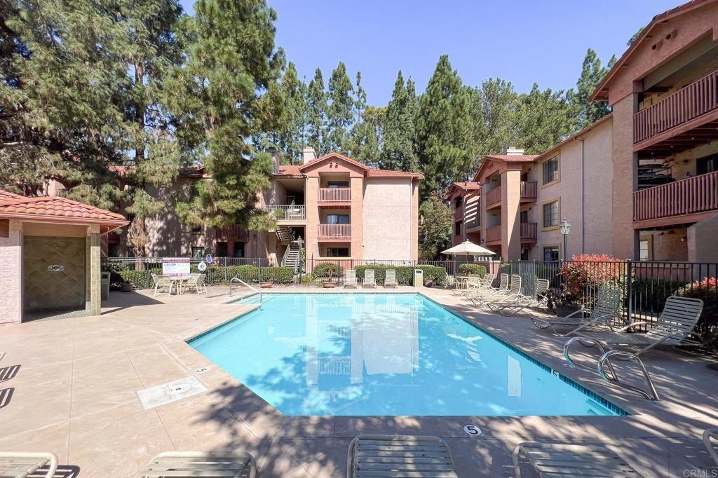 Chic designer 1 bedroom condo with large private deck nestled among mature trees available within the desirable iL Palio community in Carmel Mountain Ranch. The kitchen is complete with granite countertops, newer appliances and custom cabinets. Property features a full size washer and dryer within its own closet. iL Palio offers sparkling pools, spa, tennis & basketball courts, sauna, clubhouse, BBQs and exercise room. Situated walking distance to area restaurants, shops and stores. This property is zoned within award winning Poway school district and provides easy freeway access.
