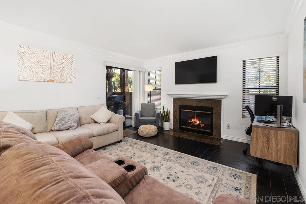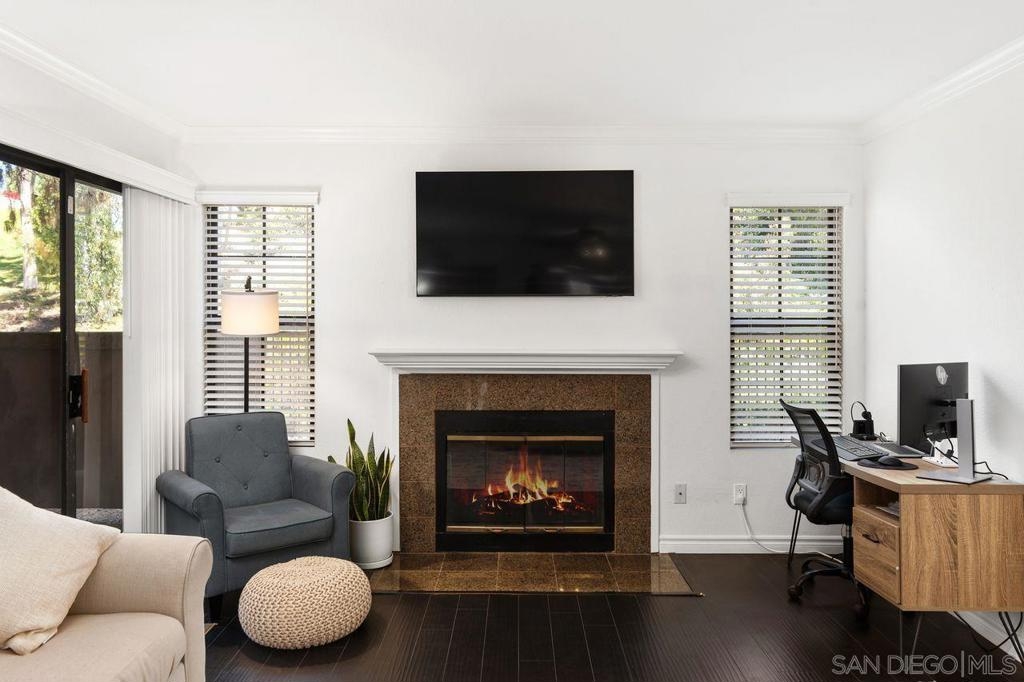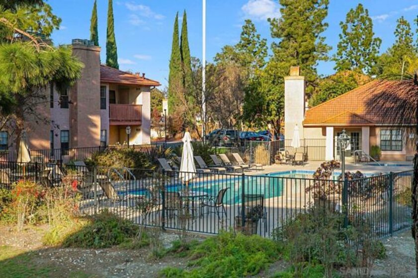 Nestled in the prestigious Il Palio community of Rancho Bernardo, this beautiful first level corner unit offers the perfect blend of comfort and convenience. Enjoy an open-concept layout with a cozy fireplace, and a private balcony with stunning views. The kitchen boasts granite countertops and stainless steel appliances. The primary bedroom features a walk-in closet, and an en-suite bathroom, and sliding doors to the balcony. Additional highlights include a versatile second bedroom, in-unit laundry, and two assigned parking spaces. Residents enjoy resort-style amenities including a pool, spa, fitness center, tennis, and basketball court. Conveniently located near shopping, dining, parks, golf courses, and top-rated schools. Experience Southern California living at its finest!