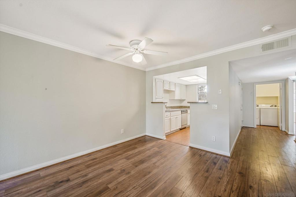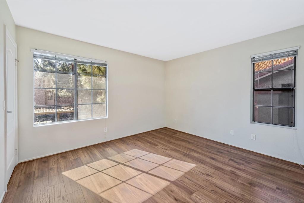 Carmel Mountain Ranch dual Master 2 beds/2 full bath Condo upper end unit over looking beautiful green belt view from the balcony, 1,031 Square feet of spacious living space. Each bedroom has a spacious walk-in closet, Laminated wood floor through out, SS appliances, In unit Laundry Room with W/D included, 2 dedicated carports. Club House access includes Tennis Court, Swimming Pool, spa and Fitness Center. Walk to RB middle/high schools and easy access to freeway and shopping.
