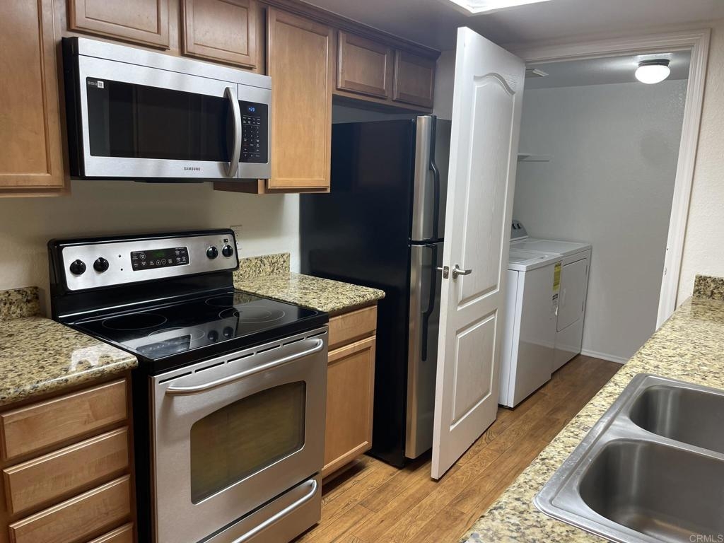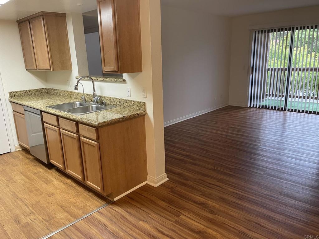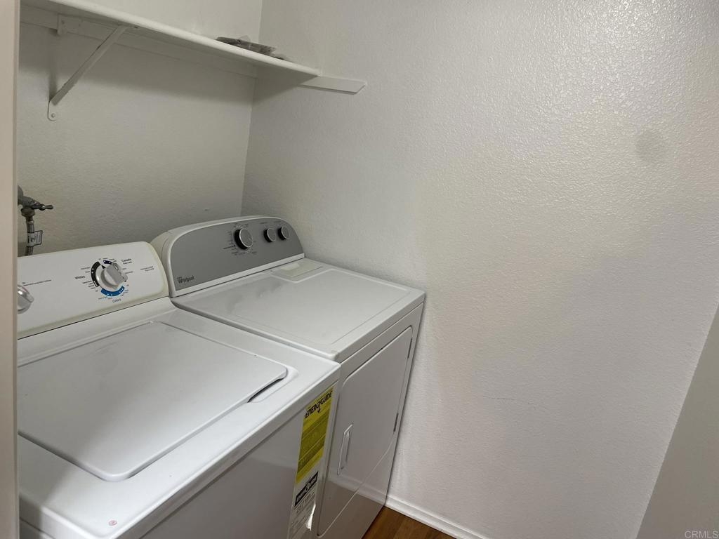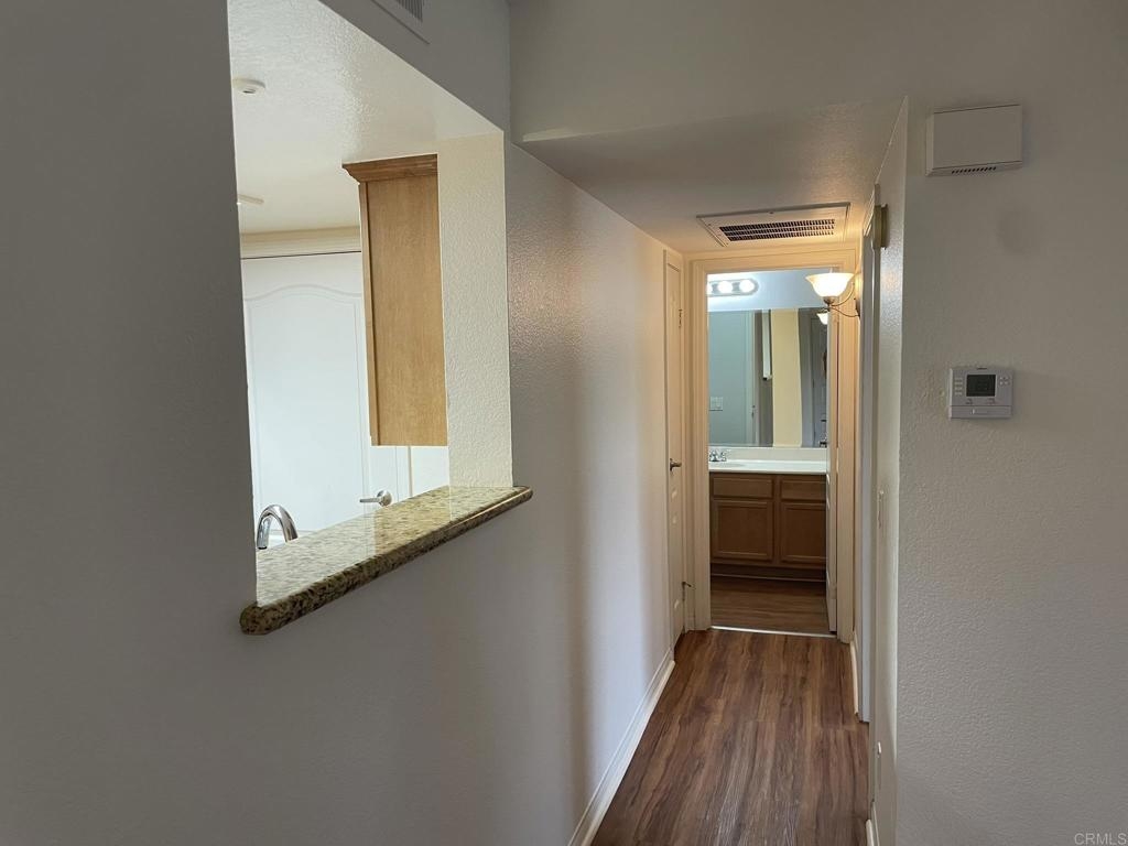 Welcome to Il Palio in Rancho Bernardo, clean, bright, upgraded one bedroom unit, waterproof scratch resistant flooring throughout, custom cabinets, stainless steel appliances (new LG dishwasher, microwave, faucet and sink disposal) as well as granite countertops, water filtration system, full size washer and dryer within its own closet. This unit comes with an assigned covered parking space and reserved parking for guests. The complex offers sparkling pools, spa, tennis and basketball courts, sauna, BBQs, fitness room. clubhouse, and conveniently located next to Scripps Clinic, walking distance to parks, major groceries stores, shops, restaurants, and award-winning Poway School District elementary and high schools. Costco and major mall are just one mile drive. HOA fees include water service and trash pickup.