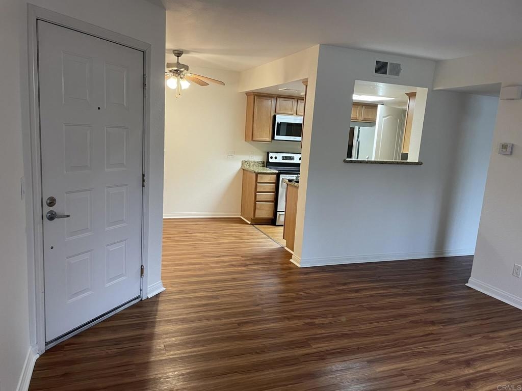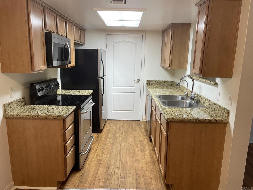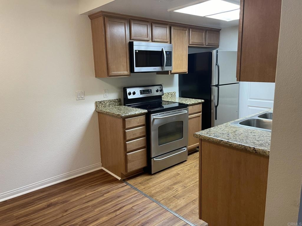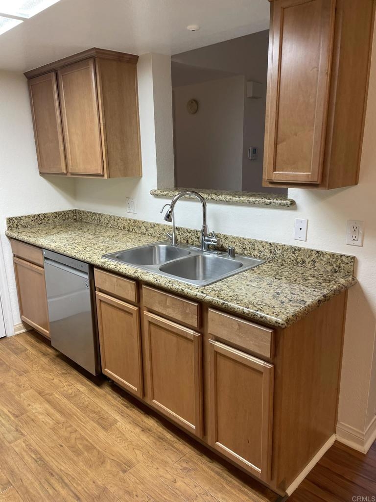 Welcome to Il Palio in Rancho Bernardo, clean, bright, upgraded one bedroom unit, waterproof scratch resistant flooring throughout, custom cabinets, stainless steel appliances (new LG dishwasher, microwave, faucet and sink disposal) as well as granite countertops, water filtration system, full size washer and dryer within its own closet. This unit comes with an assigned covered parking space and reserved parking for guests. The complex offers sparkling pools, spa, tennis and basketball courts, sauna, BBQs, fitness room. clubhouse, and conveniently located next to Scripps Clinic, walking distance to parks, major groceries stores, shops, restaurants, and award-winning Poway School District elementary and high schools. Costco and major mall are just one mile drive. HOA fees include water service and trash pickup.