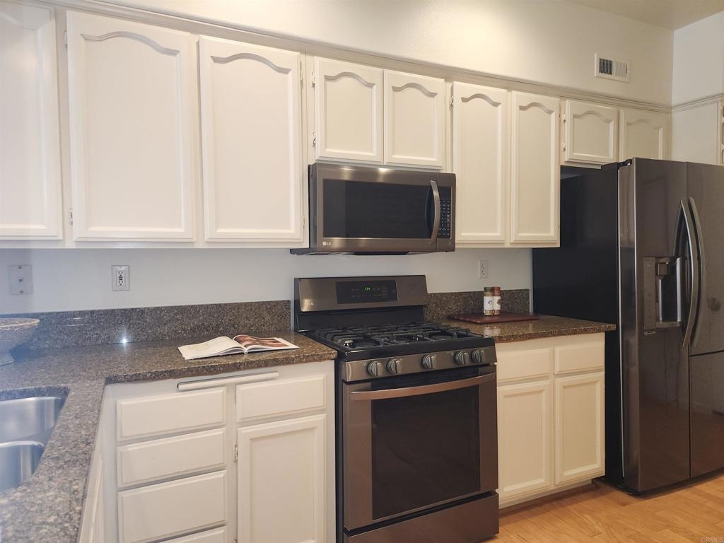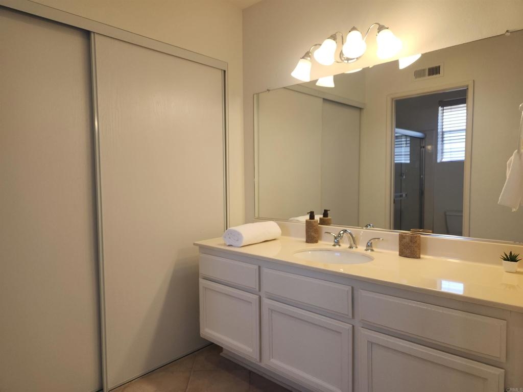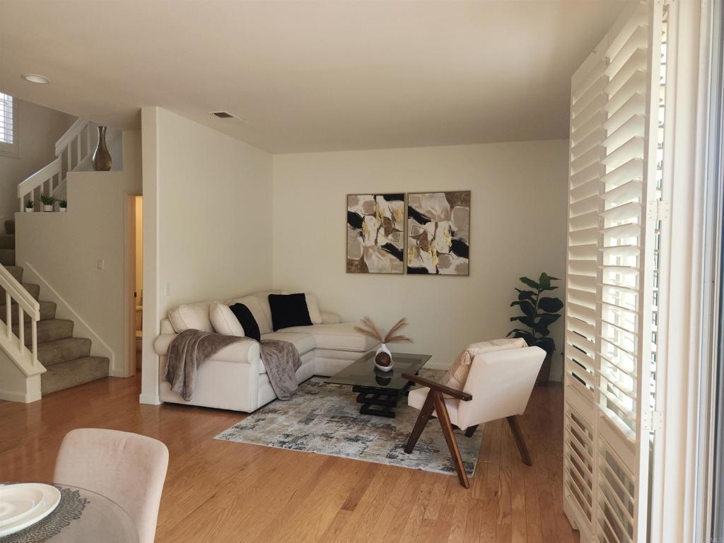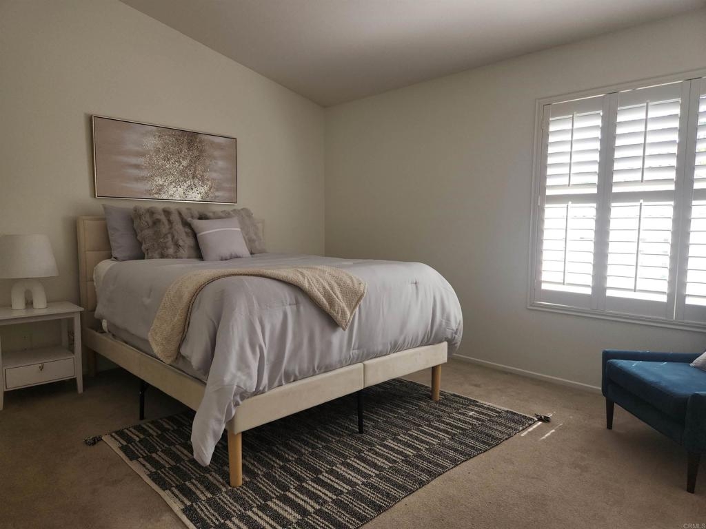 Well maintained 2 bedroom, 2.5 bath townhome situated perfectly! Nicely kept complex with pools, spas, walking paths, open spaces and even walking distance to trails along Penasquitos Creek. Laminate flooring downstairs, carpeted stairs and bedrooms. Convenient floorplan features two large Primary Suites, Plantation Shutters, an upstairs laundry closet (washer & dryer included), Cathedral ceilings, private backyard patio, 2 car attached garage - more! Community pool and spa are close enough for a 2 minute walk, far enough any gatherings there will not disturb you at home. The complex has quite a bit of unassigned parking in addition to your own 2 car garage. Hard to beat your own private paradise minutes from Mira Mesa, Poway, all the restaurants/shopping options along Carmel Mountain Road & Rancho Carmel Drive. Peaceful setting just off Poway Road, minutes from I-15, and a short drive to get to the 56 freeway for points West... Welcome!