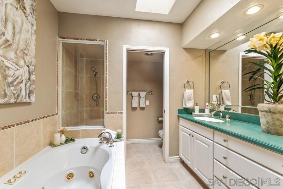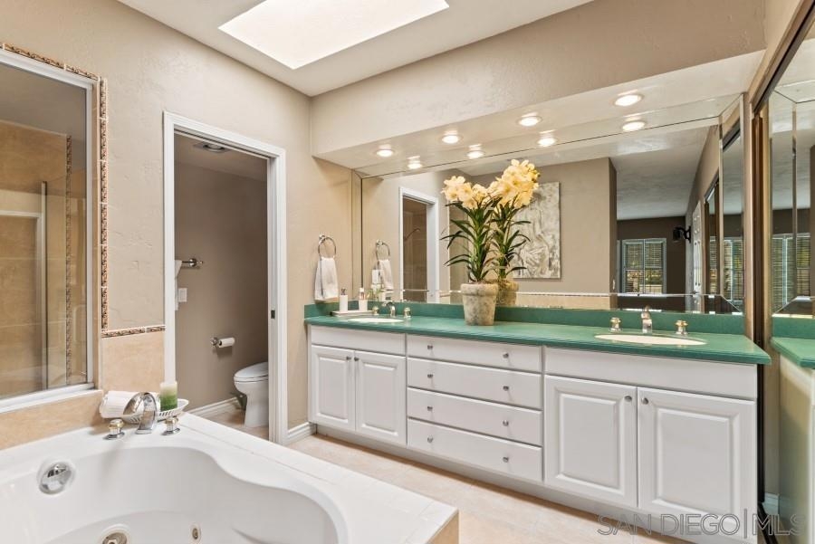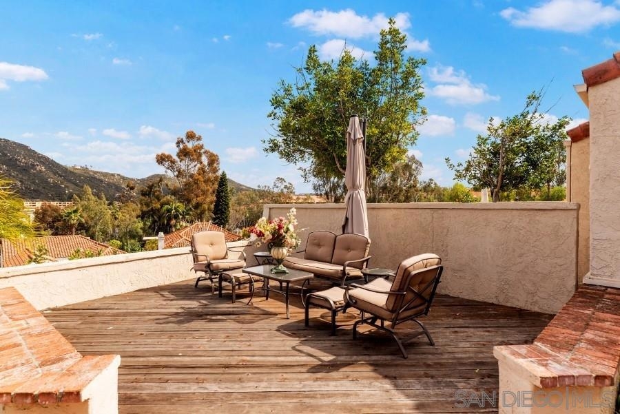 VR $599,000-649,900. VIEWS, VIEWS, VIEWS. Beautiful bright single story town home tucked away in a corner of the complex. Sit down views from breakfast nook, dining room and master bedroom. large private back yard with panoramic views. This 2 bedroom 2 bath with with soaring ceiling home. Tile throughout the living area and wood like in bedrooms. Skylight in the master bathroom for bright natural lighting along with a jetted tub. Plenty of open parking just outside your door. Crown molding throughout. counter in kitchen and master bath. Mirror closet doors. Washer/dryer and fridge conveys. Poway Unified school district. Close to all! Equipment: Dryer,Garage Door Opener, Range/Oven, Washer Other Fees: 82 Sewer: Sewer Connected Topography: LL