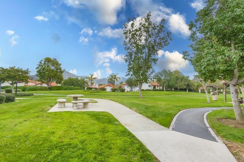 Nestled in the desirable Bernardo Heights area, this Las Floras home features a large and private outdoor space & a light-filled floor plan. A quaint courtyard entry welcomes you into this single-level home. Inside, each living space boasts charming touches including a vaulted ceilings, a cozy fireplace in the living room, a breakfast nook in the kitchen with built-in seating, custom tile showers in each bathroom, a built-in bookcase & window seat in the secondary bedroom. More functional features include central A/C, private laundry, ample storage including a kitchen pantry, and an attached 1-car garage. Enjoy a peaceful and private neighborhood feel with no neighbors above, below or directly behind! HOA dues include access to fantastic Community Association of Bernardo Heights amenities including a pool, hot tub, fitness center, sport courts (tennis, pickleball, basketball), clubhouse, private park & more.