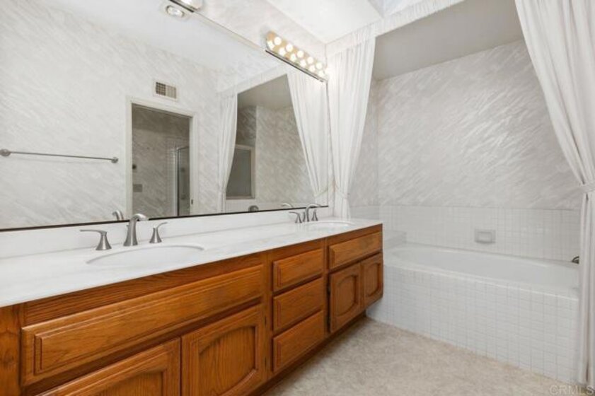Welcome to this beautiful, light-filled two-story townhome in the Las Floras community of Bernardo Heights. This rare model feels like a single-family home, offering a spacious open floor plan with vaulted beamed ceilings, abundant natural light, and a cozy gas fireplace in the living room. The kitchen features a charming breakfast nook that overlooks the private front courtyard. The home includes two primary suites, one upstairs and one downstairs, plus an optional third bedroom or office on the first floor along with a half bath and laundry closet. An additional room upstairs provides extra storage space. Located on a private, quiet cul-de-sac with ample guest parking, this home offers both a front courtyard and a rear patio for outdoor relaxation and entertaining. The attached two-car garage provides direct entry to the courtyard. Enjoy a low-maintenance lifestyle with HOA coverage that includes water, trash, roof, fencing, basic cable TV, and common area maintenance. As a Las Floras resident, you’ll have exclusive access to the Bernardo Heights Community Center, featuring two pools, a spa, tennis courts, a fitness room, billiards, newly added pickleball and basketball courts, and elegant lounge areas—all part of the vibrant country club lifestyle this community offers. Conveniently located just a short walk to Lucido Park, Bernardo Heights Middle School, and Rancho Bernardo High School in the highly acclaimed Poway Unified School District.