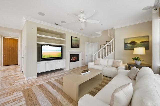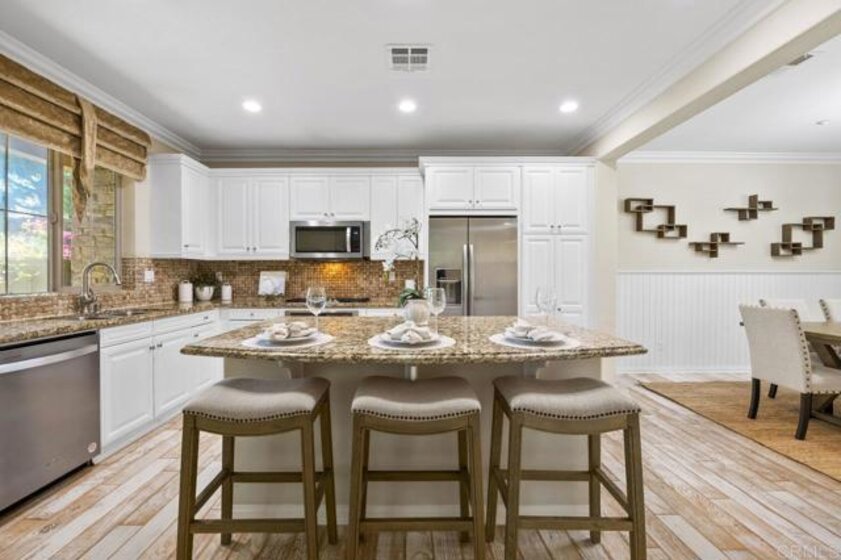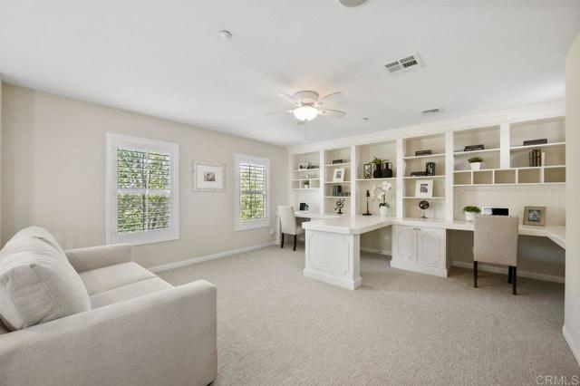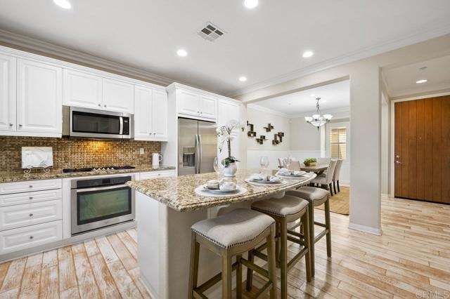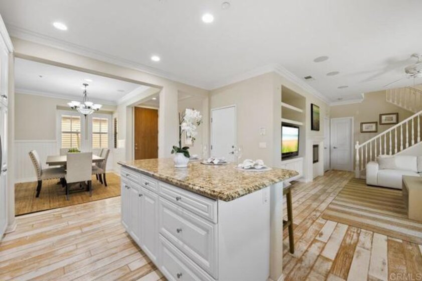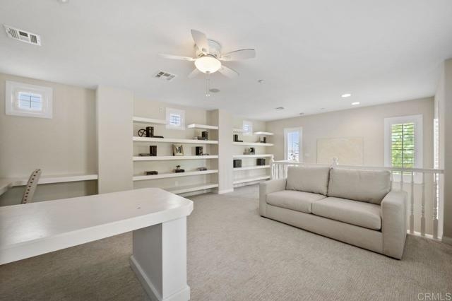Located in the heart of Del Sur, this beautiful Mandolin home offers 3 bedrooms, 2.5 baths, and a spacious third-floor loft—ideal for a home office, playroom, or creative space. The light-filled interior features wood flooring throughout the first level, along with a chef’s kitchen complete with white cabinetry, granite countertops, and a tile backsplash. The adjacent dining area flows seamlessly into the family room, where a cozy fireplace, built-in shelving, and backyard views create an inviting setting. Upstairs, the primary suite includes a generously sized en suite with white cabinetry, dual sinks, and a walk-in shower. Two additional bedrooms share a well-appointed hall bath with dual sinks and a shower/tub combo. The third-floor loft provides a versatile, private space that can easily adapt to your needs. Additional highlights include brand-new carpet throughout, a dedicated laundry room with extra storage, a serene backyard patio with no neighbors directly behind, and an attached two-car garage. Don’t miss your chance to own in Del Sur—the ultimate choice for family-friendly living. Enjoy award-winning PUSD schools, 14 parks and 11 pools exclusively for residents, miles of hiking trails, community events year-round, and convenient shopping. This location is within easy walking distance to the Del Sur town center for Sprouts Farmers Market, Target, Starbucks, restaurants, fitness clubs, and more.