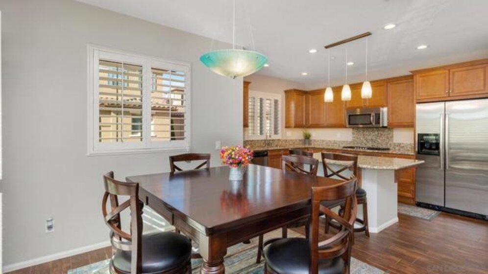 Highly upgraded ‘plan-3’ unit in desirable ‘Mandolin' of Del Sur! Located walking distance to Del Sur Elementary School & directly behind Spreckles Park! This open, elevated floor-plan allows for tons of natural light to flow throughout the home all day long! High-end kitchen upgrades include hardwood cabinetry & granite slab countertops, all stainless steel appliances, large ‘island’ w/ breakfast bar & stools, full-size pantry & more; vinyl tile flooring w/ wood decor upgrades, Low-E windows & slider w/ beautiful plantation shutters throughout, recessed lighting up & down, ceiling fans, remote gas fireplace, tankless water heater & much more. An open floor-plan throughout the entry level gives the main living areas a very modern & spacious feel & separate downstairs family room allows for privacy & space for a ‘work-from' home office! Other convenient features include full-size laundry room & epoxy floor covering w/ overhead storage racks in the direct-access garage. Enjoy the spacious & private flagstone decorated patio, fully enclosed & featuring mature landscape w/ fruit trees. Gorgeous stone decor accents the exterior surrounding the home & this unit sits nearby the community guest & reserved handicapped parking. Located in the heart of the master-planned community of Del Sur, you’ll enjoy resort-style living year round nearby all Del Sur has to offer including several community parks, Pool/ Spa & recreation center, award-winning Poway schools for all ages, nearby many popular hiking & biking trails & all Del Sur/ 4S Ranch shopping. Home is truly a ‘must-see!” Complex Features: ,,,,,, Equipment: Fire Sprinklers, Range/Oven Sewer: Sewer Connected Topography: LL