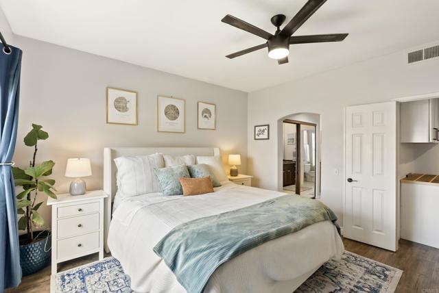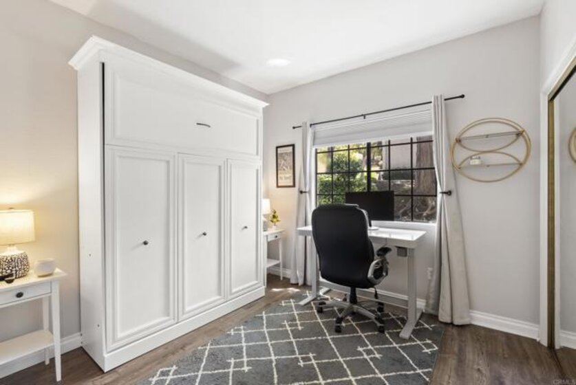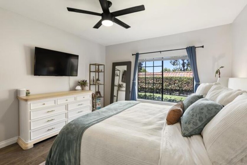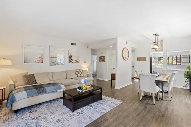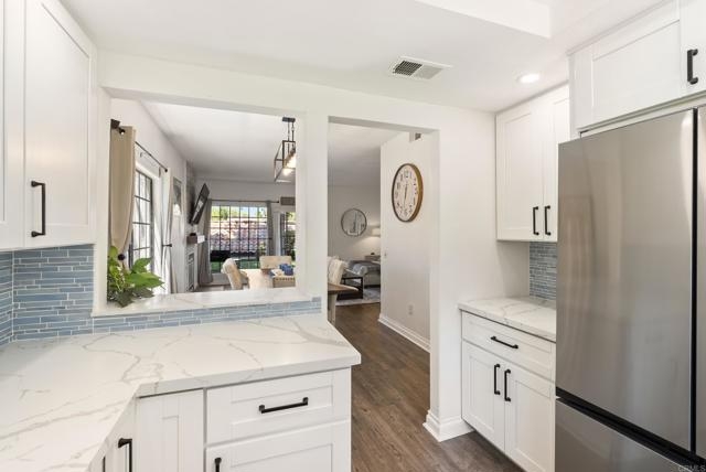 Dreamy single-story condo located in the highly sought-after Bernardo Heights community of Mira La Paz. A bright and spacious three-bedroom, two-bath end unit situated on the ground floor. Recent upgrades include a beautifully renovated kitchen featuring soft-close cabinets and quartz countertops. Seamless luxury vinyl plank flooring runs throughout the home, complemented by an upgraded gas fireplace, fresh paint, trim and baseboards, and designer finishes. The water heater was replaced in 2022. A detached two-car garage provides ample parking and storage. The HOA includes water, trash, cable, internet, and membership to the prestigious Bernardo Heights Clubhouse, which features two pools—including a 25-yard lap pool heated to 82 degrees—a spa, fitness center, playground, tennis courts, and pickleball courts. Sits within the award-winning Poway Unified School District.
