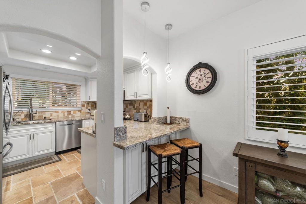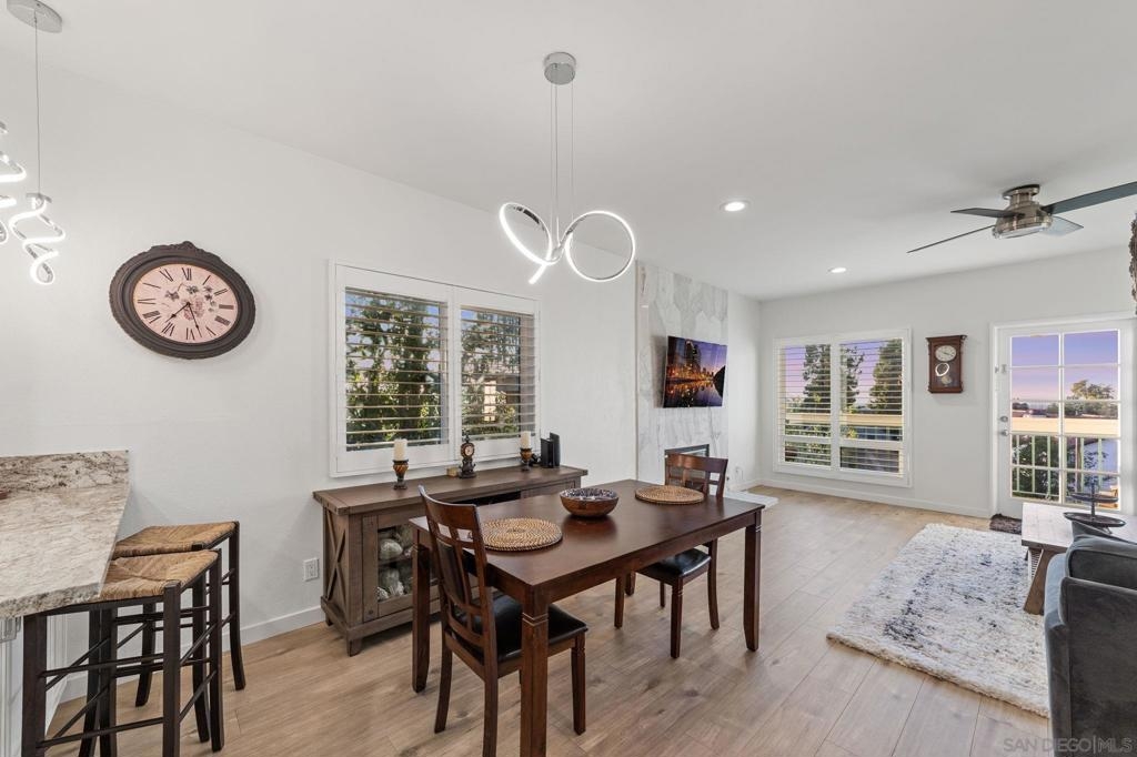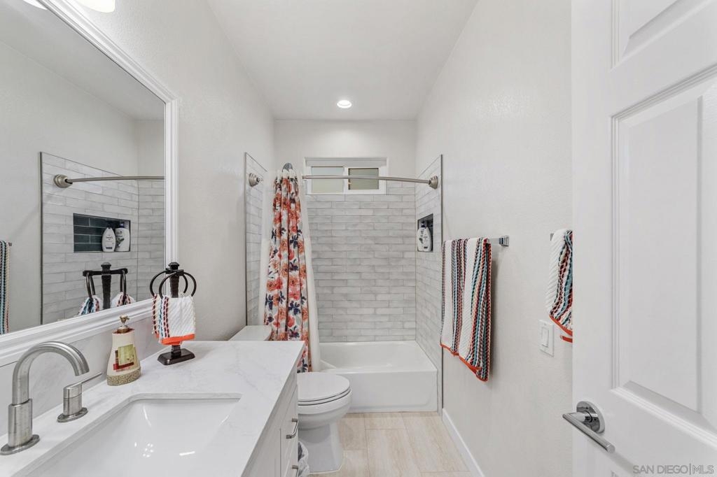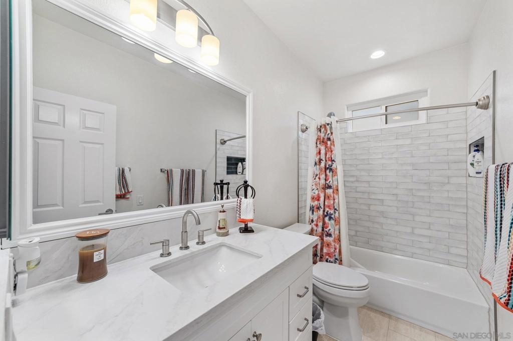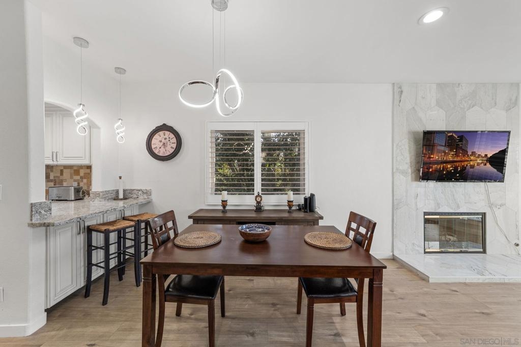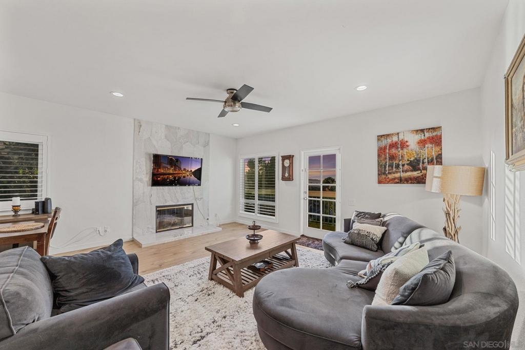 Step into modern comfort with this beautifully remodeled home, offering stylish upgrades and thoughtful design throughout. This house has been transformed with brand new flooring, creating a seamless and elegant flow from room to room. Both bathrooms have been completely updated with sleek, modern finishes. The kitchen is a true showstopper—completely remodeled with stainless steel appliances, modern cabinetry, and stylish touches. The living area features a striking new fireplace with a marble backsplash, bringing contemporary charm to the heart of the home. Enjoy natural light through all newer double-pane windows, complete with new shutters for added privacy and energy efficiency. Recessed can lighting and ceiling fans have been added throughout the home for comfort and ambiance. Smart living is at your fingertips with a smart thermostat, helping you control your environment with ease and efficiency. Every detail has been considered in this move-in-ready home. HOA includes Bernardo Heights Community Center membership, Cable TV, Internet Service, Water and Trash! Do not miss your chance to own this stunning remodel!