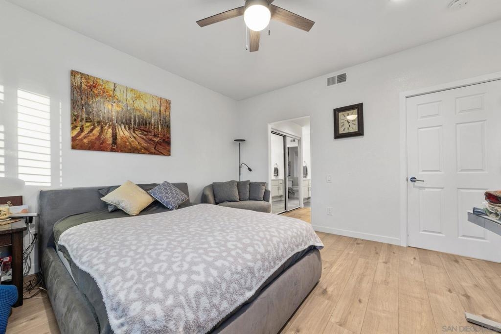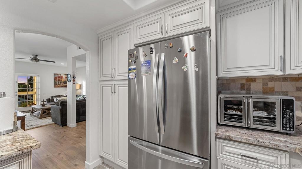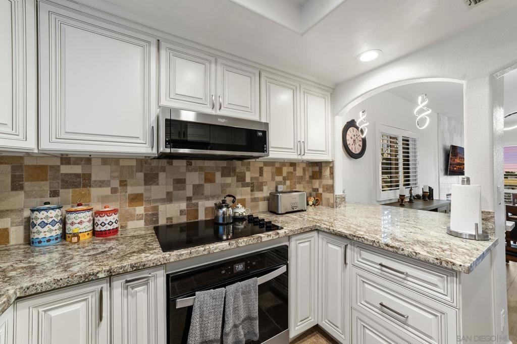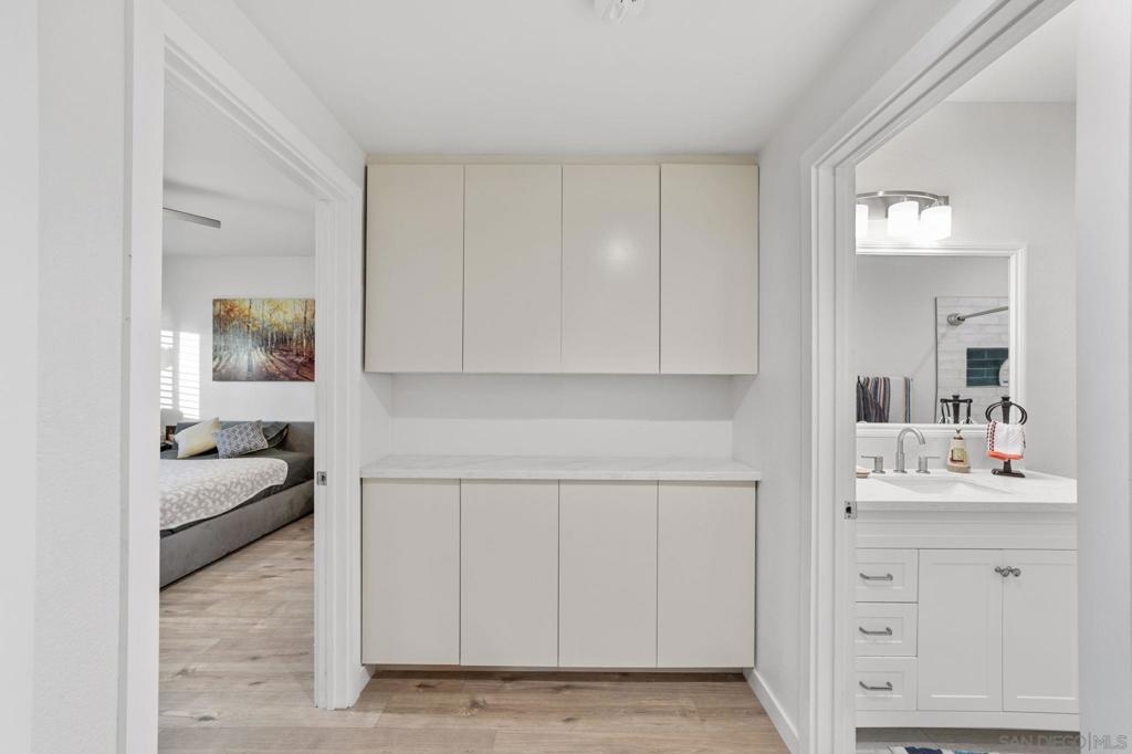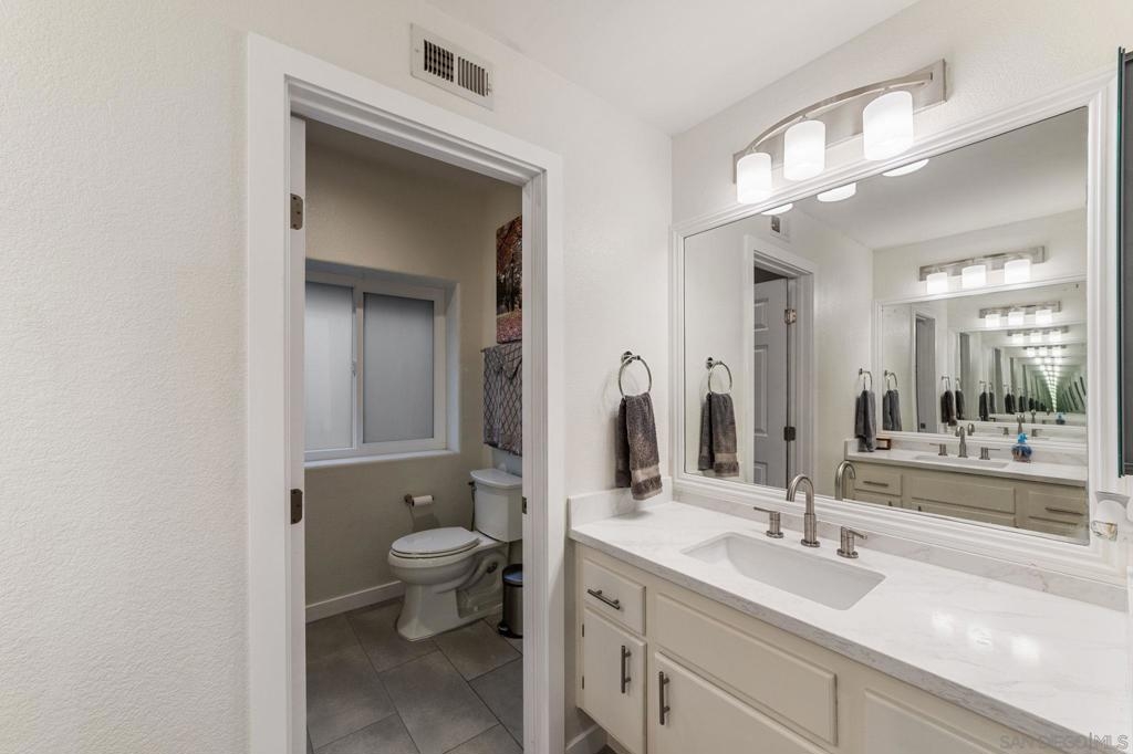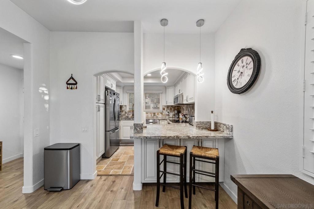 Step into modern comfort with this beautifully remodeled home, offering stylish upgrades and thoughtful design throughout. This house has been transformed with brand new flooring, creating a seamless and elegant flow from room to room. Both bathrooms have been completely updated with sleek, modern finishes. The kitchen is a true showstopper—completely remodeled with stainless steel appliances, modern cabinetry, and stylish touches. The living area features a striking new fireplace with a marble backsplash, bringing contemporary charm to the heart of the home. Enjoy natural light through all newer double-pane windows, complete with new shutters for added privacy and energy efficiency. Recessed can lighting and ceiling fans have been added throughout the home for comfort and ambiance. Smart living is at your fingertips with a smart thermostat, helping you control your environment with ease and efficiency. Every detail has been considered in this move-in-ready home. HOA includes Bernardo Heights Community Center membership, Cable TV, Internet Service, Water and Trash! Do not miss your chance to own this stunning remodel!
