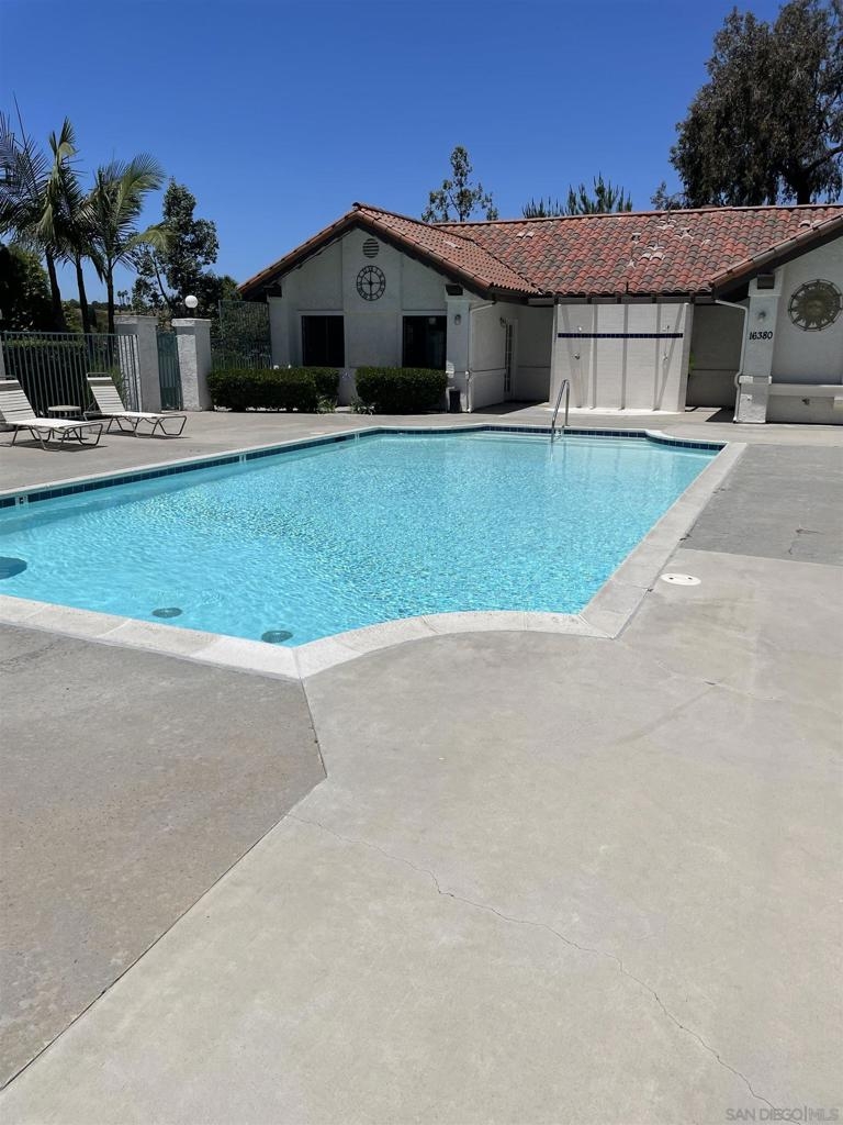 Beautiful 3 bedroom/2 bathroom luxury condominium in desirable Bernardo Heights location. Stainless steel kitchen appliances & granite countertops. 2 car garage. Cozy fireplace. Central heat & air. Washer & Dryer incl. Close to shopping. Award-winning Poway School District! Spacious master bedroom very well lit throughout the unit and a wonderful semi-private common area behind the unit. Ideal for families with children, BBQ's and hosting guests. Homeowner fees include use of the gym, tennis court,internet, park and community center! This complex offers two swimming pools!