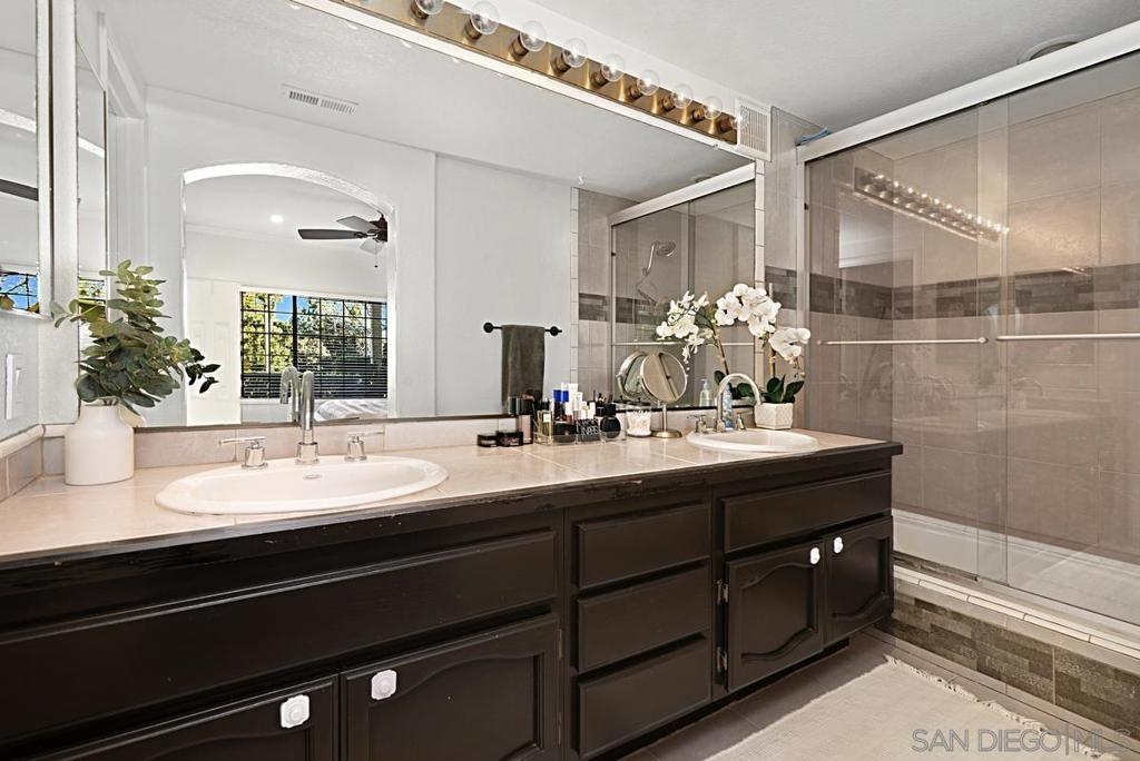 Indulge in the allure of this Rancho Bernardo gem! Wake up to the serenity of your private front and back patio, perfect for savoring your morning brew. Step inside to discover an open family and dining area, adorned with a cozy fireplace. French doors and soaring vaulted ceilings create an ambiance of spaciousness and warmth. Your culinary adventures await in the expansive eat-in kitchen, boasting ample storage for all your gourmet essentials. The lower level includes two generous primary bedroom retreats, each with its own ensuite bathroom and ample closet space, offering the utmost comfort and privacy. With an attached 2-car garage, convenience is at your fingertips. The perks don't end there! Your HOA membership includes cable, internet, water and trash, as well as access to the prestigious Bernardo Heights Clubhouse, featuring a fitness center, two pools (25-yard pool heated at 82 degrees), jacuzzi, tennis and pickleball courts, and more! With an unbeatable location, just moments from shopping centers, scenic hiking trails, and easy freeway access, this home is the epitome of California living. And better yet, it’s all located within the acclaimed Poway Unified School District. Don't let this opportunity slip away—experience the lifestyle you've been dreaming of today!
